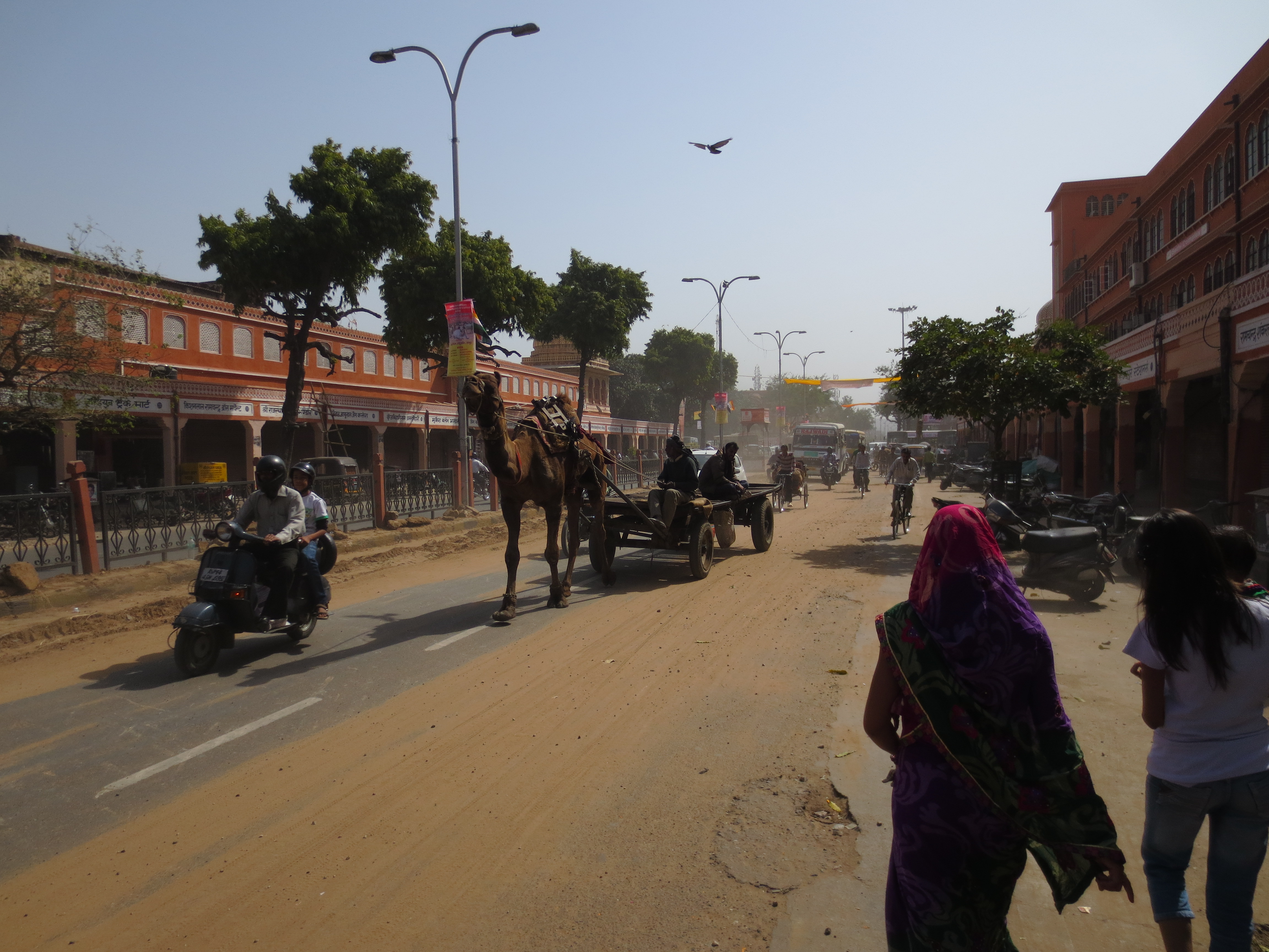 Dans les rues, c’est le bordel le plus total; voiture, scooter, mule, piéton, tuk-tuk, vélo, moto, tracteur, camion, bœuf, éléphants, dromadaire (ou chameau?!?), name it, si ça peut rouler/marcher, vous allez en trouver. Vous aurez un portrait assez fidèle de la situation si vous ajoutez à cela que tous et chacun sont prêts à se marcher sur le corps pour se dépasser, quelques animaux sauvages par-ci par-là, des voitures qui roulent dans le sens inverse et des cyclistes qui parlent au cellulaire. En conclusion, personne stressé ou ayant un problème au cœur s’abstenir.