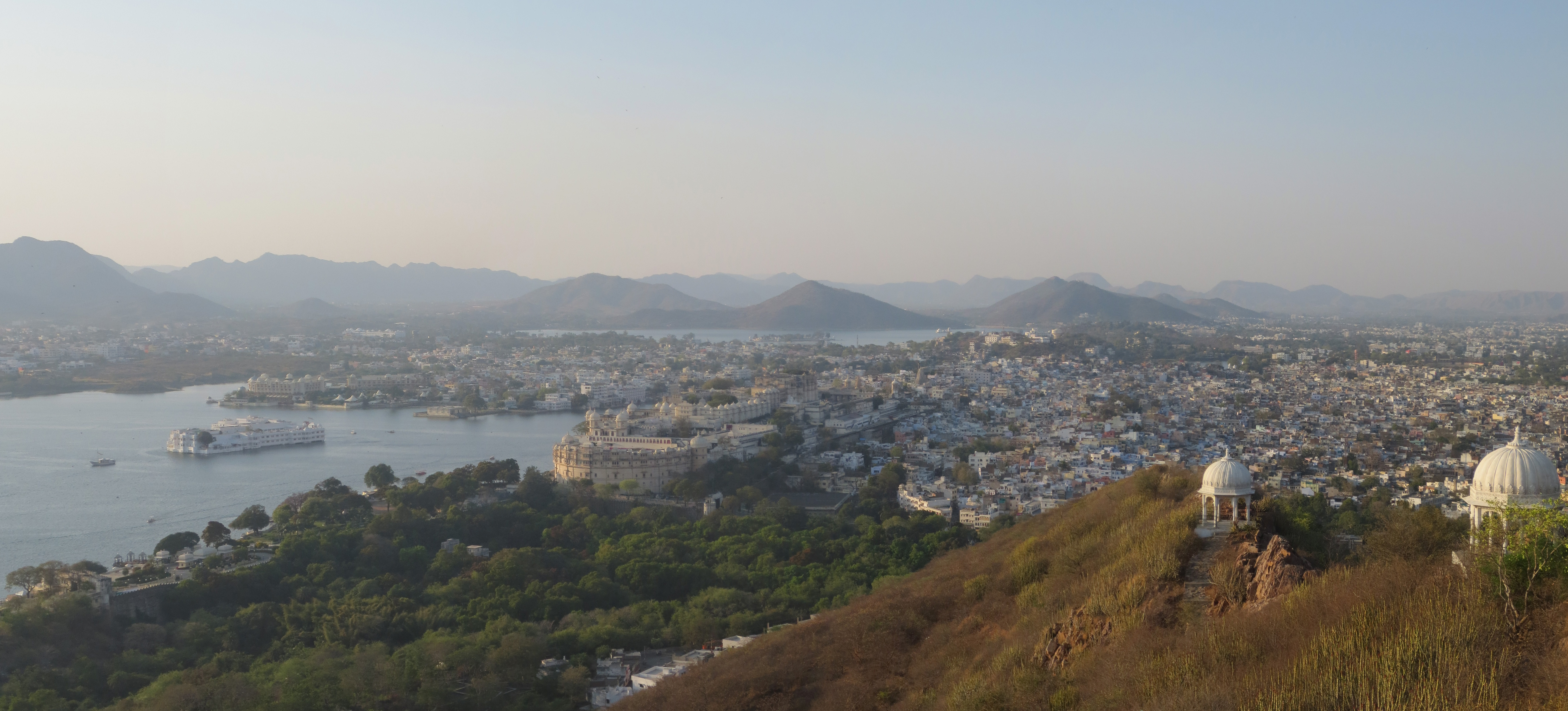 C’est donc bien reposé que j’ai posé les pieds dans la capitale romantique de l’Inde; Udaipur. Cet endroit n’a pas volé son ‘’titre’’. À peu près tout est charmant dans cette ville; de beaux quartiers amusant à parcourir, un palais grandiose (de l’extérieur et du haut de la montagne voisine parce que l’intérieur il ressemble à tous les autres palais), 2 îles/palais et un panorama à couper le souffle pour le coucher de soleil. Seul hic, c’est en Inde…il y avait donc des indiens.