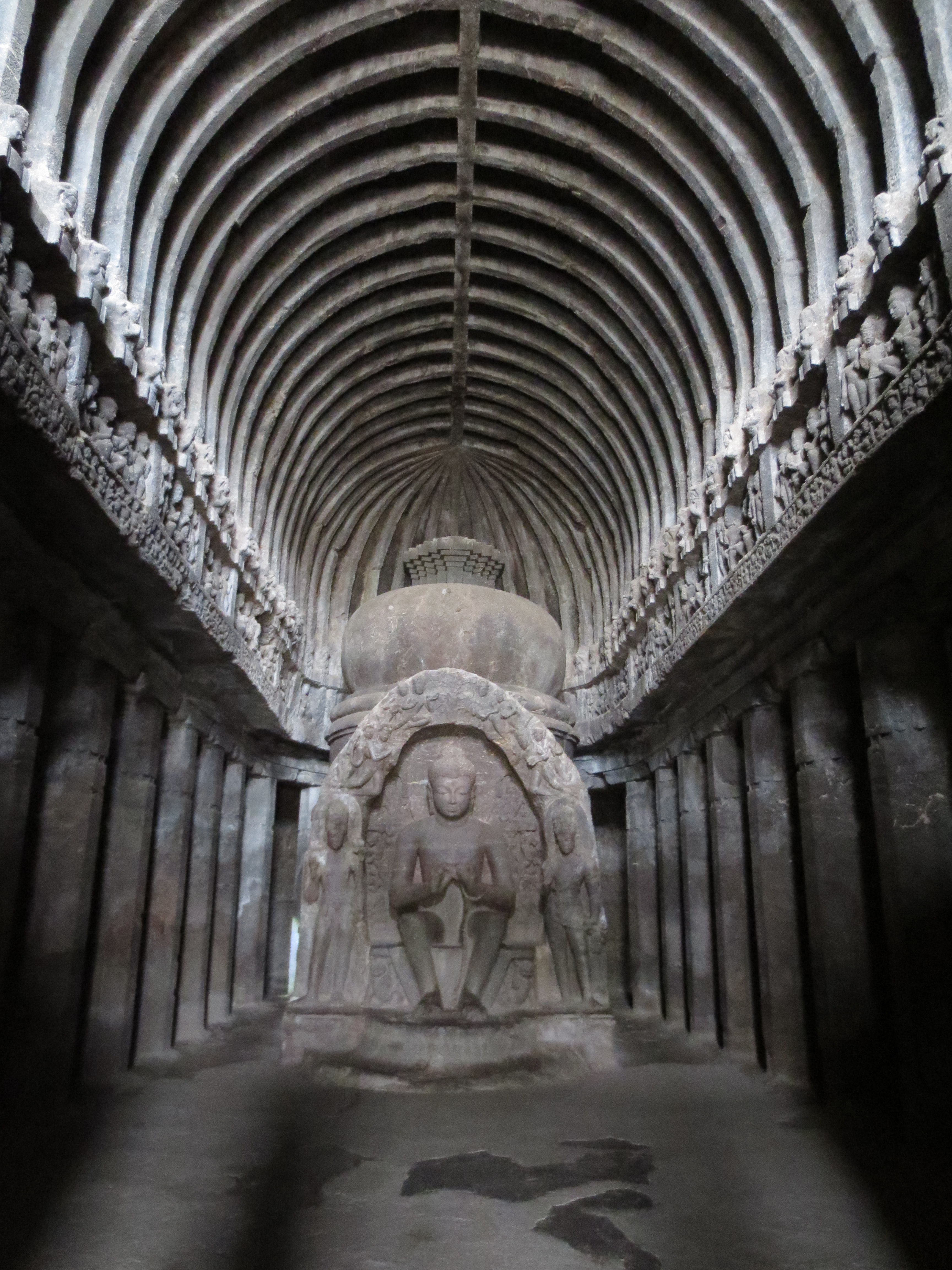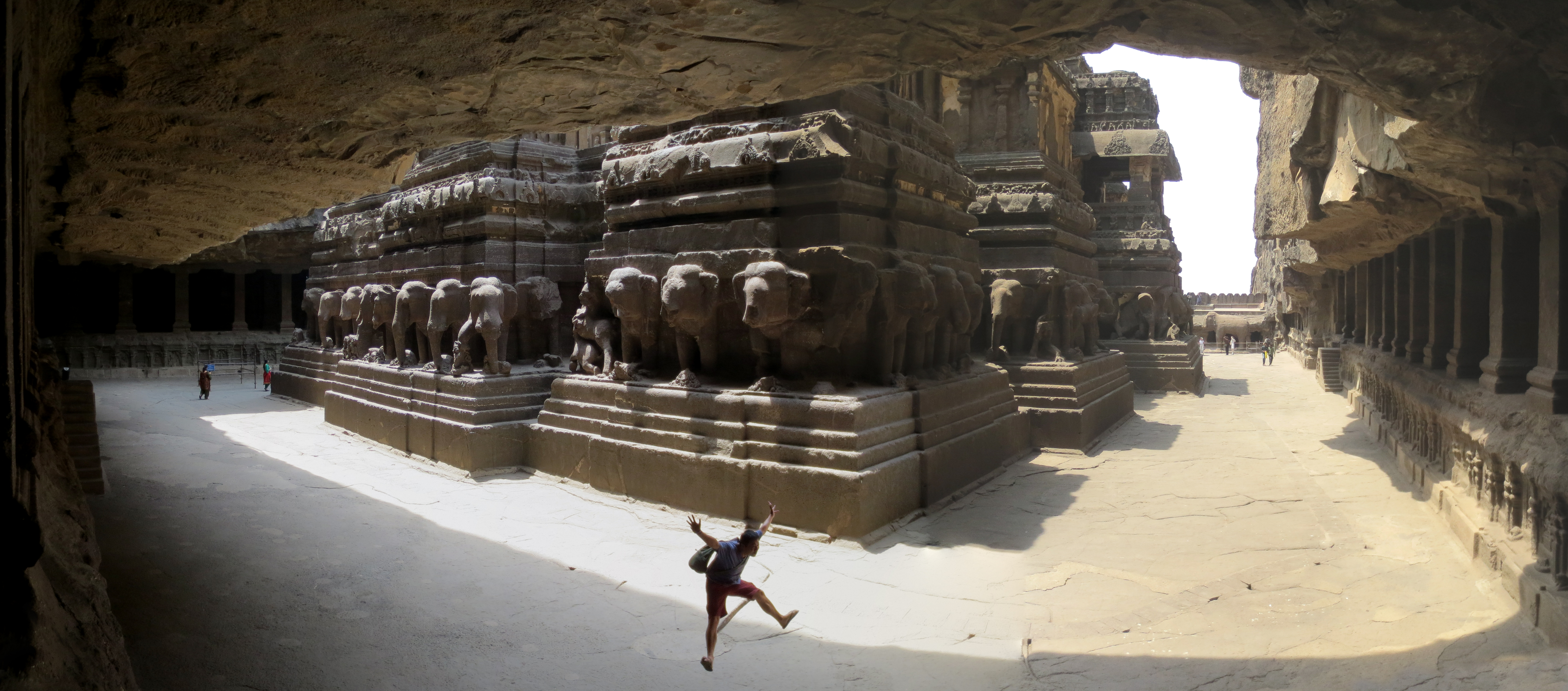 Plus sérieusement, ces temples, qui ont été sculptés entre le 6ème et 9ème siècle (me rappelle plus si c’est avant ou après J.C.) sont des endroits très importants pour les religions hindou, bouddhiste et jainisme. On m’a expliqué que la religion bouddhiste s’est principalement développée en Inde avant de se faire chasser de là par les musulmans. Ils se sont ‘’réfugiés’’ au Népal, Tibet et en Chine. En Inde aujourd’hui, la religion bouddhiste compose une très petite tranche de la population.