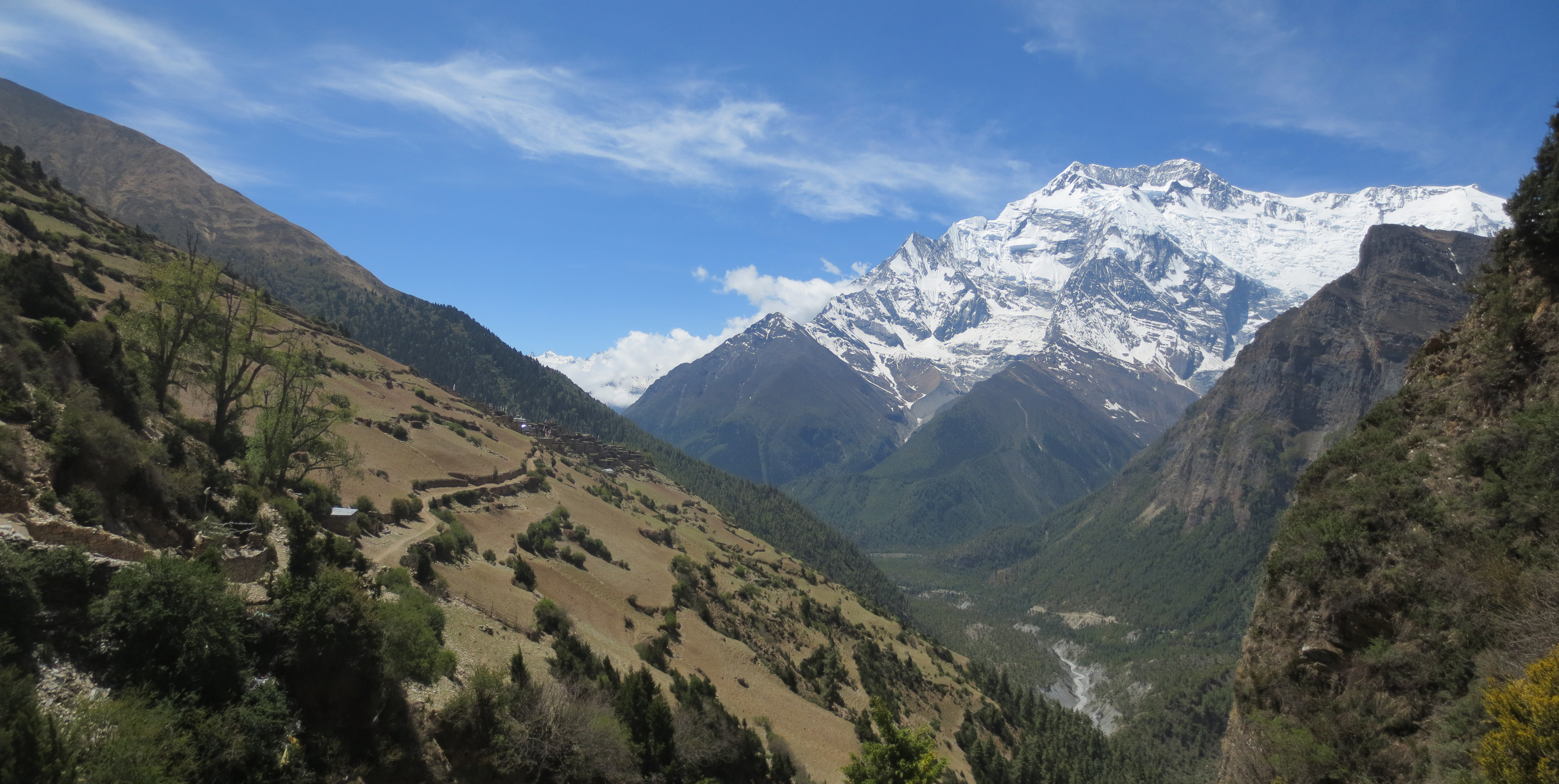 Plus précisément, le circuit fait le tour de la chaine de montagne des Annapurna. D’une durée d’au moins 2 semaines, le départ se fait à environ 700m d’altitude, pour atteindre un sommet à plus de 5400m et ensuite redescendre. Au final, si on s’en tient uniquement au sentier principal, sans tricher (prendre un bus – jeep – de village en village) ou sans faire de « side trek » (tout au long du circuit, il est possible de faire des randonnées de 1 ou plusieurs jours en addition au sentier principal), le circuit consiste à marcher plus de 200km.