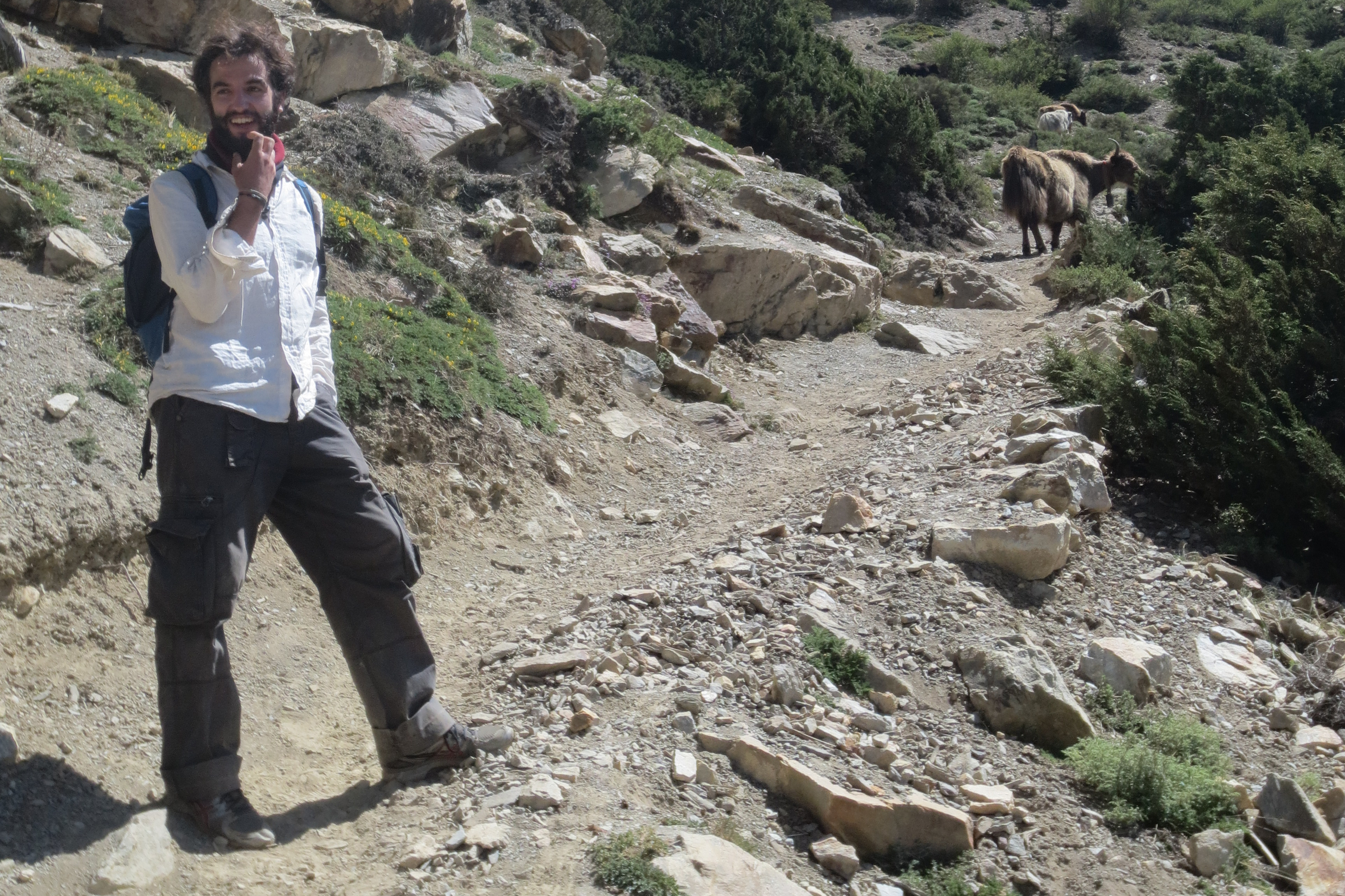 Après avoir passé 1 semaine dans la vallée de Katmandou à attendre Roark (après s’être rencontré dans le Sud de l’Inde et convenu de faire un trek au Népal ensemble à la mi-mai, il a remonté l’Inde jusqu’à Katmandou, tandis que je suis allé au Sri Lanka, pour ensuite voler directement à Katmandou), à finaliser les préparatifs, à se procurer les 2 documents nécessaires pour aller dans l’Annapurna et à faire un trek d’entrainement (voir épisode 14), nous étions fin près à prendre notre envol.