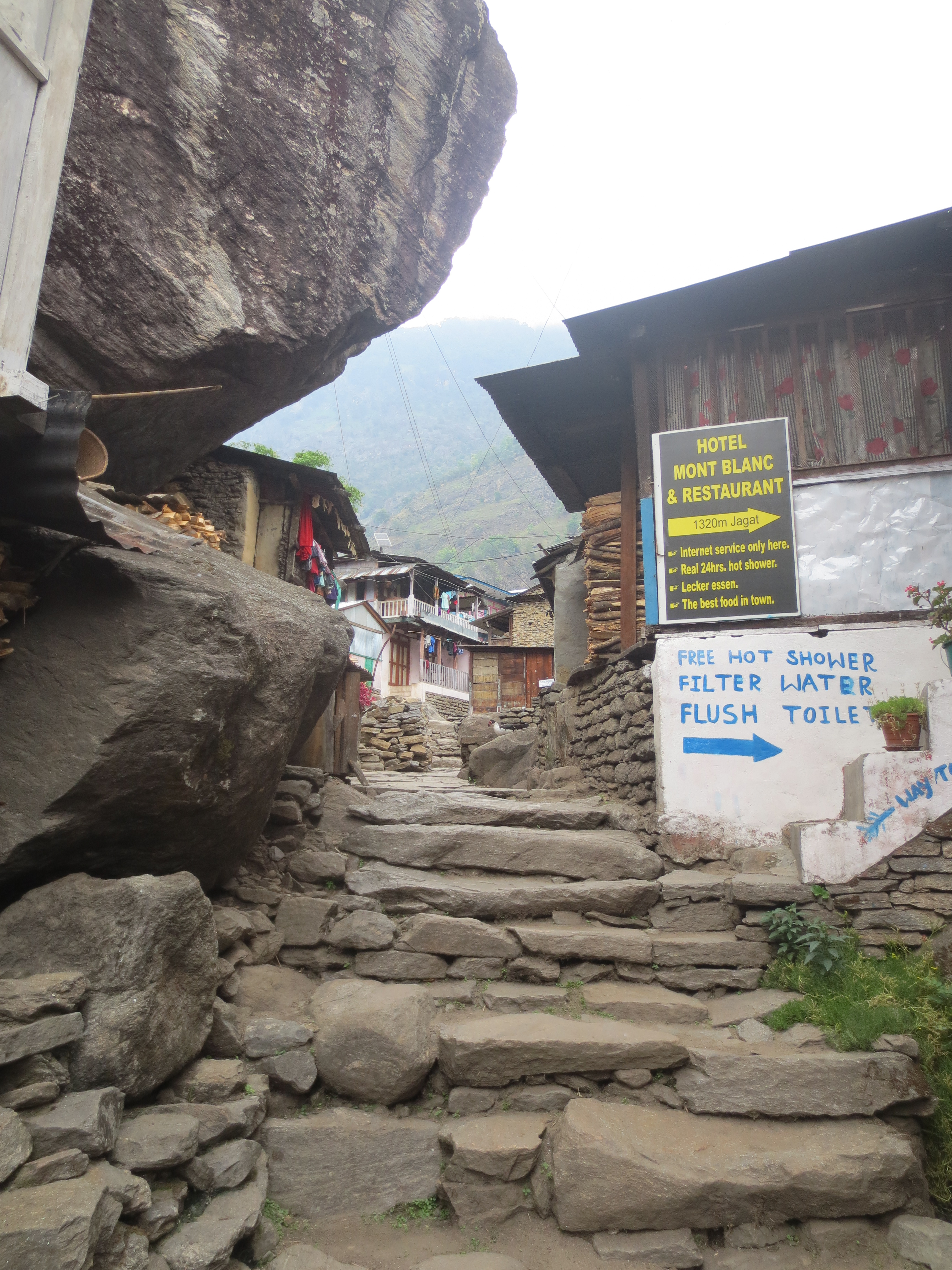 – Plus vous montez en altitude et plus ça devient cher (bouffe, etc.). Même si vous aller rarement dépenser ce montant, prévoyez 2000rs par jour. Vous êtes mieux d’en avoir plus que moins puisqu’il n’y a pas de guichet ATM outre à Besisahar (tout début du parcours), Jomsom (vers la fin du parcours) et à Pohkara et Katmandou (une fois terminé le parcours),