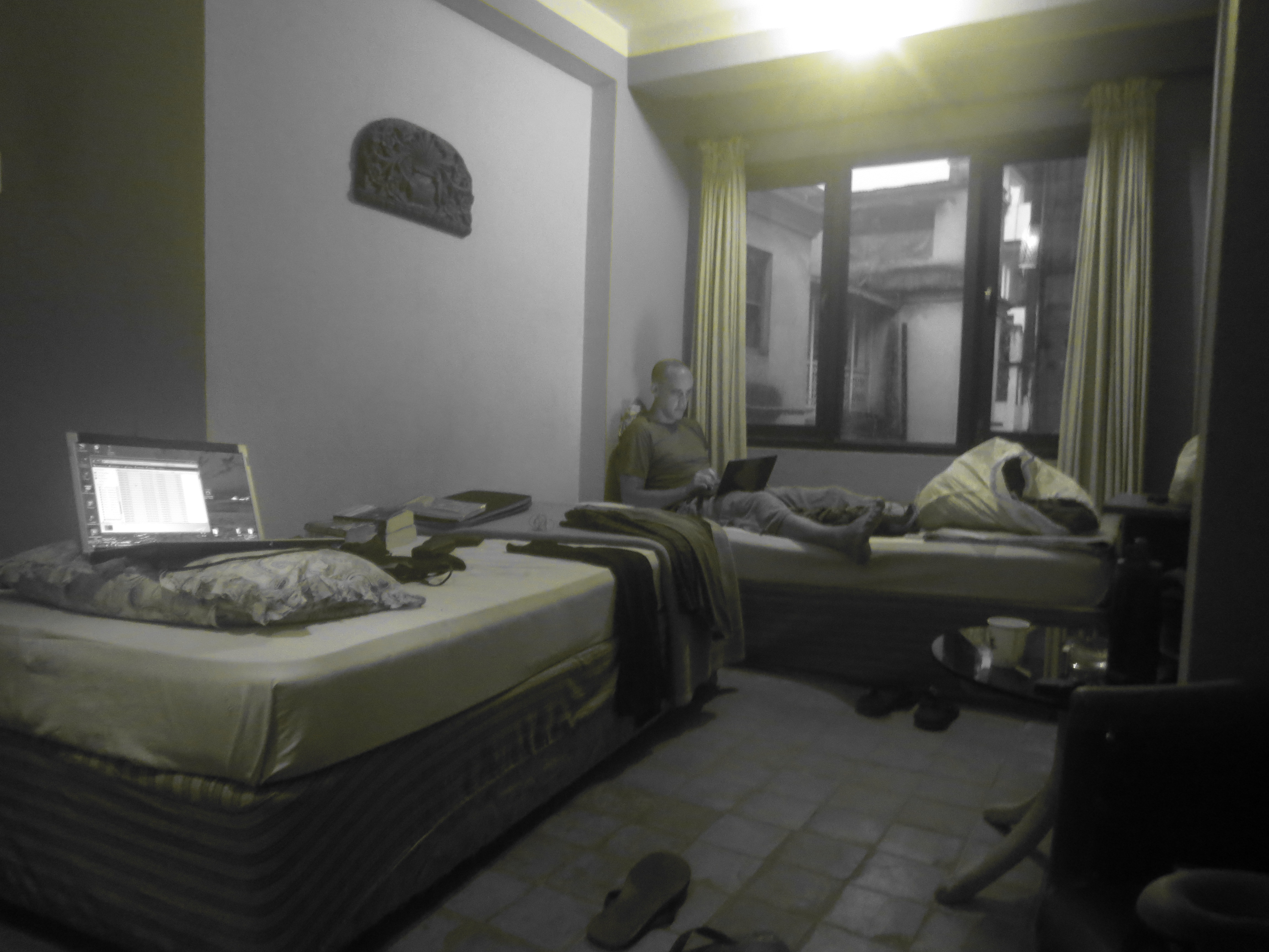 Nous avons donc passé 5 jours là-bas. La très grande majorité du temps, nous étions enfermés dans notre auberge (soit dans notre chambre, soit sur le super toit terrasse) à classer nos photos et rédiger une histoire à partir des nombreuses notes prises tout au long du trek. En fait, c’était comme si je travaillais. Je me levais vers 9h, pour ne faire que cela jusqu’à 1 ou 2 heure du matin.