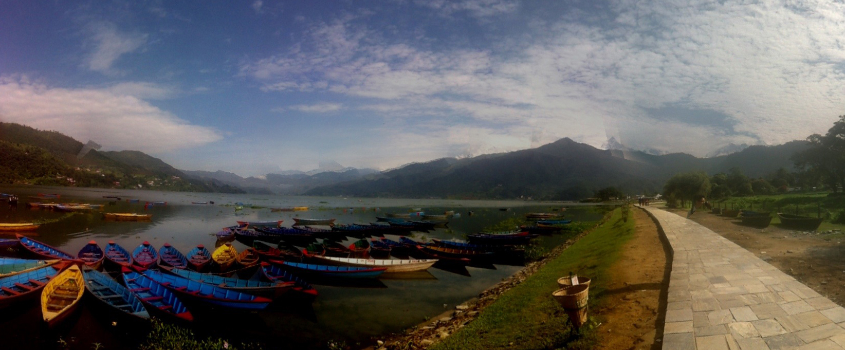 2ème plus grande ville de Népal, Pohkara est renommée pour son superbe lac et l’impressionnant panorama sur les montagnes qu’il est possible de voir par temps clair; il y a donc le lac en avant-plan, la ville et la chaine de montagne en arrière plan.