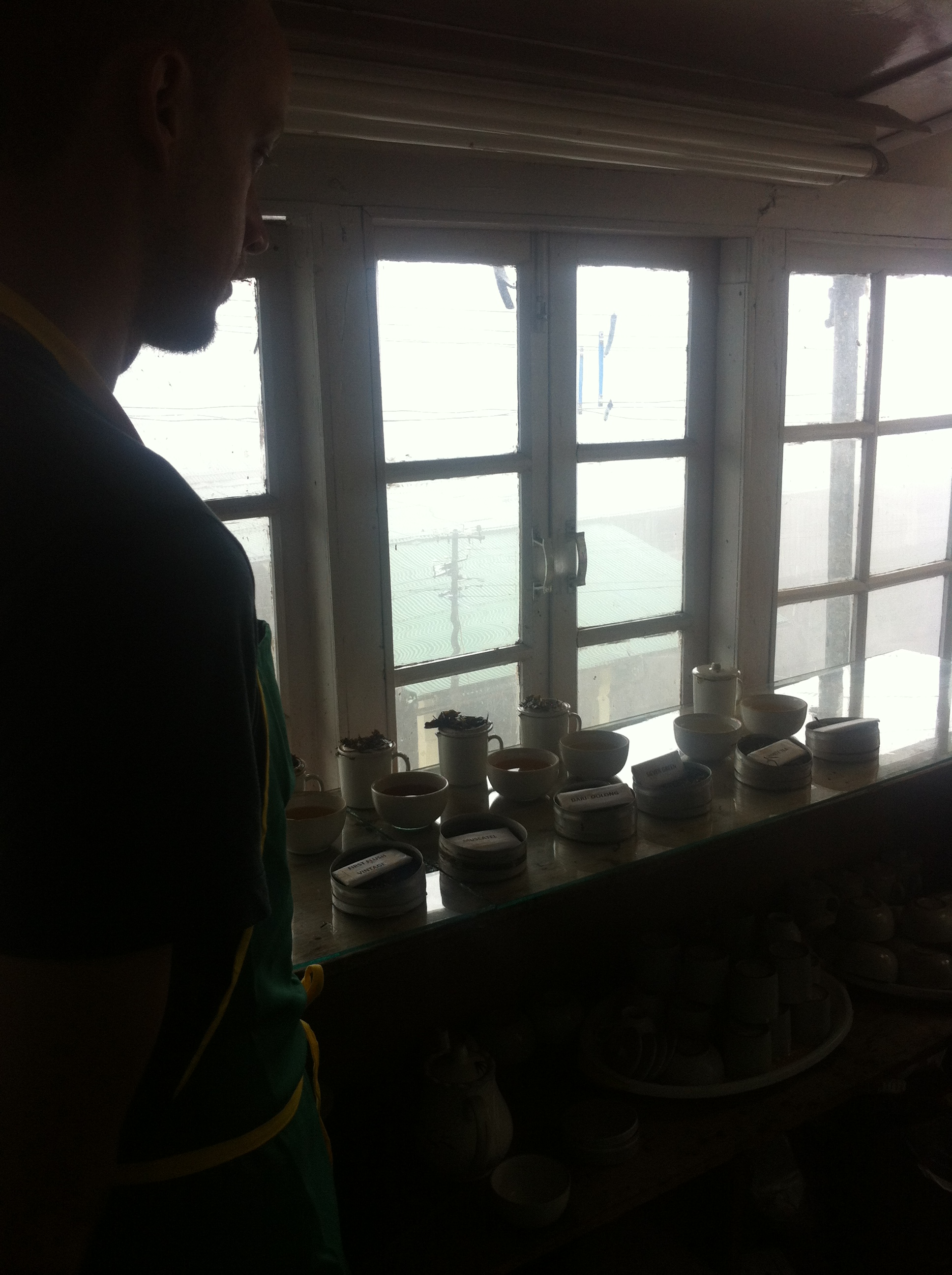 Bien assis en train de déguster des échantillons gratuit de différentes variétés de Darjeeling tea, un groupe d’indiens baraqués, n’ayant donc aucunement le profil type de groupie, nous a demandé tout timidement de prendre une photo avec eux. Moi et Roark se sommes alors échangé un regard qui voulait dire « we are definitely back in India (on est bel et bien de retour en Inde) ». Première fois que quelqu’un me demande une photo depuis mon départ de l’Inde il y a 2 mois.
