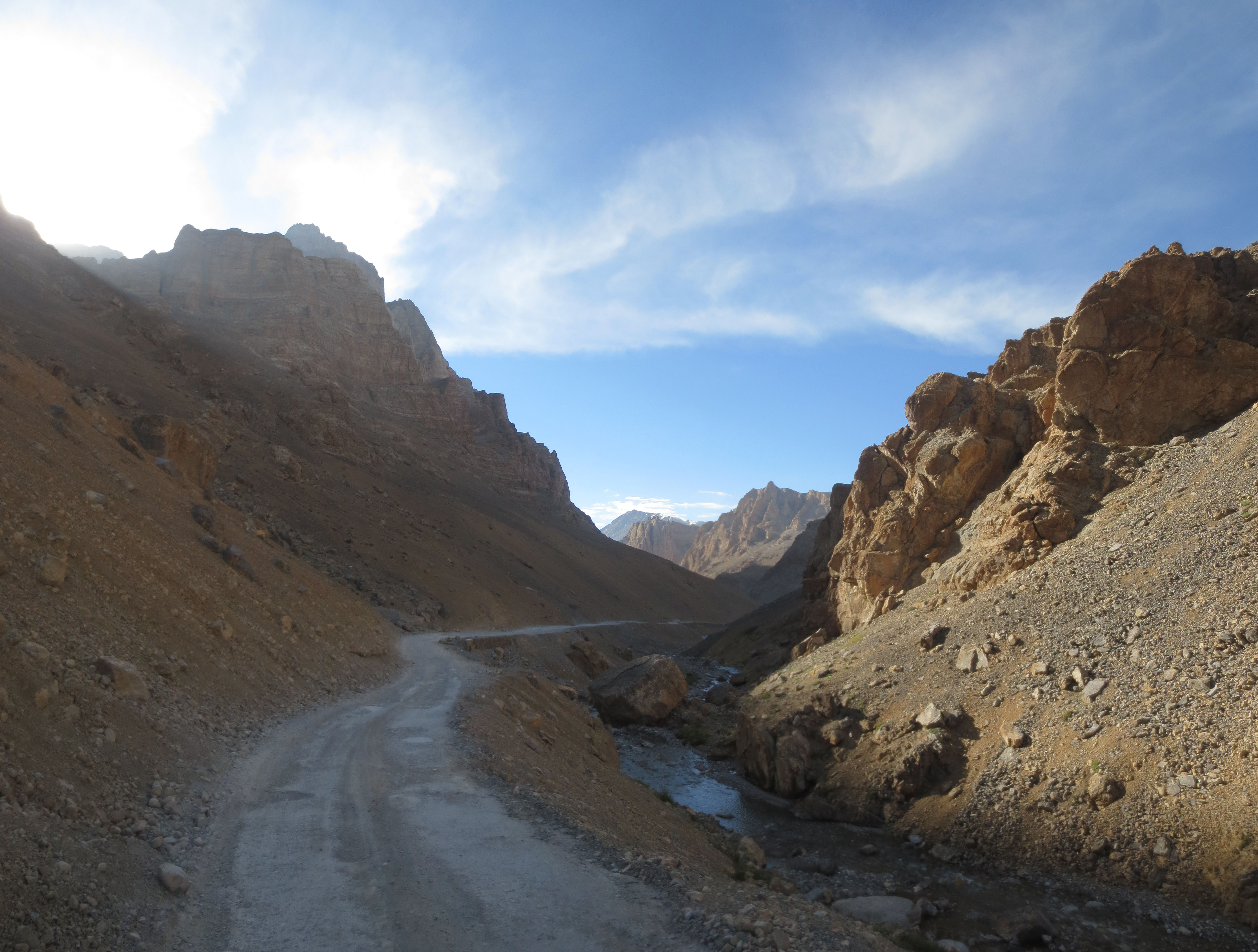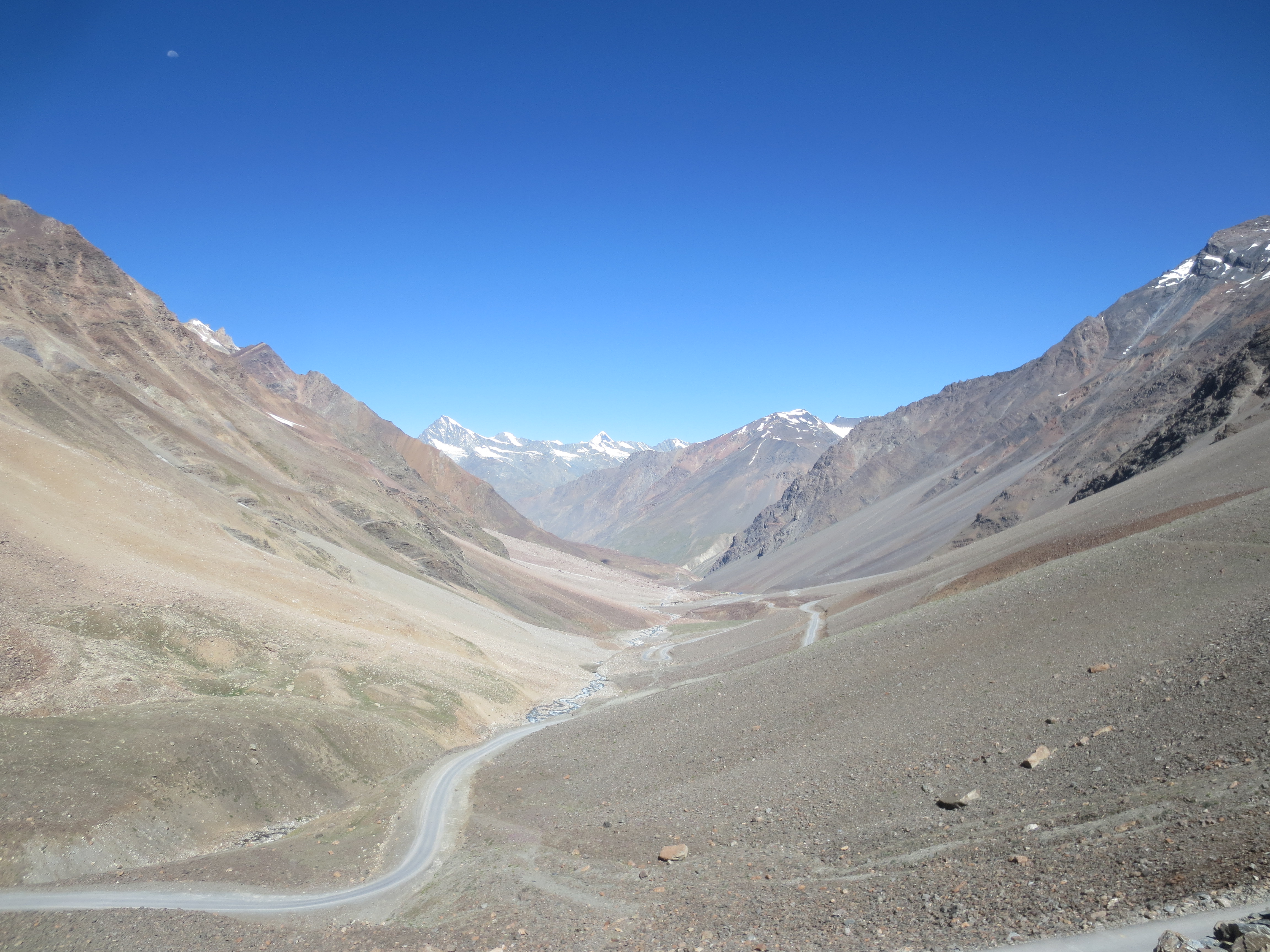 La route était alors complètement pavée. Ce sera un vrai régal de la descendre demain… mais il faudra tout d’abord la monter de l’autre coté à partir du Pangong Lake.