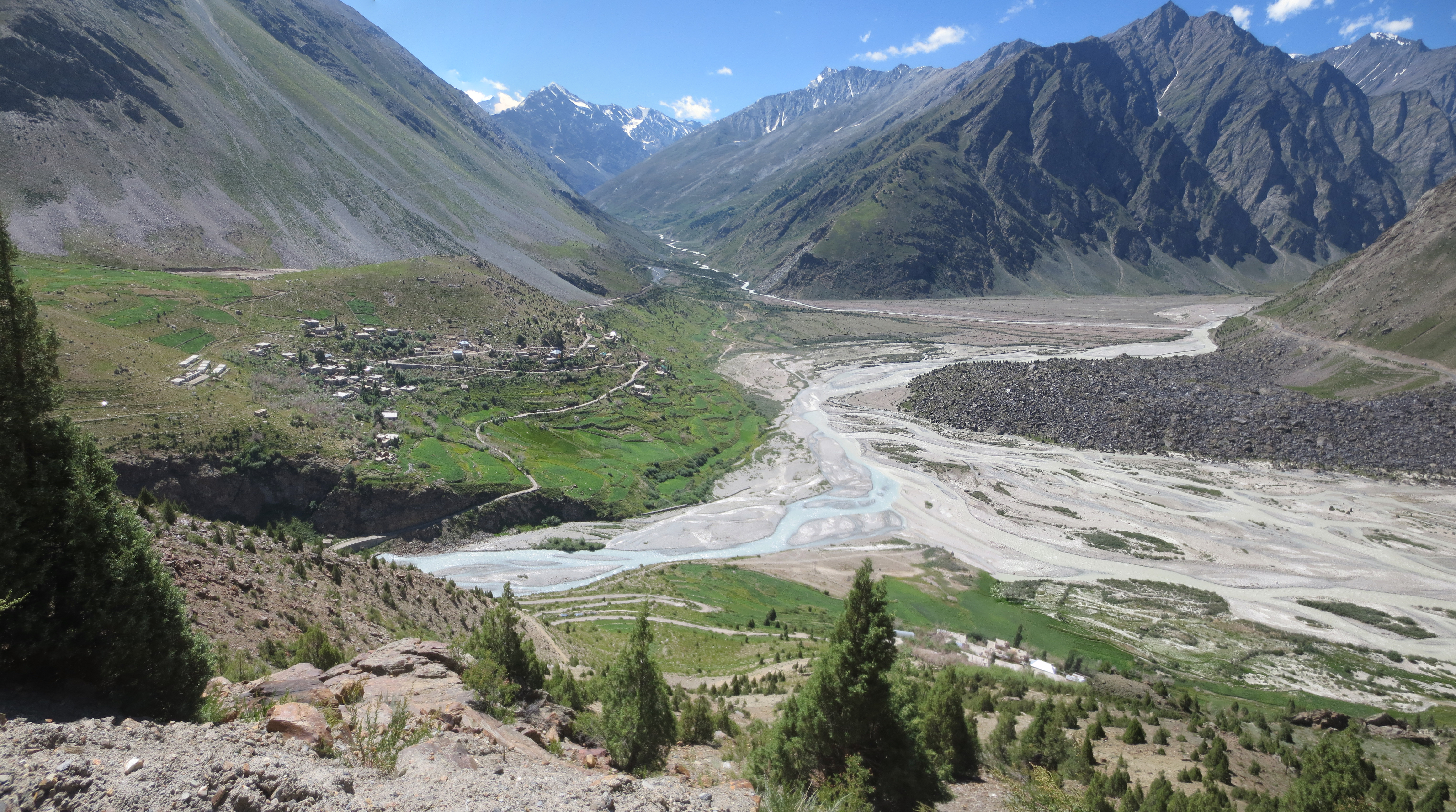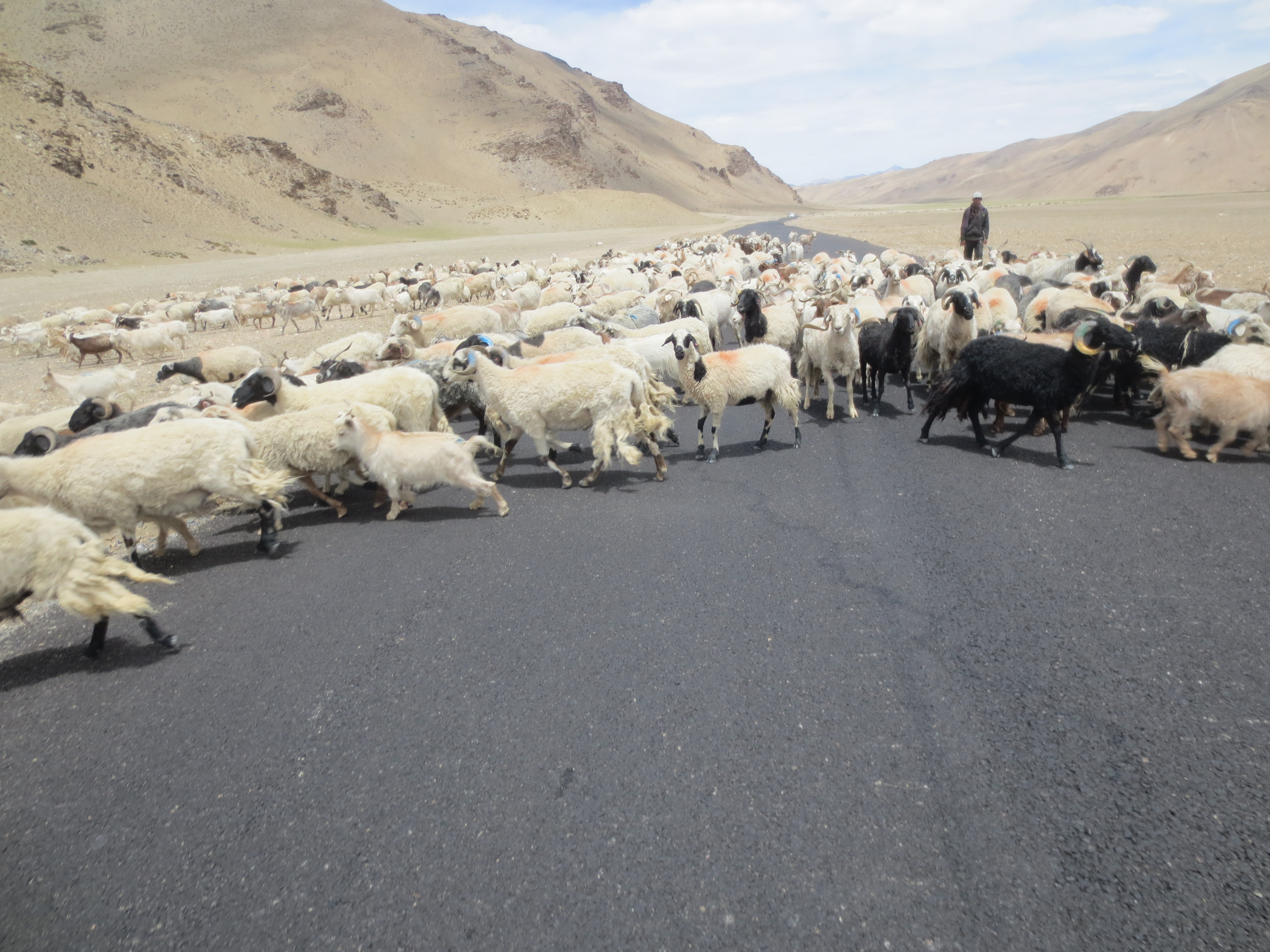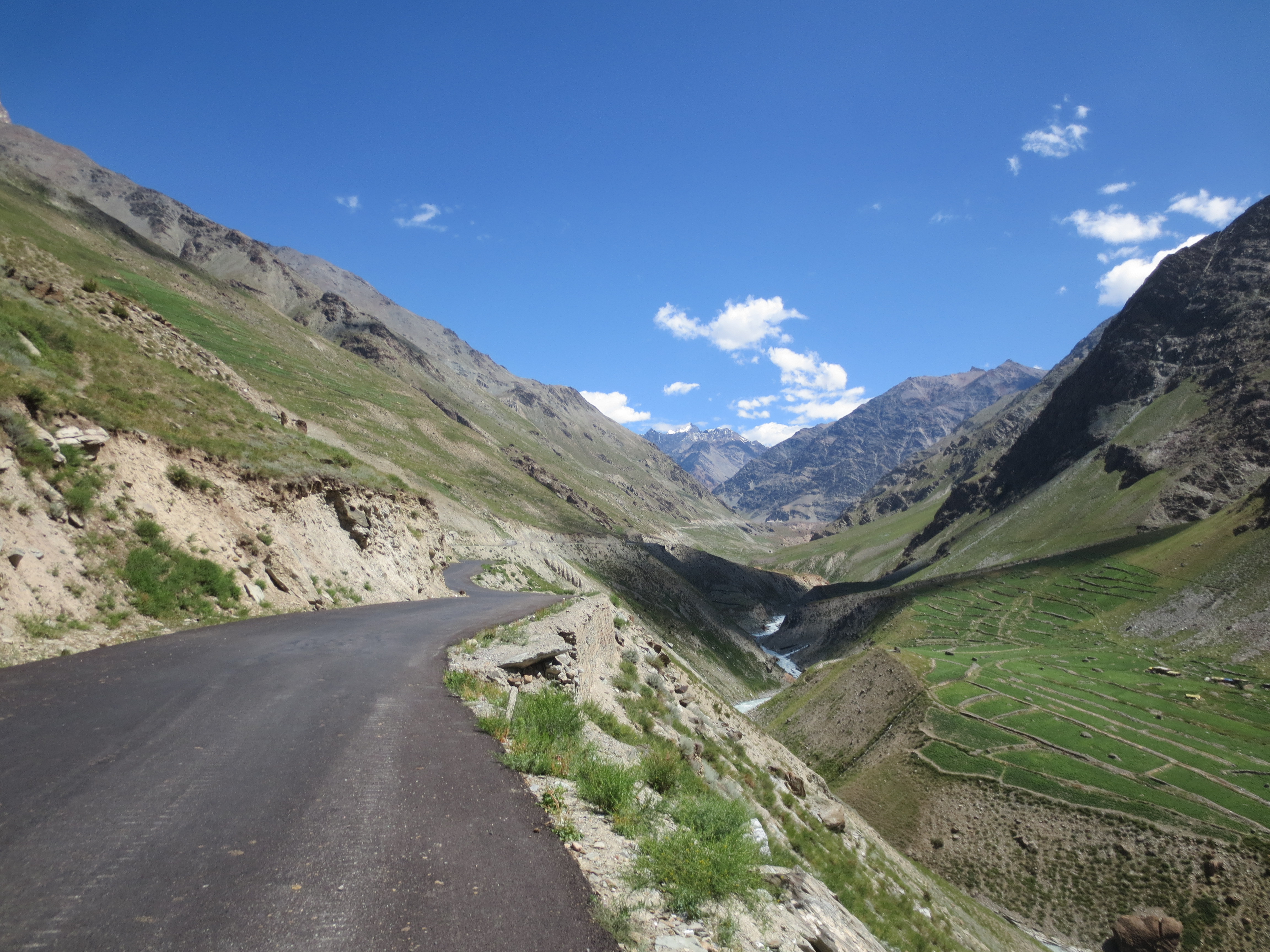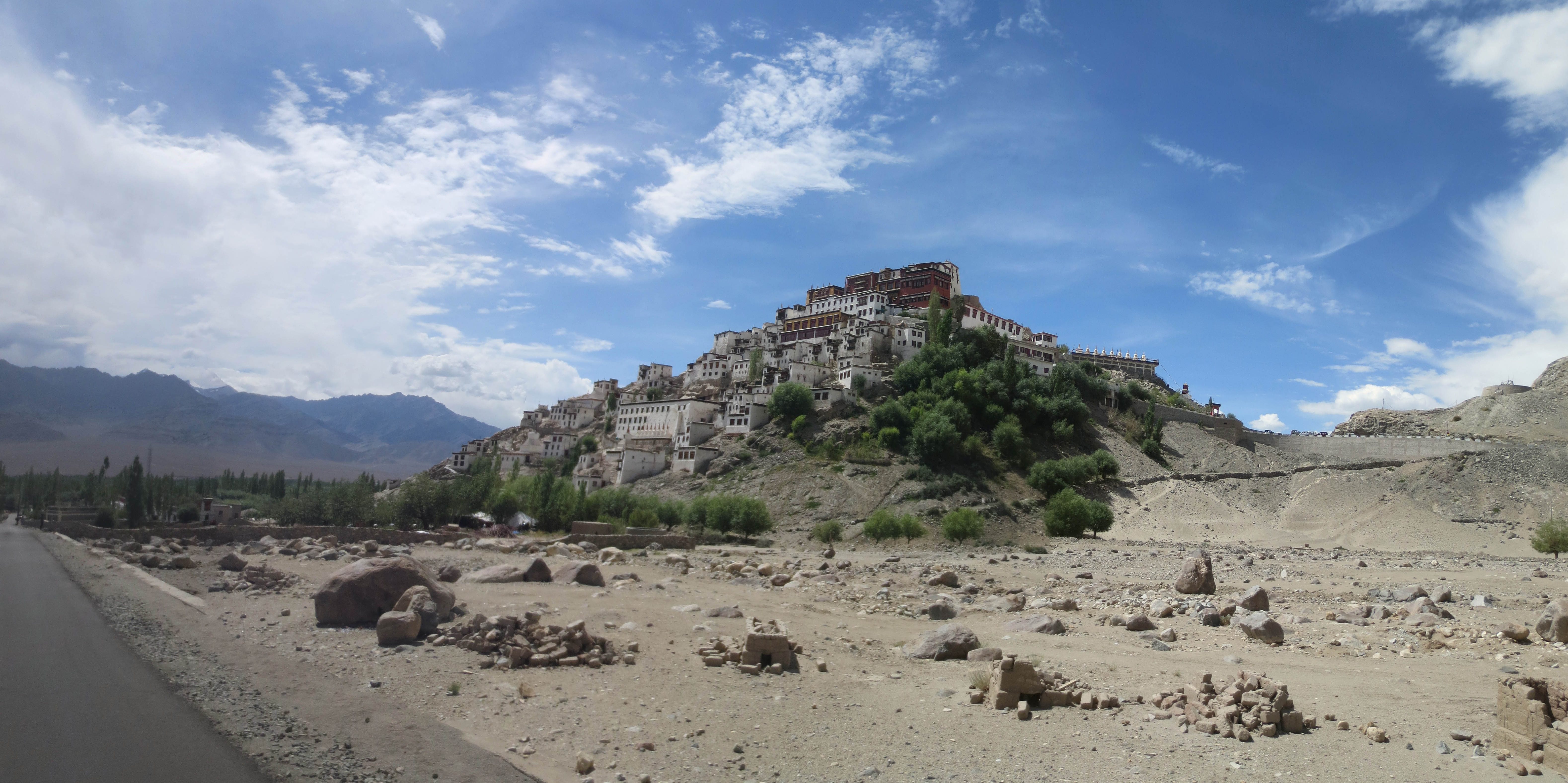 Une fois passé Chemde, la route commençait à monter drastiquement pour aller rejoindre la ChangLa Pass. Le chemin était sinueux et à flanc de montagnes. Tout autour de nous, le décor était fait de montagnes exemptes de toute végétation avec une vallée toute verte et ponctuée de plein de petites maisons dans les champs plus bas.