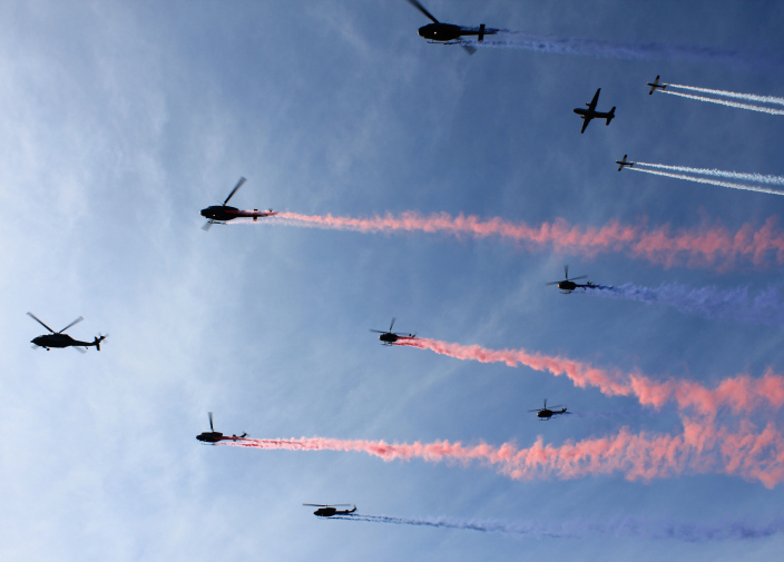 7h30 du matin dans le parc au milieu de la ville à 2 pas de notre hostel… en fait tout est à 2 pas de notre hostel. Il n’y a pas un chat, pas une voiture et aucun son en ville. Tout le monde qui ne travaille pas ce matin se trouve autour du parc pour le début des festivités. Nous avons donc eu la pénible tâche d’assister à la cérémonie… vraiment plate héhé…