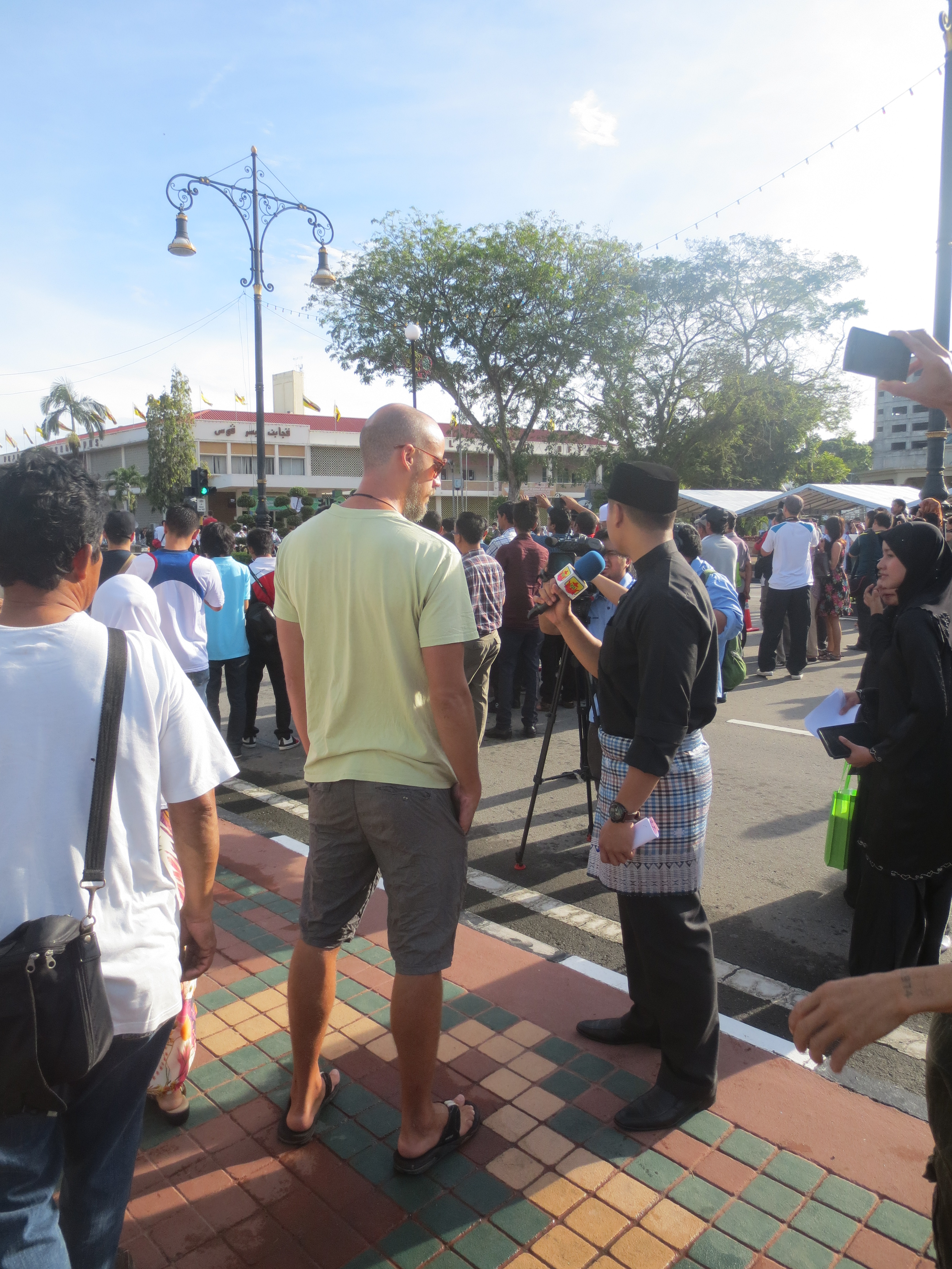 8h45 – Le Sultan a ensuite passé en revu ses troupes et la cérémonie a tranquillement tirée à sa fin. En route vers notre hostel, on s’est de nouveau fait interviewer par un journaliste du Brunei Time, la presse écrite.