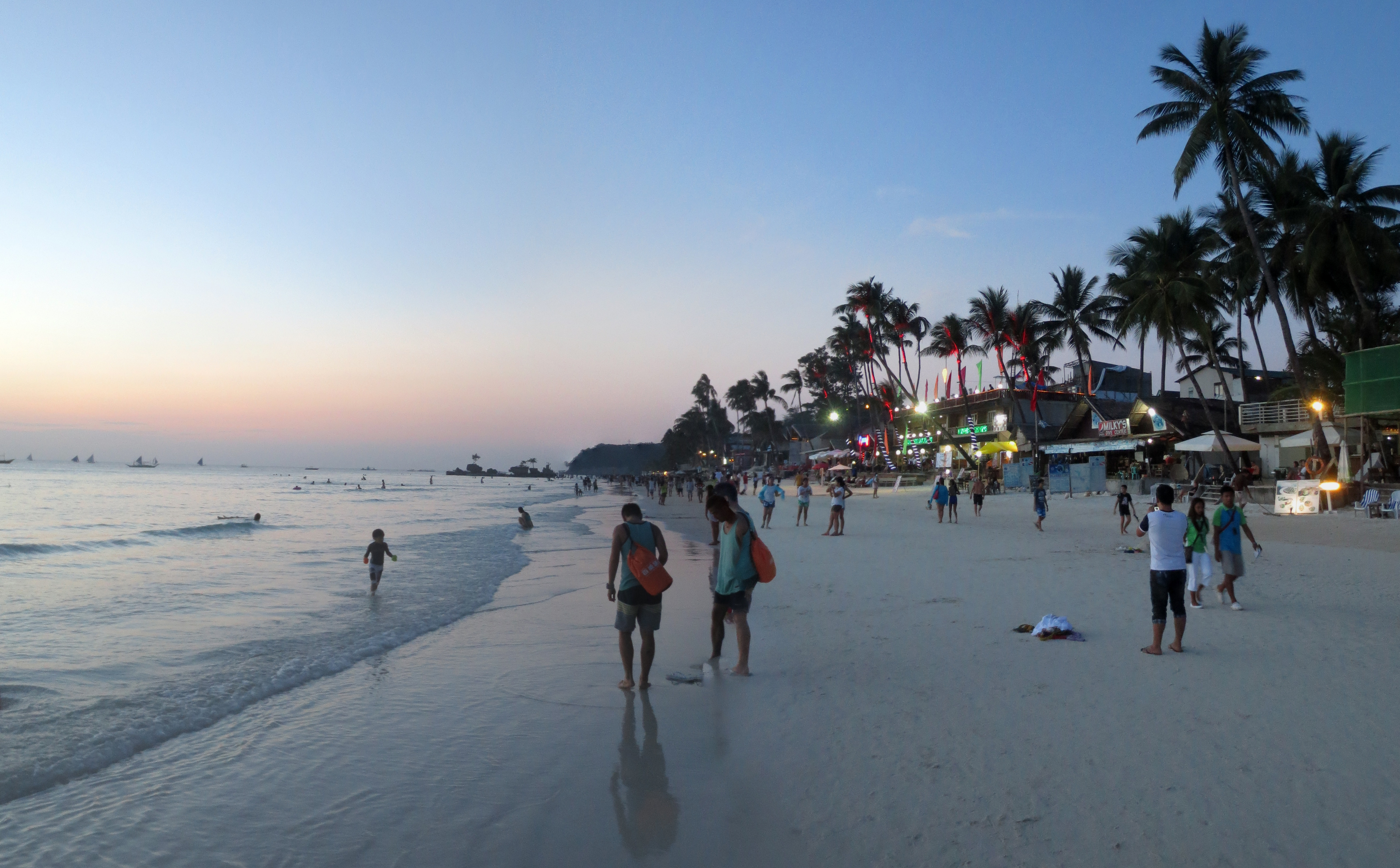 Boracai est LA destination no.1 aux Philippines et l’une des plus populaires en Asie. Cette très petite ile à moins de 1km de la cote de l’ile de Panay a pour attrait principal une plage de sable blanc orienté plein Ouest (coucher de soleil magnifique) et longue de plus de 4km. Du nom de White Heaven Beach, cette plage est réputé comme étant la 2ème plus belle plage au monde après les plages de Turks and Caicos (les Iles Turquoises).