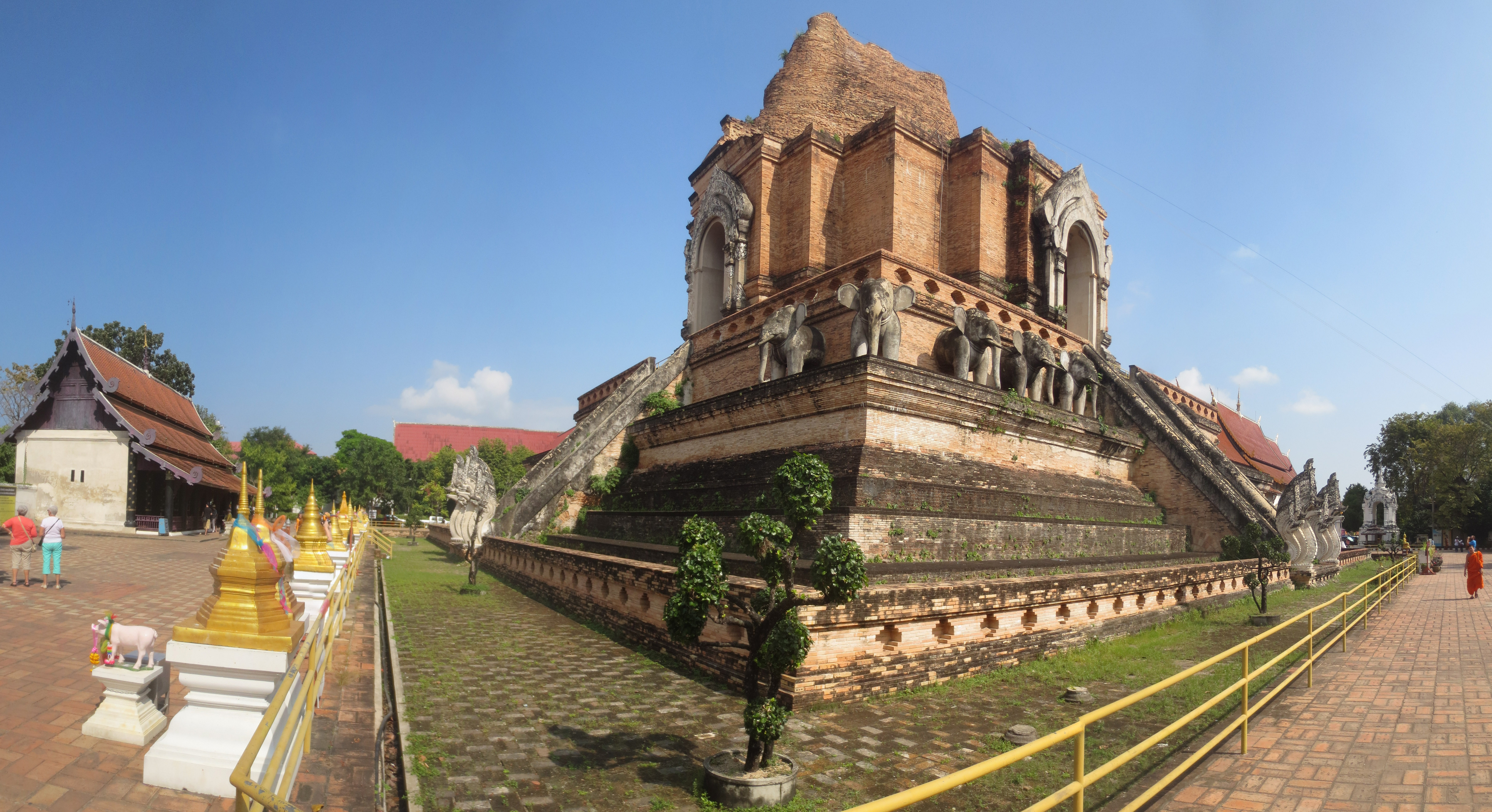 Malgré le fait qu’il faudrait vraiment être stupide pour se perdre… le cœur de Chiang Mai est une vieille ville d’une dizaine de km carré ceinturée par un canal… nous avons failli passer à côté DU temple à voir en ville et un des rares temples en Thaïlande… avec le Wat Arun de Bangkok… qui ne ressemble pas à un gros gâteau et qui vaille véritablement le détour.