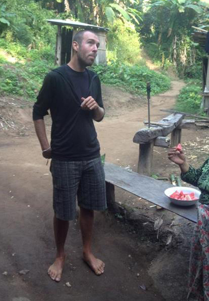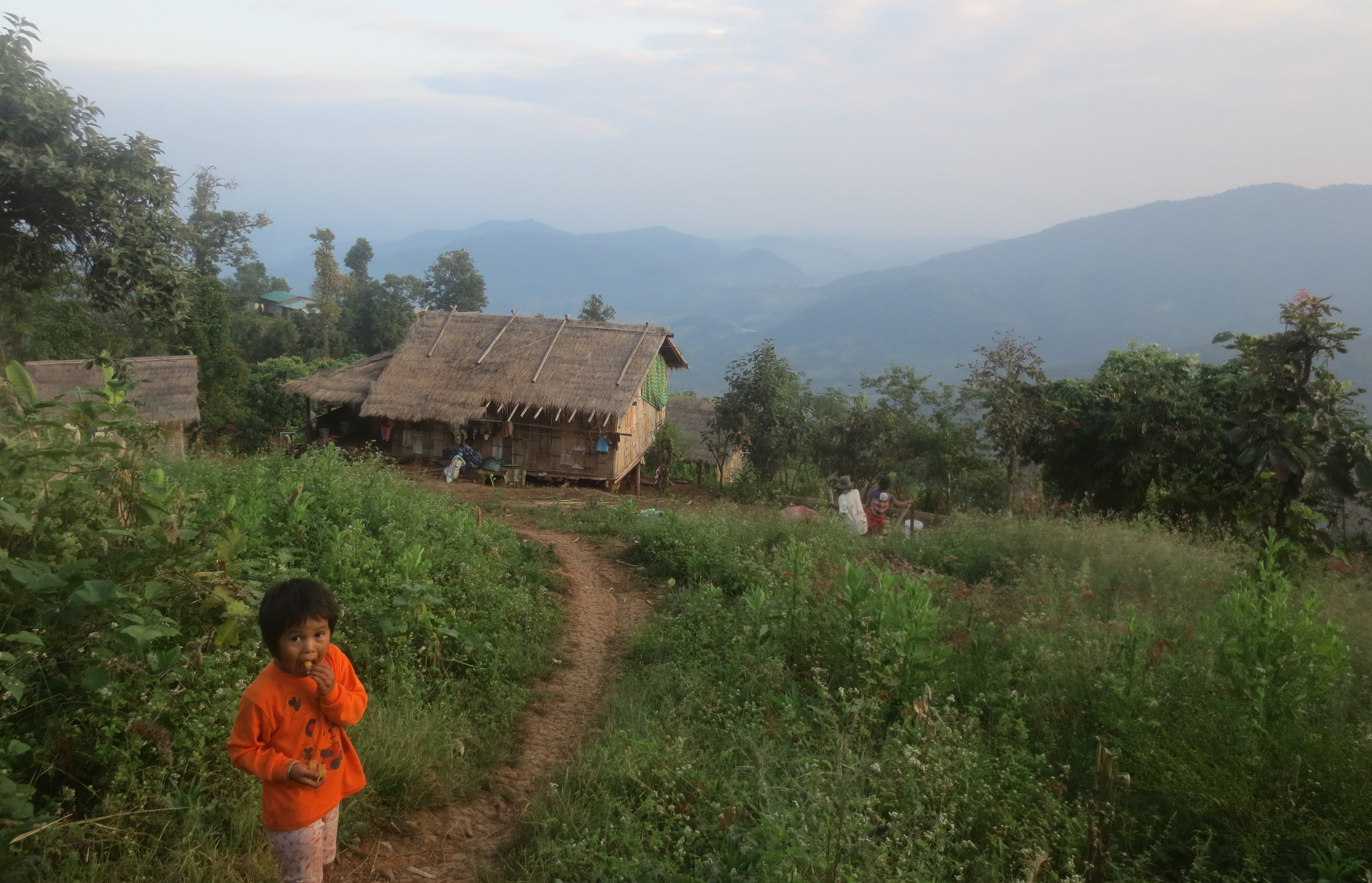 … et d’un trek d’environ 1h30 jusqu’à un village Karen, une ethnie vivant dans les montagnes. Contrairement à tous les autres, j’étais en flip flop et je ne portait pas de vêtements pour faire de la randonné, mais bien mes bonne (plus très bonne) vieille short et mon chandail habituel. Alors que certains m’avait regardé au départ en voulant dire « regarde le twit », ils ont vite compris que je n’étais pas là pour niaiser alors que j’étais de loin le plus rapide et le plus en forme… mon ombre était collée à celle du guide alors que la plupart des autres peinaient loin à l’arrière…
