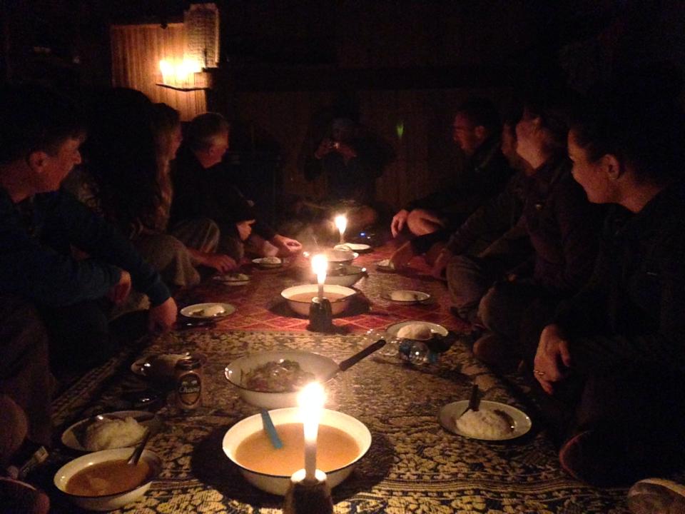 La plupart des gens dans le groupe en sont à leur 1ère expérience de trek. Lors du souper, je les écoutaient raconter leurs histoires et dire combien la journée avait été difficile sans dire un mot avec un sourire en coin. Puis, l’un d’entre-eux m’a demandé des question sur mon voyage… j’ai alors déballé mon sac en parlant de mon trek au Népal et celui en Inde… pas besoin de dire que j’avais une douzaine de paires d’yeux qui m’écoutaient attentivement.