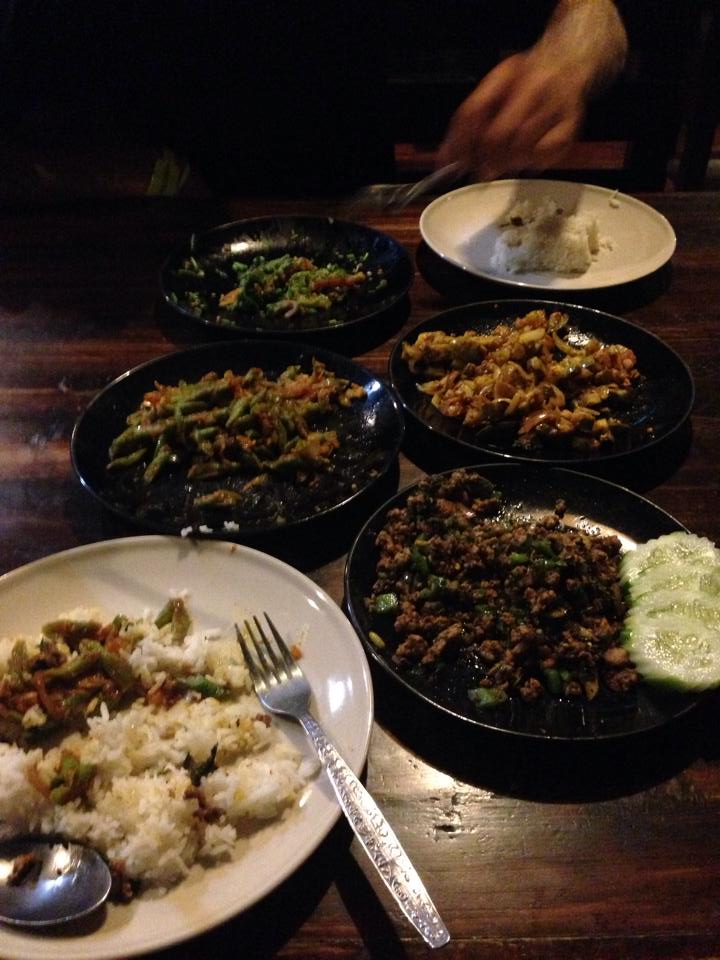 Il n’en fallait pas plus pour que nous utilisions cela comme défaite pour faire un autre festin (le mot n’est pas assez fort) dans un resto birman. C’est fou comment la bouffe birmane a bon gout et a de la texture… un vrai régal…