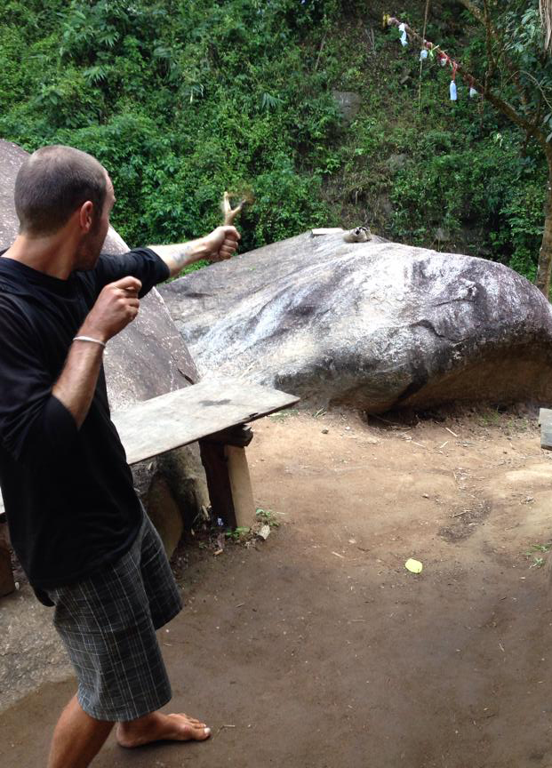 On ressemblait alors à un véritable commando de l’armé; Alex étant l’américain obsédé par les armes (un slingshot n’avait pas quitté ses mains depuis le départ)… notre guide étant le chef un peu parano et ayant quelques fantômes dans son placard… l’espagnol (Jaime) étant l’étranger qui a peine a communiquer… le vieil australien (Dave) étant le vieil sergent un peu blasé qui ne se laisse plus impressionner par rien ni personne… et moi étant le gars un peu trop sur de lui/le grand talent.