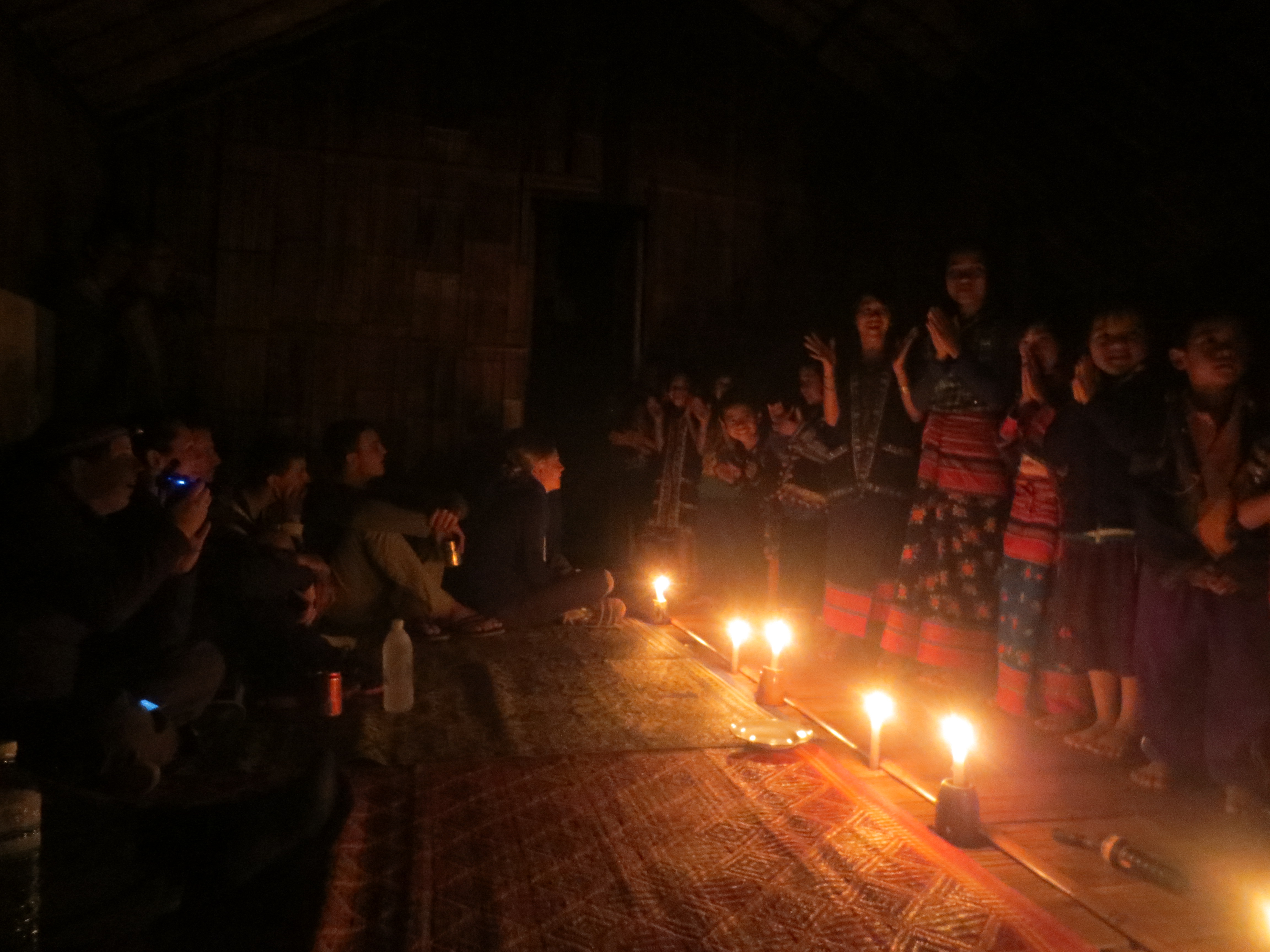 Nous étions hébergé dans une très belle maison traditionnelle faite de bambou, sur pilotis et situé au sommet d’une petite montagne. Moi et mes 12 compagnons allions partager une chambre dortoir pour la nuit… espérons que personne ne ronfle…