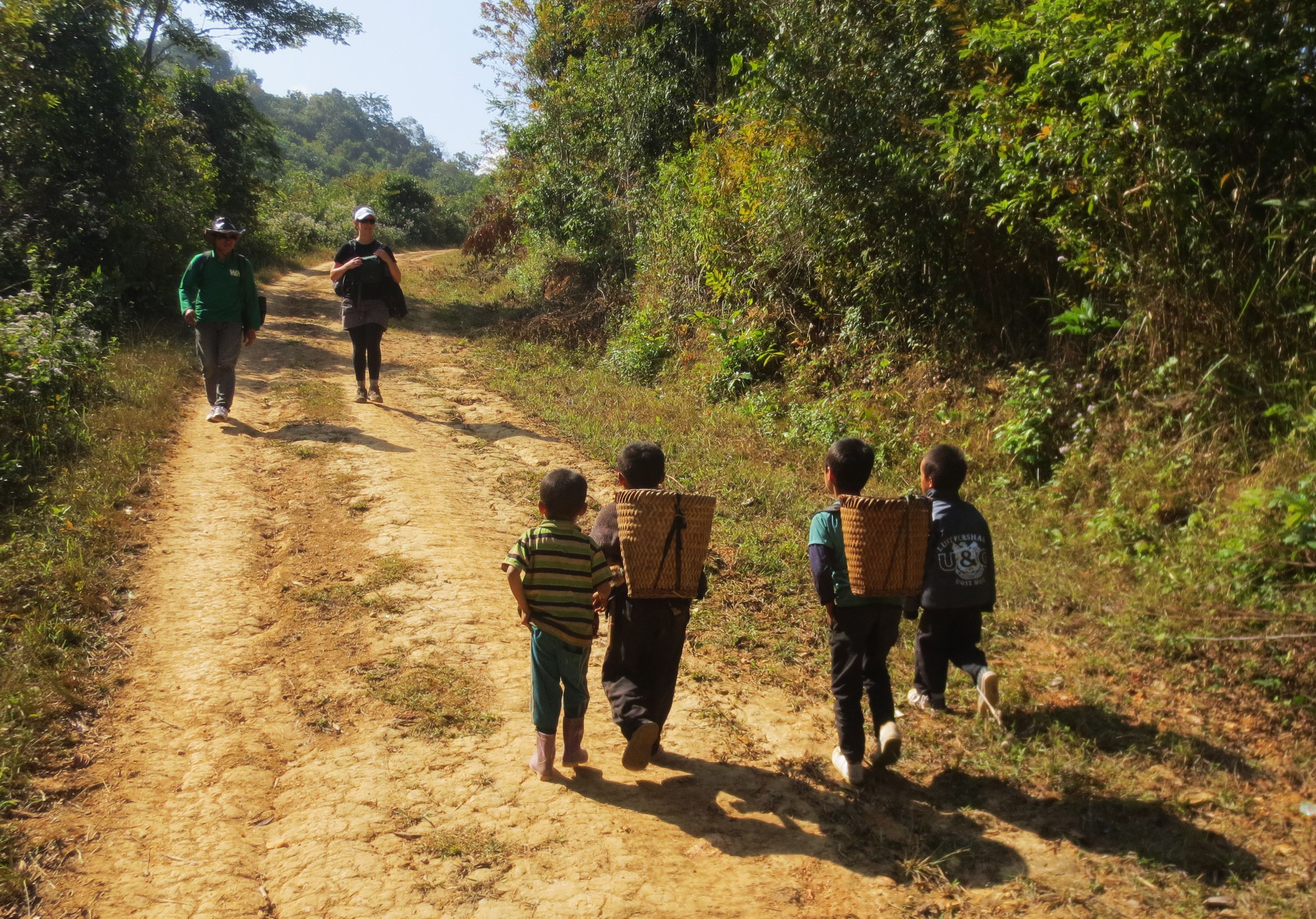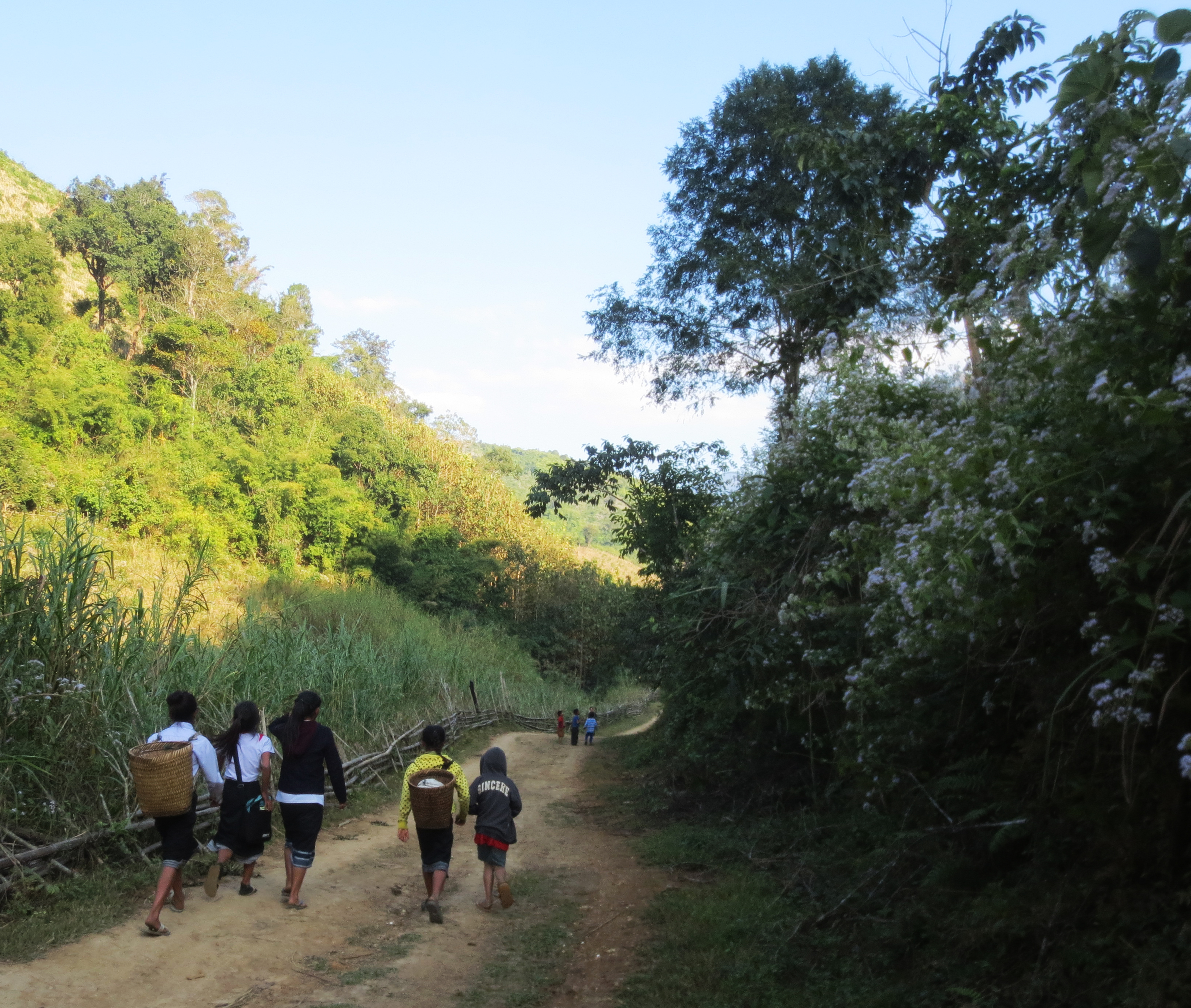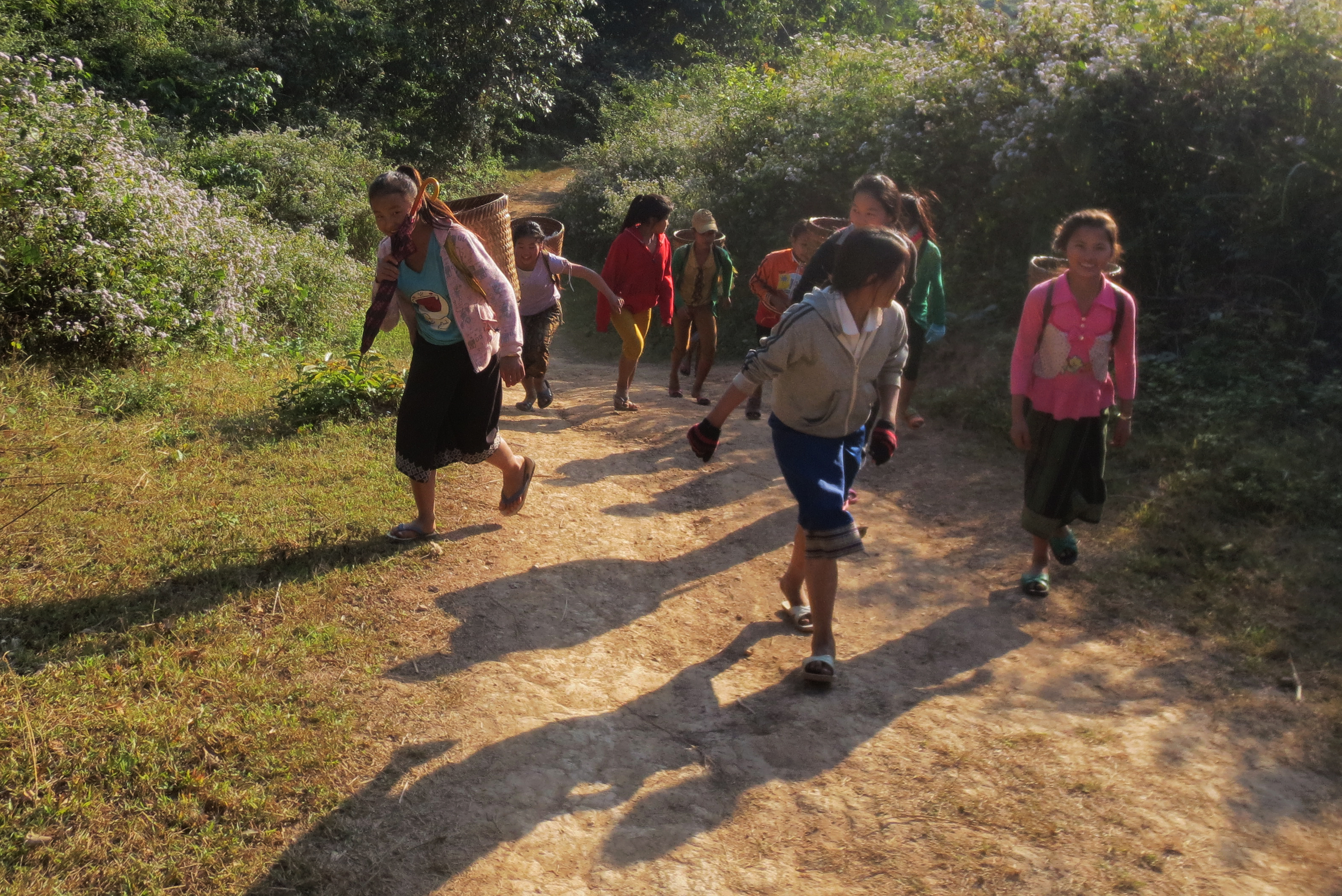 En ce vendredi en fin d’après-midi, tous les jeunes qui avaient passé la semaine à l’école du village précédent, revenaient chez eux pour la fin de semaine (tu parles d’un timing parfait). Nous avons donc fait le chemin avec eux…