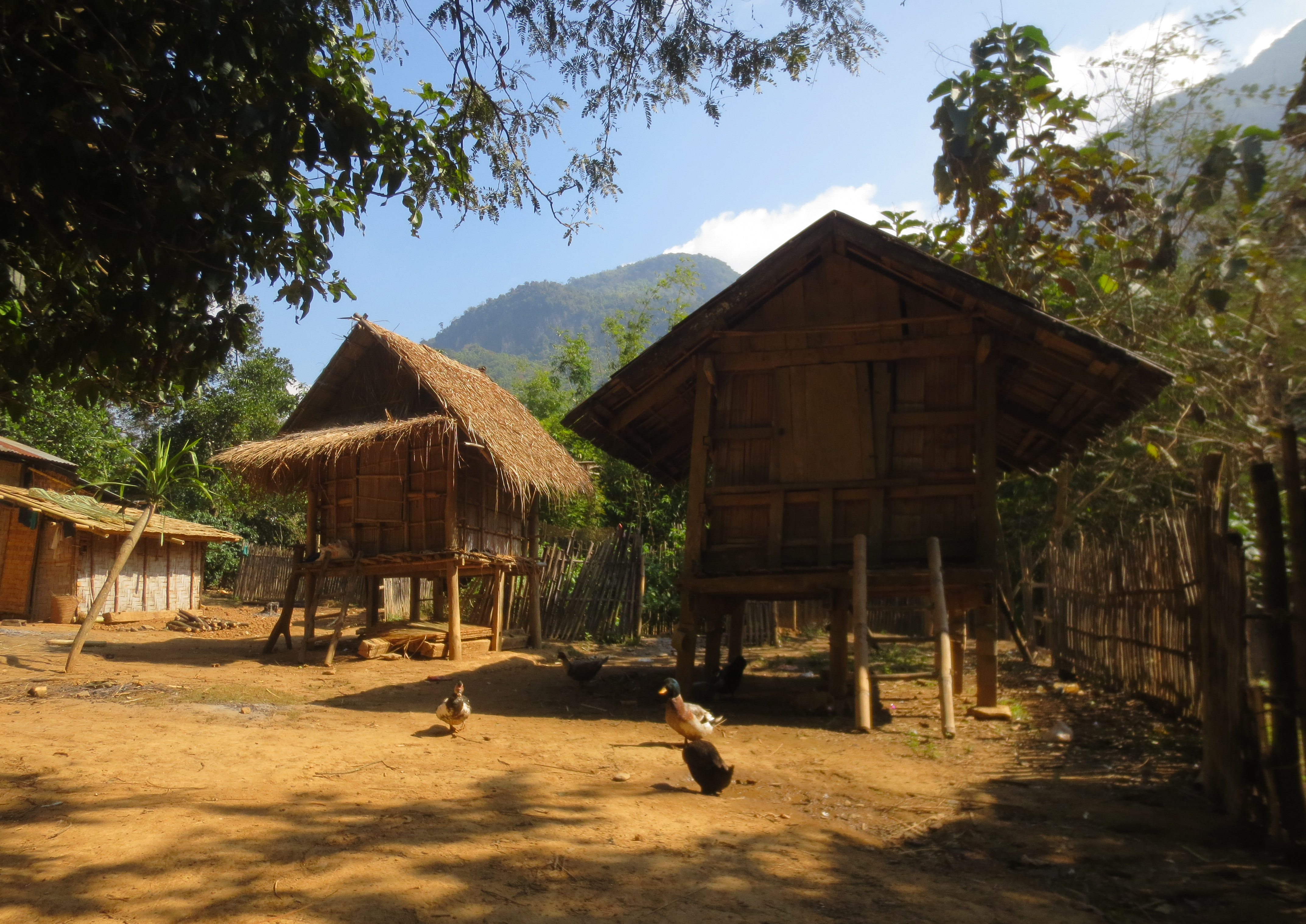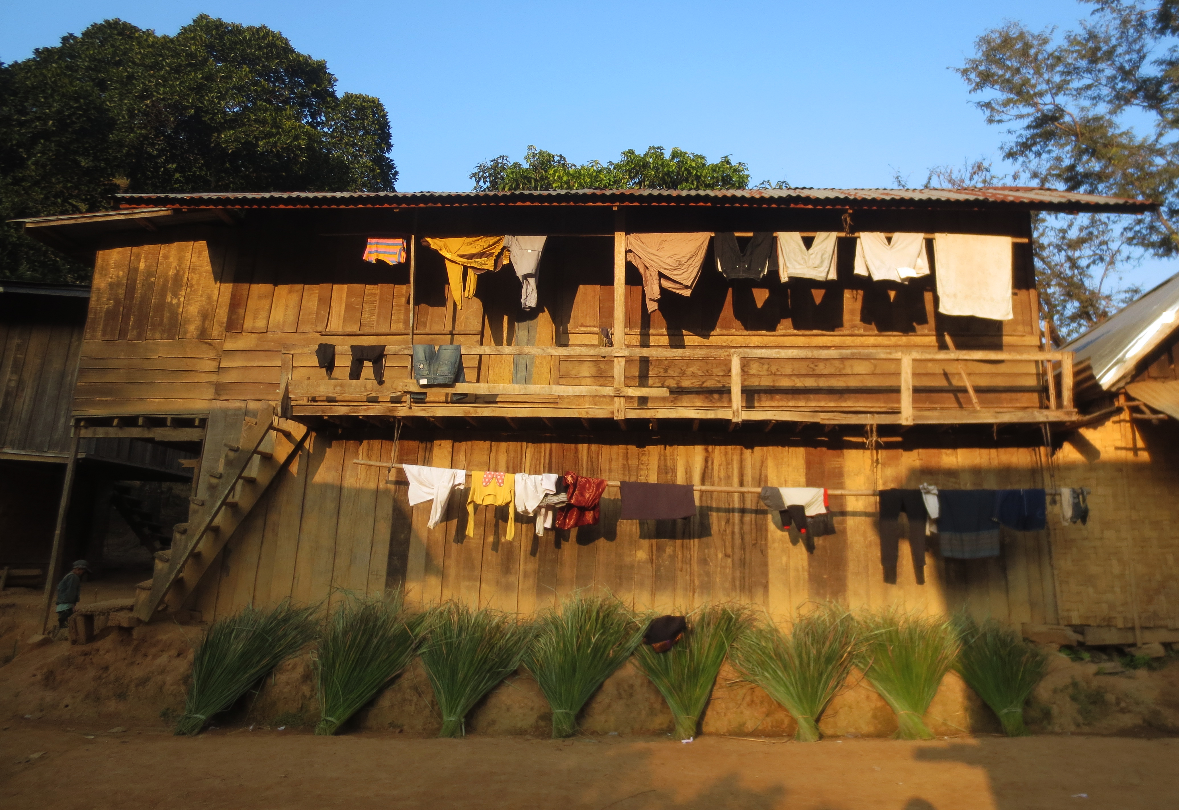Concernant l’architecture Khmu, tout ce que j’ai écrit à propos de l’architecture Hmong est encore vrai, à la différence que les maisons Khmu sont construites sur pilotis… en pleine montagne?!? N’ayant plus aucune utilité réelle, les constructions sur pilotis sont un rappel de l’architecture ancestrale de leur peuple alors qu’ils vivaient dans des plaines inondables au Cambodge.
