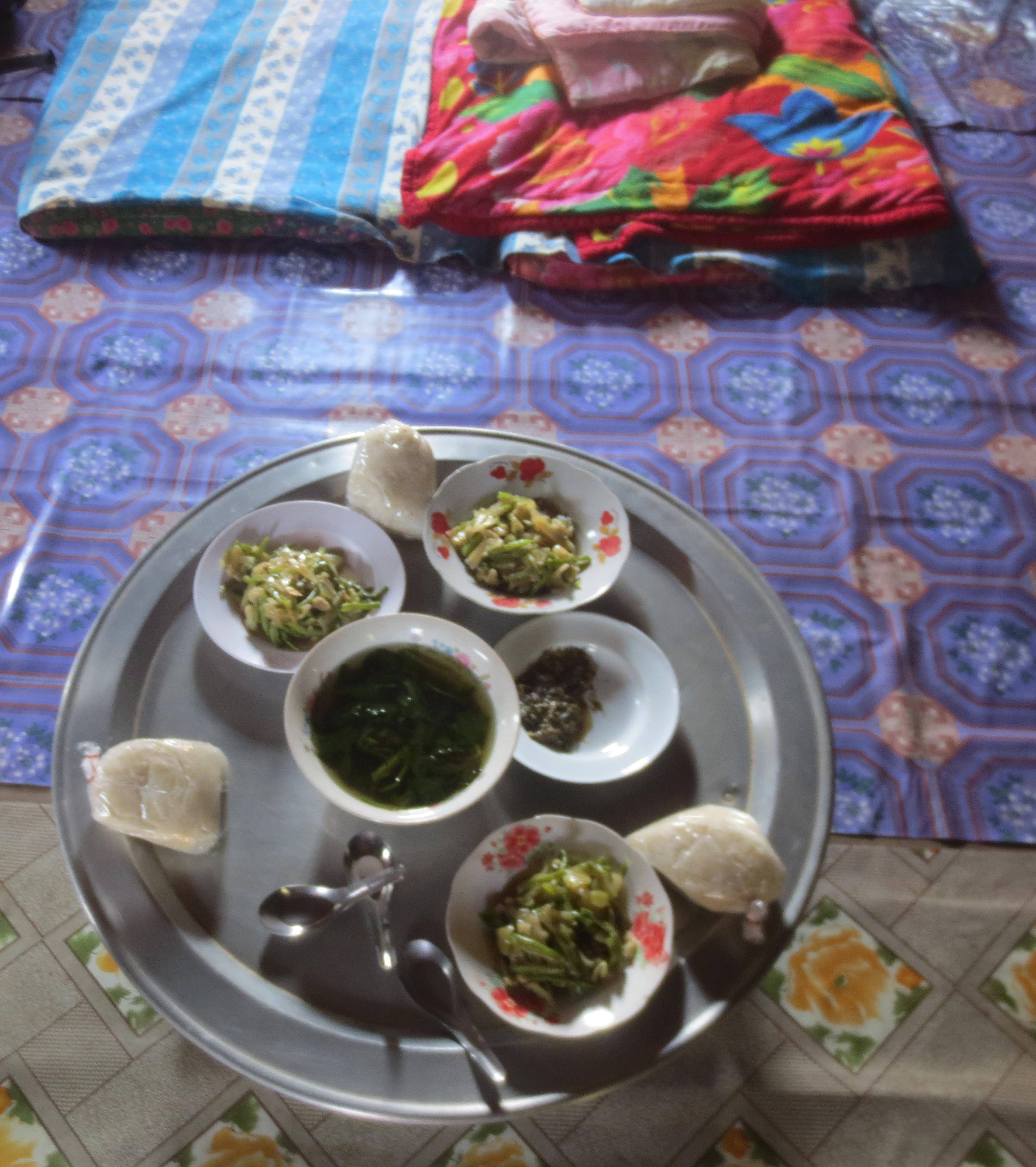 Pour notre 1er soir dans une tribu laotienne, nous seront hébergé chez le chef du village (que ce soit pour les Hmong ou les Khmu, chaque village est une petite démocratie en soit; un chef et 2 chefs adjoints sont élus tous les 4 ans). Notre chambre consiste donc à une petite grande juste à côté de la maison… confort non inclus.