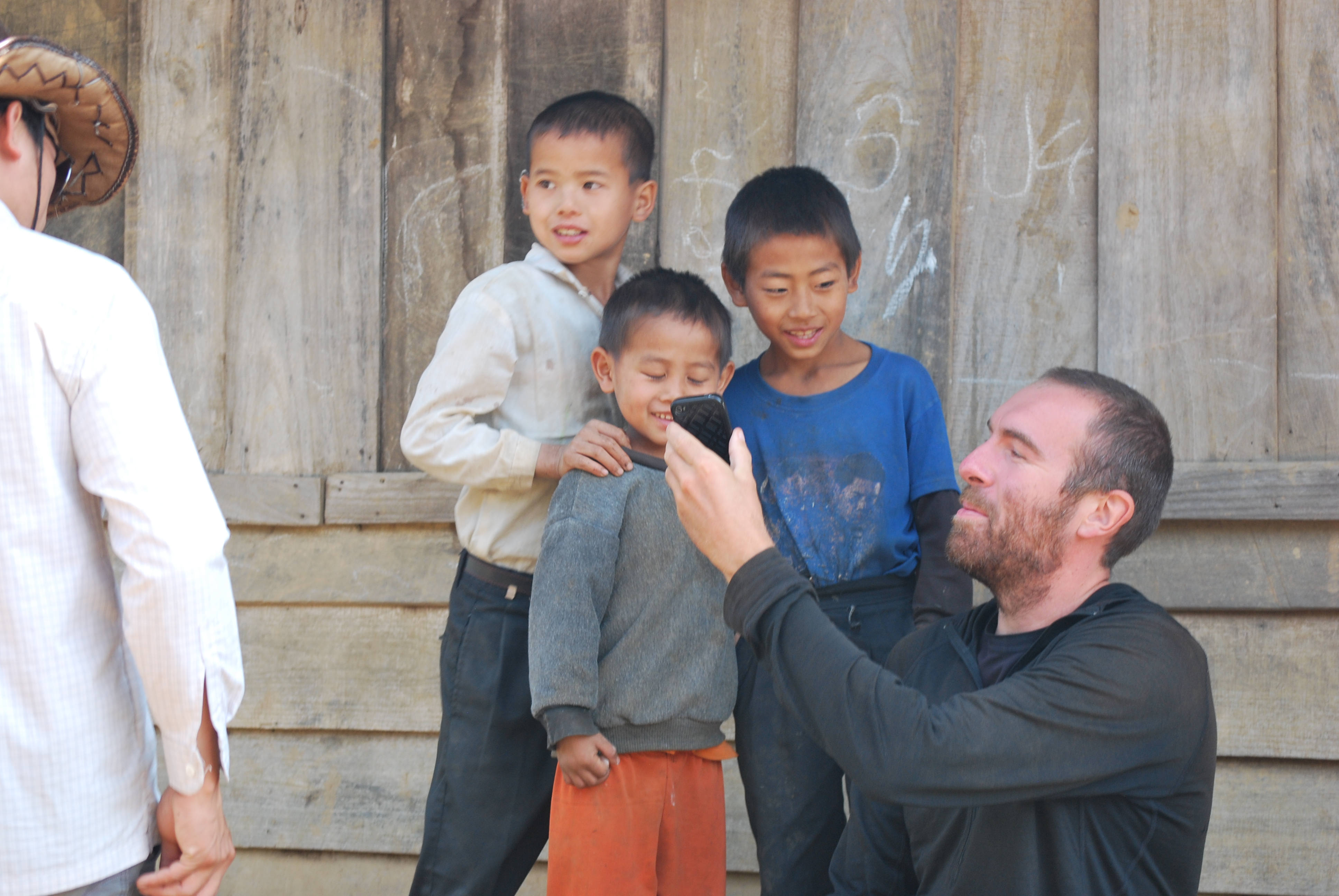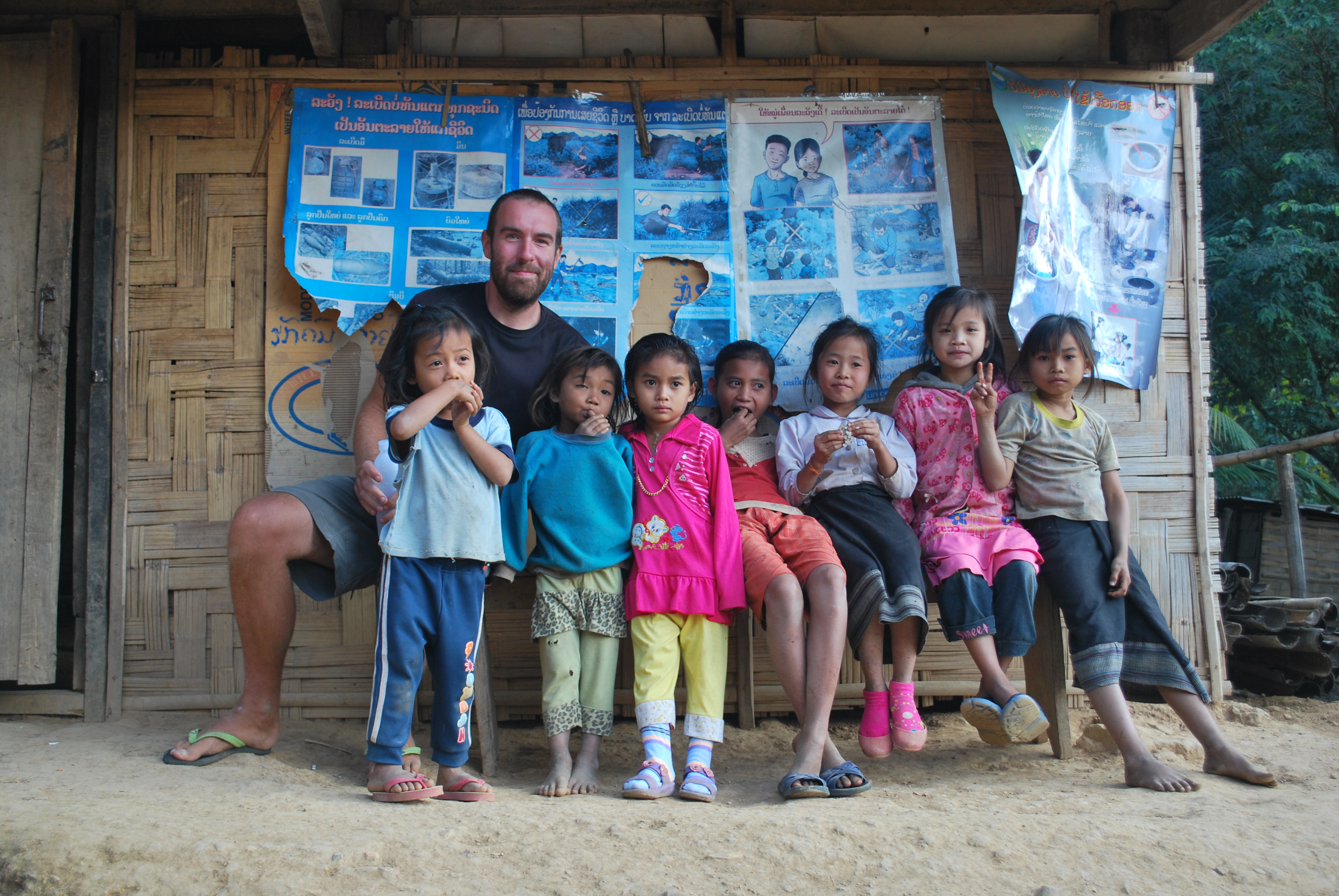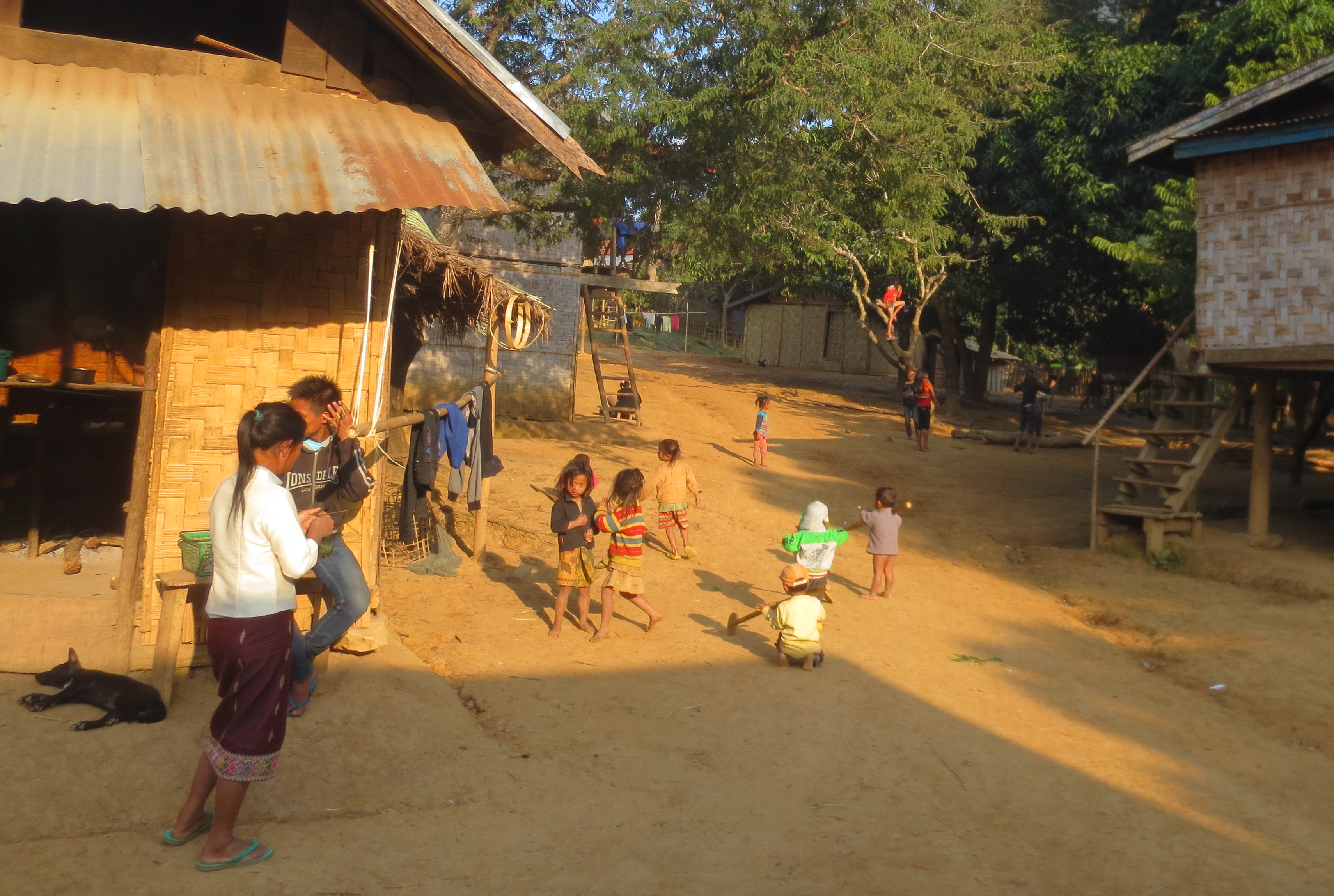 À peine déposé nos sacs à dos dans la grande qui allait nous servir de chambre qu’un groupe de jeunes curieux avait commencé à nous suivre à la trace. Majoritairement composé de fillettes, je n’avais qu’à regarder l’une d’elle et dire ‘’sabaidi (bonjour)’’ pour qu’elle me regarde toute timide en riant… le genre de regard qui veut dire ‘’je t’aime bien’’… j’ai donc encore une fois eu l’impression de briser des cœurs. Pour me faire pardonner… j’ai entrepris de jouer une espèce de partie de cache-cache avec eux; je leur courais après et ils partaient de tout bord tout cote en criant. De voir le sourire sur leur visage était la cerise sur le Sunday d’une journée déjà parfaite.