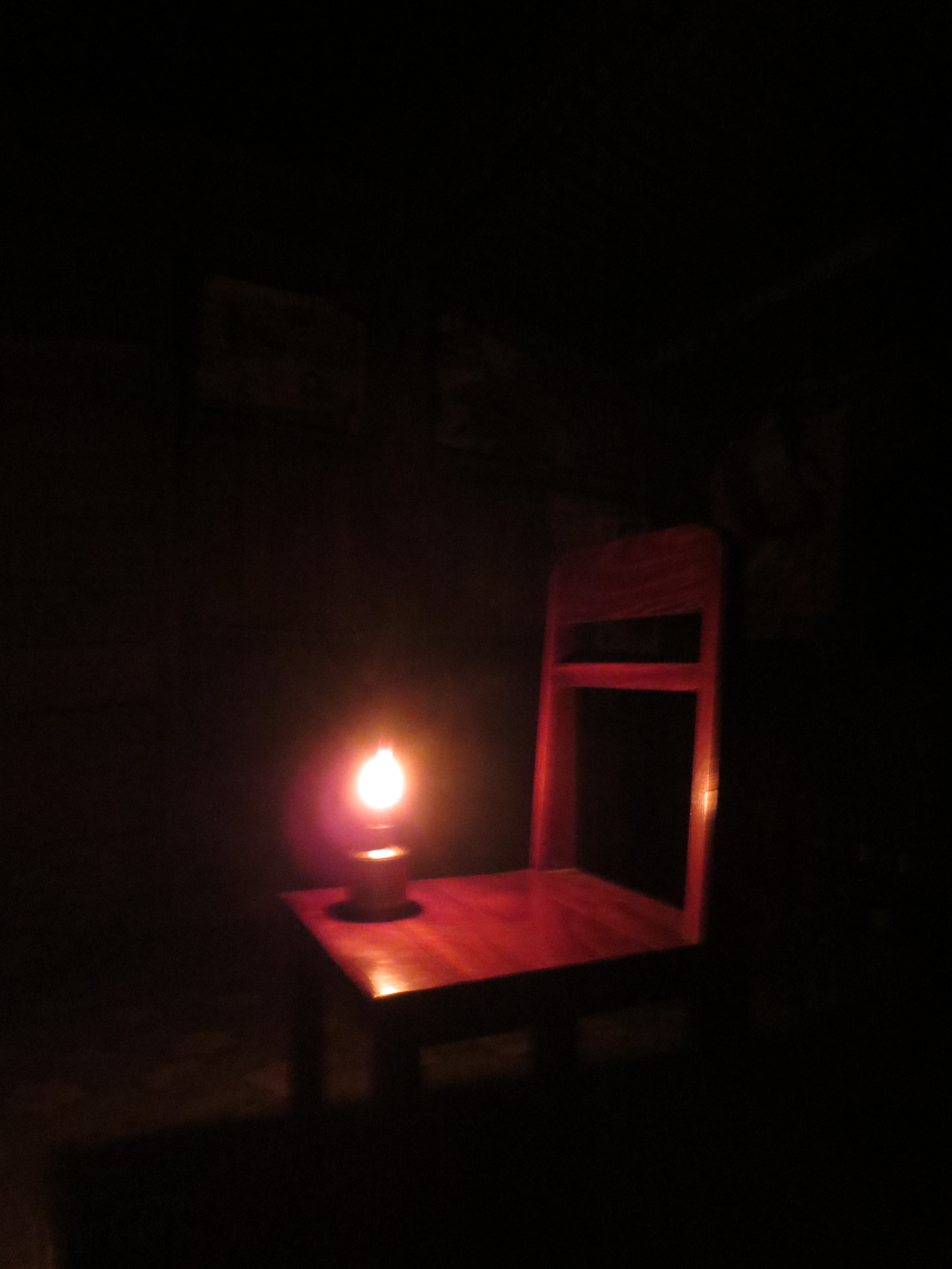 Encore une fois ce soir, nous résidons chez le chef du village… cette fois, pas question d’être dans la grande à côté de la maison… oh que non… nous sommes plutôt dans la grande qui leur sert de maison.