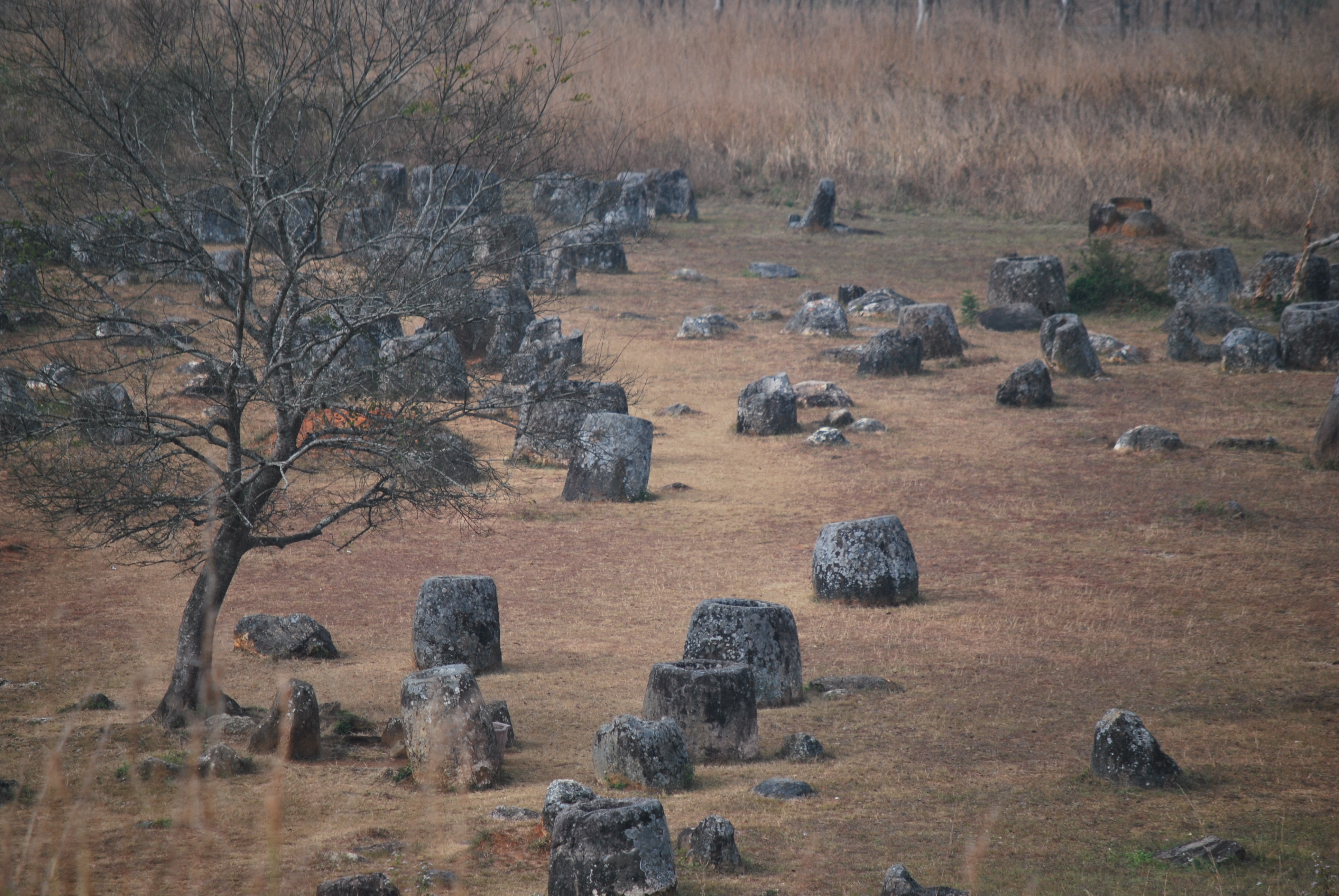 Bon, j’arrête de tourner autour du pot et je vous raconte c’est quoi c’est foutu Plain of Jars; il y a très très longtemps (avant Jésus Christ), dans une contrée très lointaine (le Laos), vivait un peuple… Ce peuple avait comme hobby de fabriquer une très grande quantité de jarres et de les disposer dans les champs et les collines au Sud de ce qu’est Phonsavanh aujourd’hui.