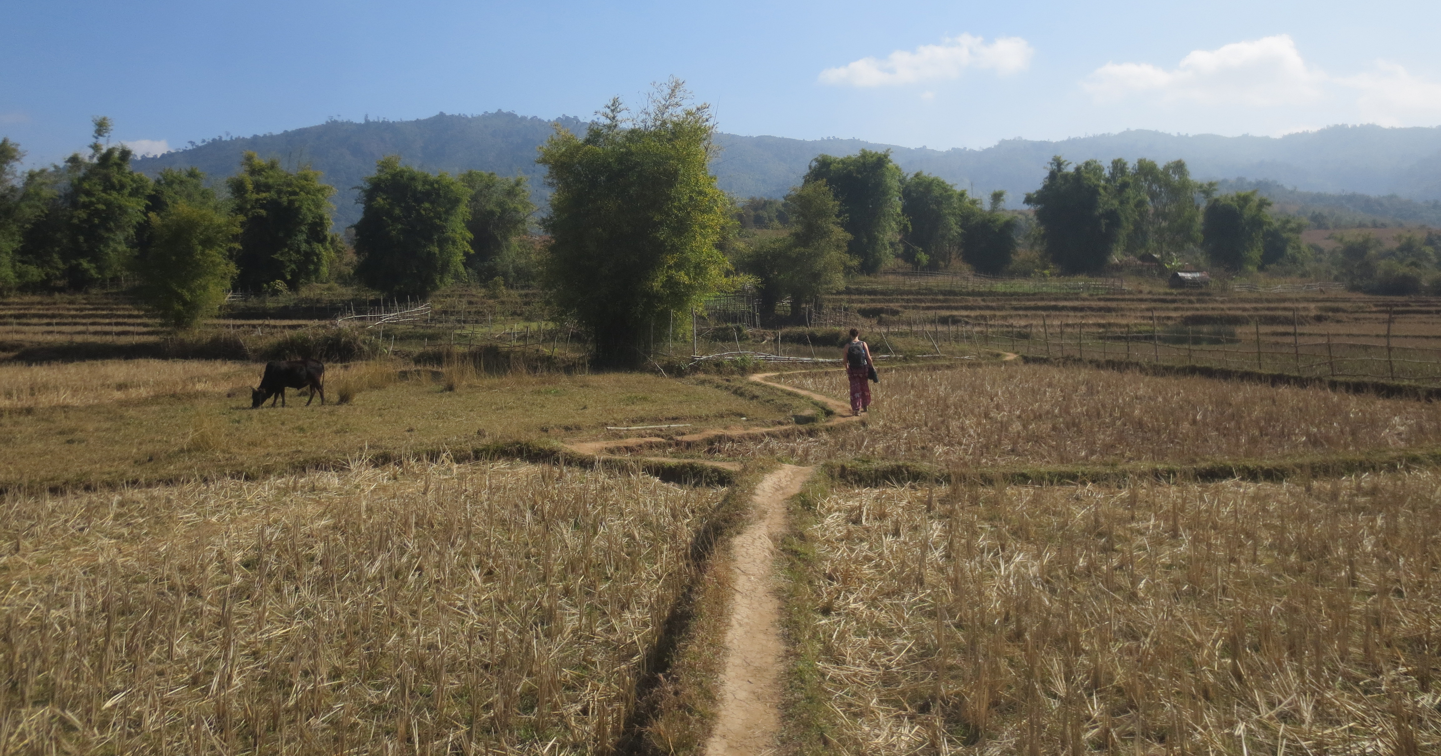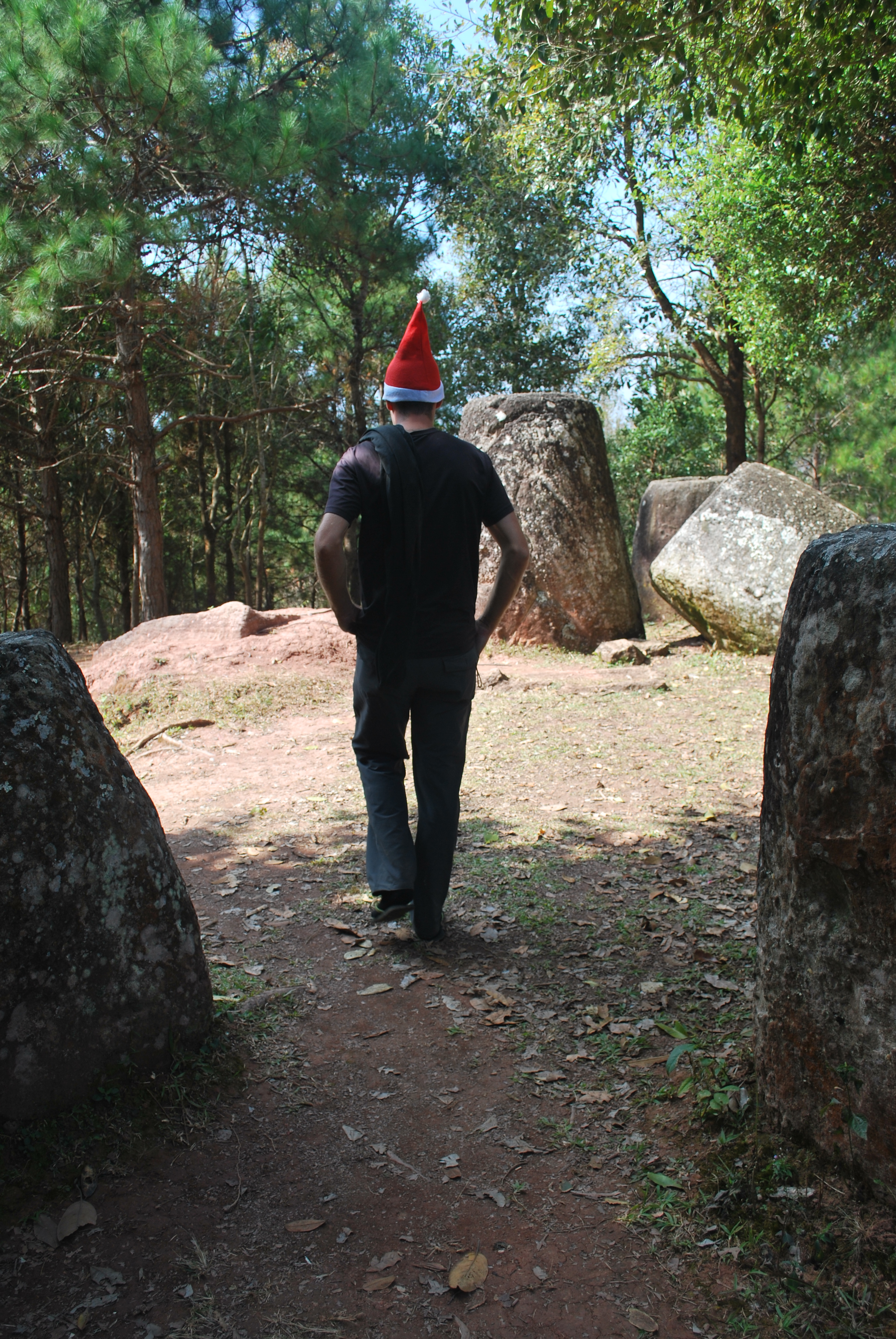 Notre journée a consisté à alterner entre les champs et les petits villages sur de routes parfois pavées… très parfois pas… à faire des High Five aux enfants sur le bord de la route… à se rendre d’une Plain of Jars à l’autre… vêtu de bas dans mes flip flop et d’un chapeau de Noel sur la tête…