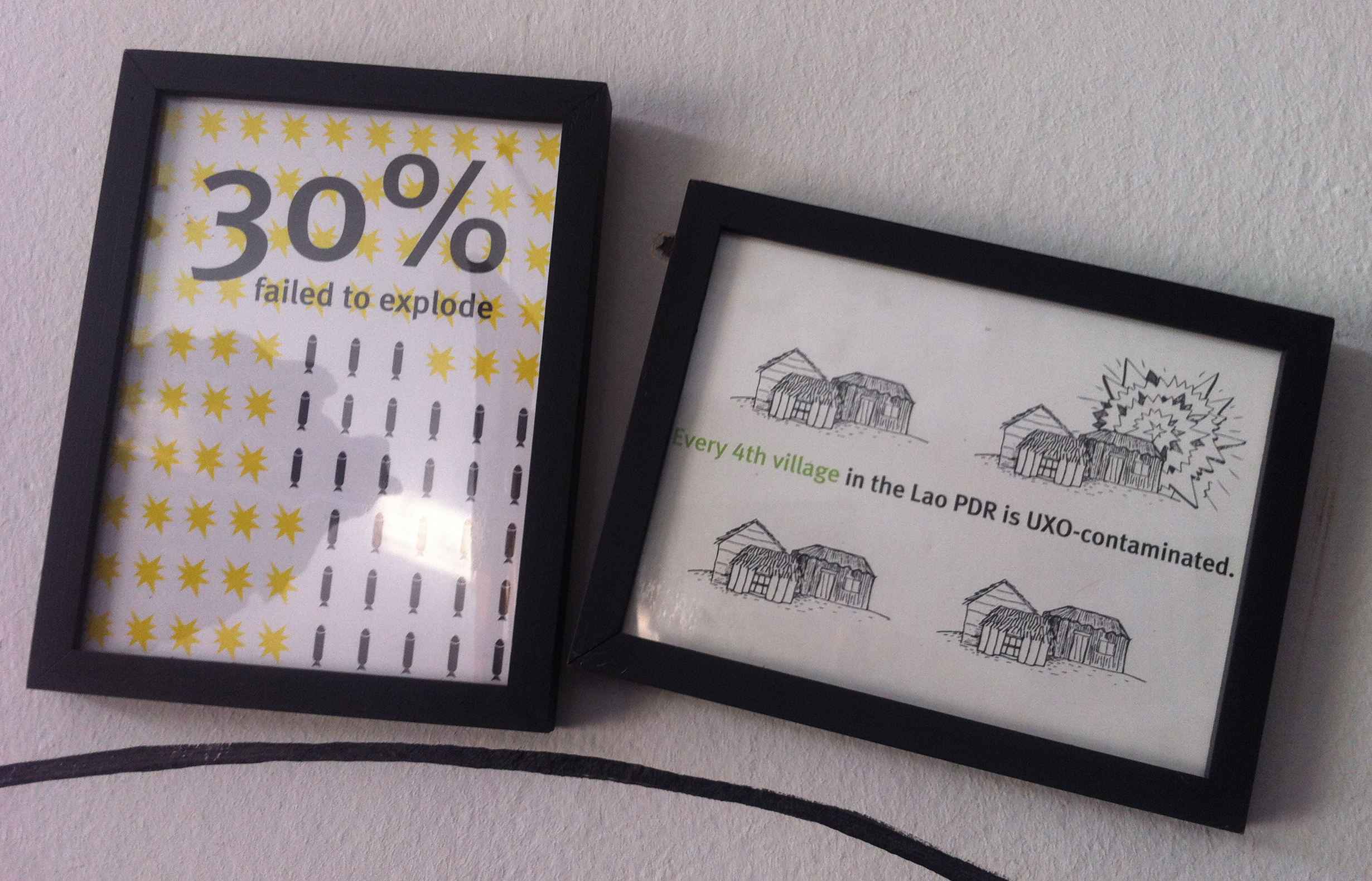 Au final, si on fait le ratio de bombe lancé versus la grandeur du territoire, le Laos est le pays qui a été le plus bombardé… dans toute l’histoire de l’humanité. De toutes ces bombes, on estime que 25 à 30% d’entre-elles n’ont pas explosées lorsqu’elles ont atteint le sol… elles se sont donc retrouvées dans la nature. On estime à plus de 30 MILLIONS (essayez de compter jusqu’à 30 millions… on se reparle après) le nombre de bombes qui n’ont pas explosées (communément appelé U.X.O.). Or, ce n’est pas parce qu’elles n’ont pas explosé en touchant le sol qu’elles sont inoffensives… bien au contraire.