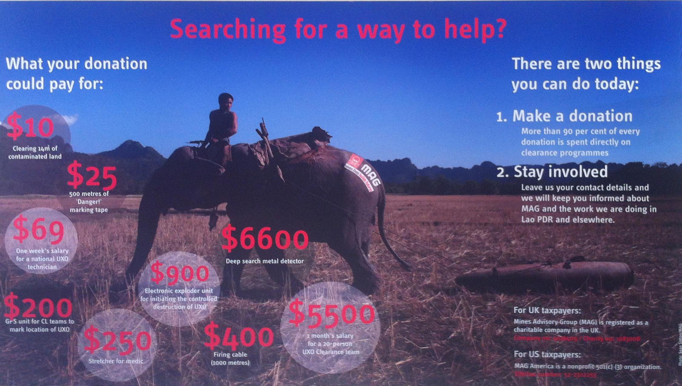 Lors d’un passage à Phonsavanh, une visite au M.A.G. s’impose. Il y a environ 20ans, le groupe ‘’Mines Adversory Group’’ (M.A.G.) a été créé afin de nettoyer le territoire et sensibiliser la population locale au danger dû aux U.X.O.
