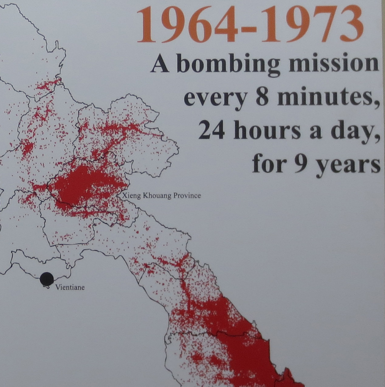 Pendant 9 ans… soit entre 1964 et 1973… le Laos a été bombardé l’équivalent de 1 fois toutes les 8 minutes 24h/24 par les américains.