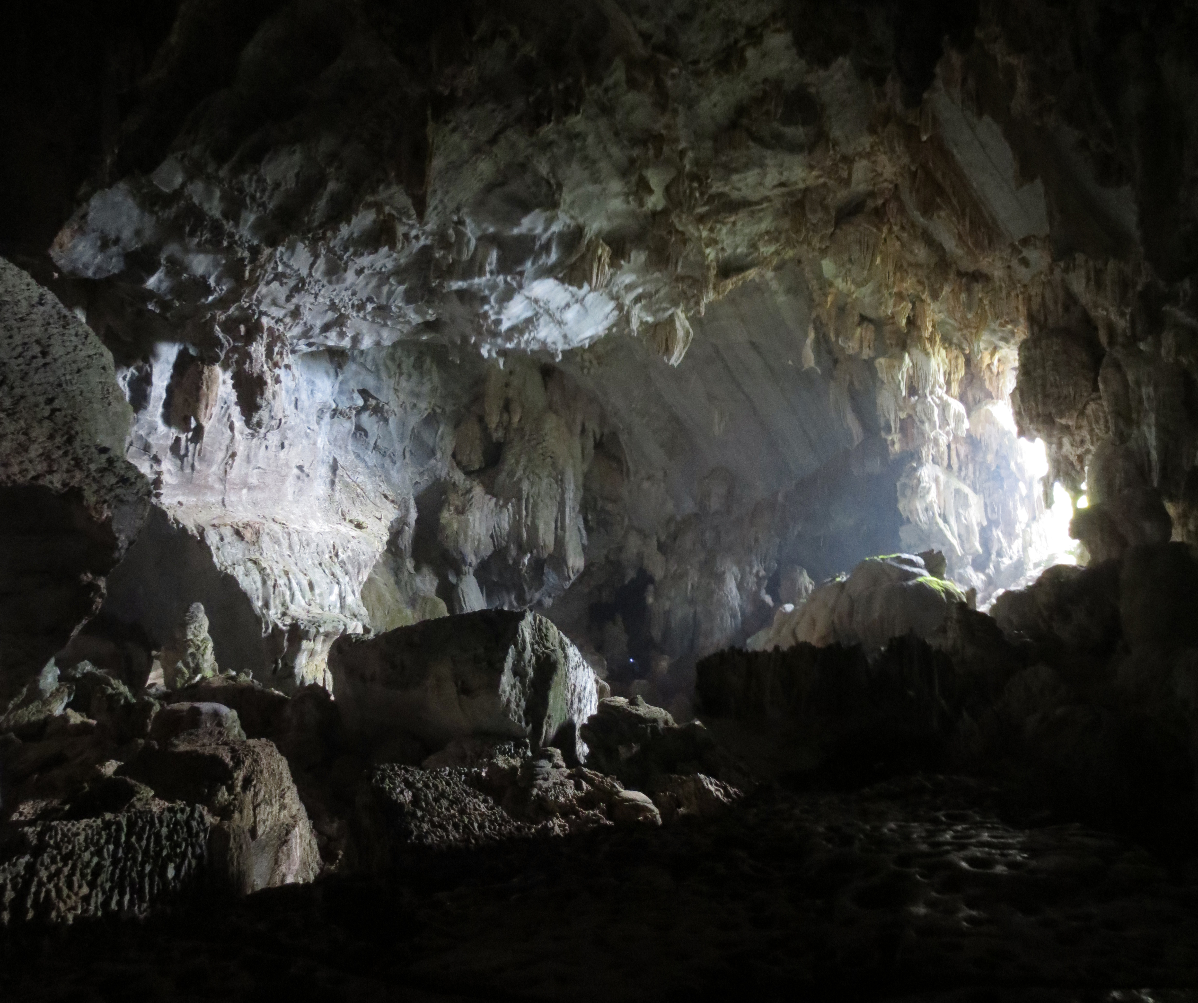 Alors que Tracey continuait son chemin jusqu’à l’auberge, je suis allé faire un pit stop à Padeng Cave. Dès le départ, la caverne a mis carte sur table; attache ta tuque avec de la broche. First, à la minute où tu entres dans la caverne, l’air devient très lourd (l’air est vicié et rempli de moisissure). Secondo, à la minute ou tu entres dedans, toute lumière naturelle disparait complètement et tu es plongé dans un univers Pitch Black, dans la mesure où si tu fermes ta lampe de poche, tu es plongé dans un environnement le noir le plus total.