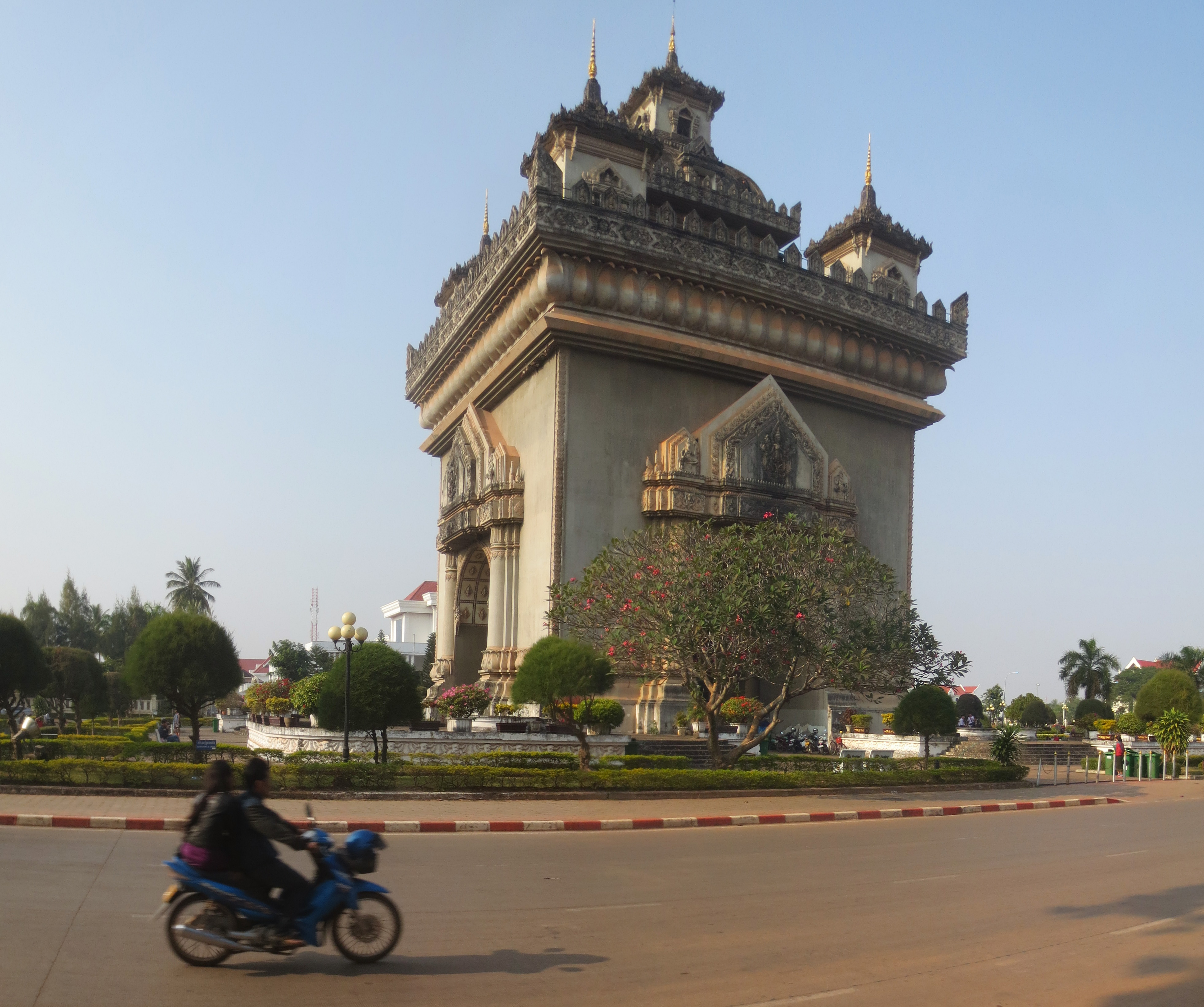 Tant qu’à y être, il ne faut pas manquer d’aller voir Pataxay; véritable Arc de Triomphe (Champs Élysées – Paris) version Laos… à la différence du véritable Arc de Triomphe, qu’il n’y a aucun tunnel pour se rendre au milieu du rond point achalandé. Il faut donc garder l’œil ouvert… ouvrez les 2 pour être sur…