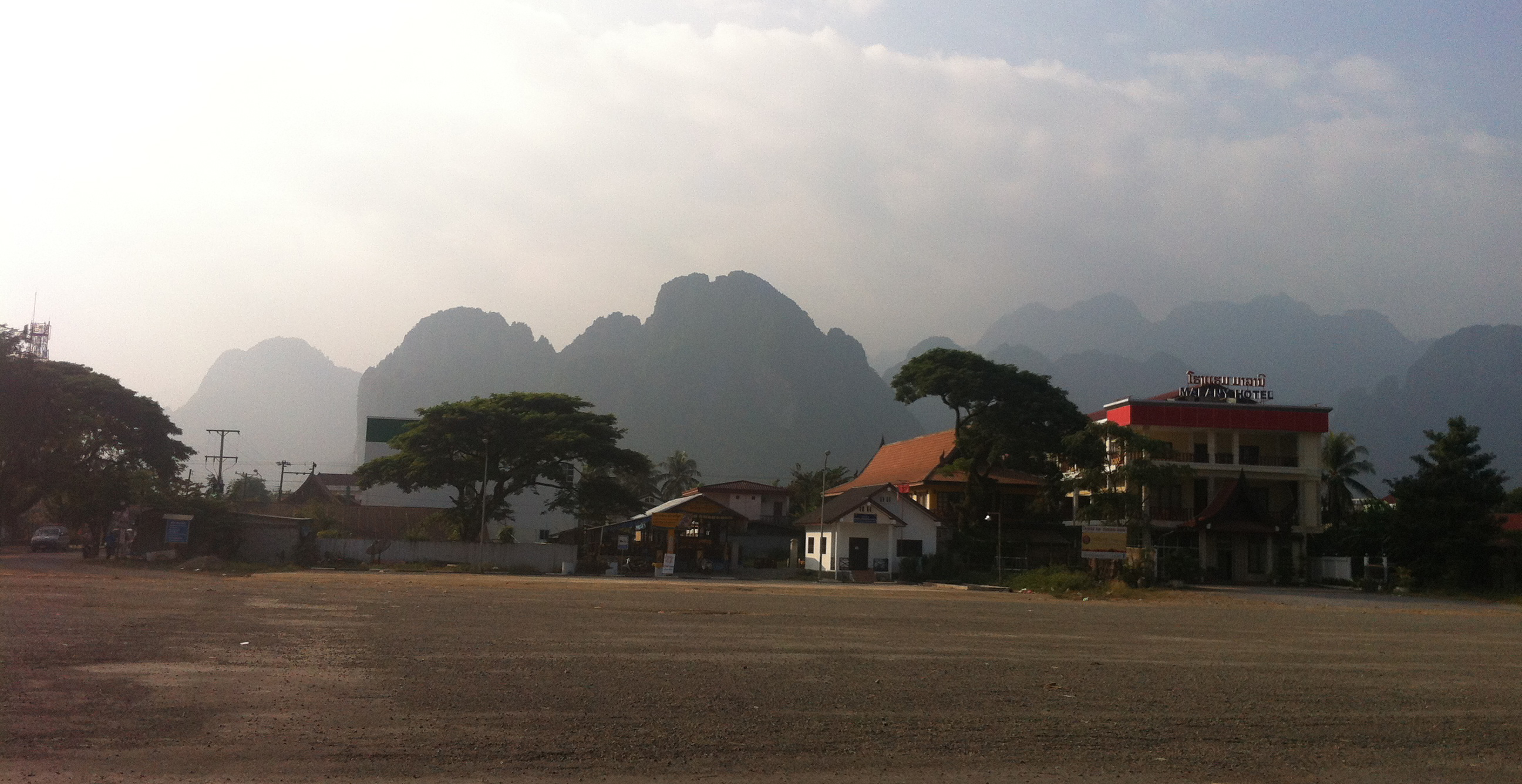 Une fois arrivé à Vang Vieng, le bus nous a débarqué sur une vieille piste d’avion désaffectée, souvenir de la guerre du Vietnam, à 2 pas du centre-ville.