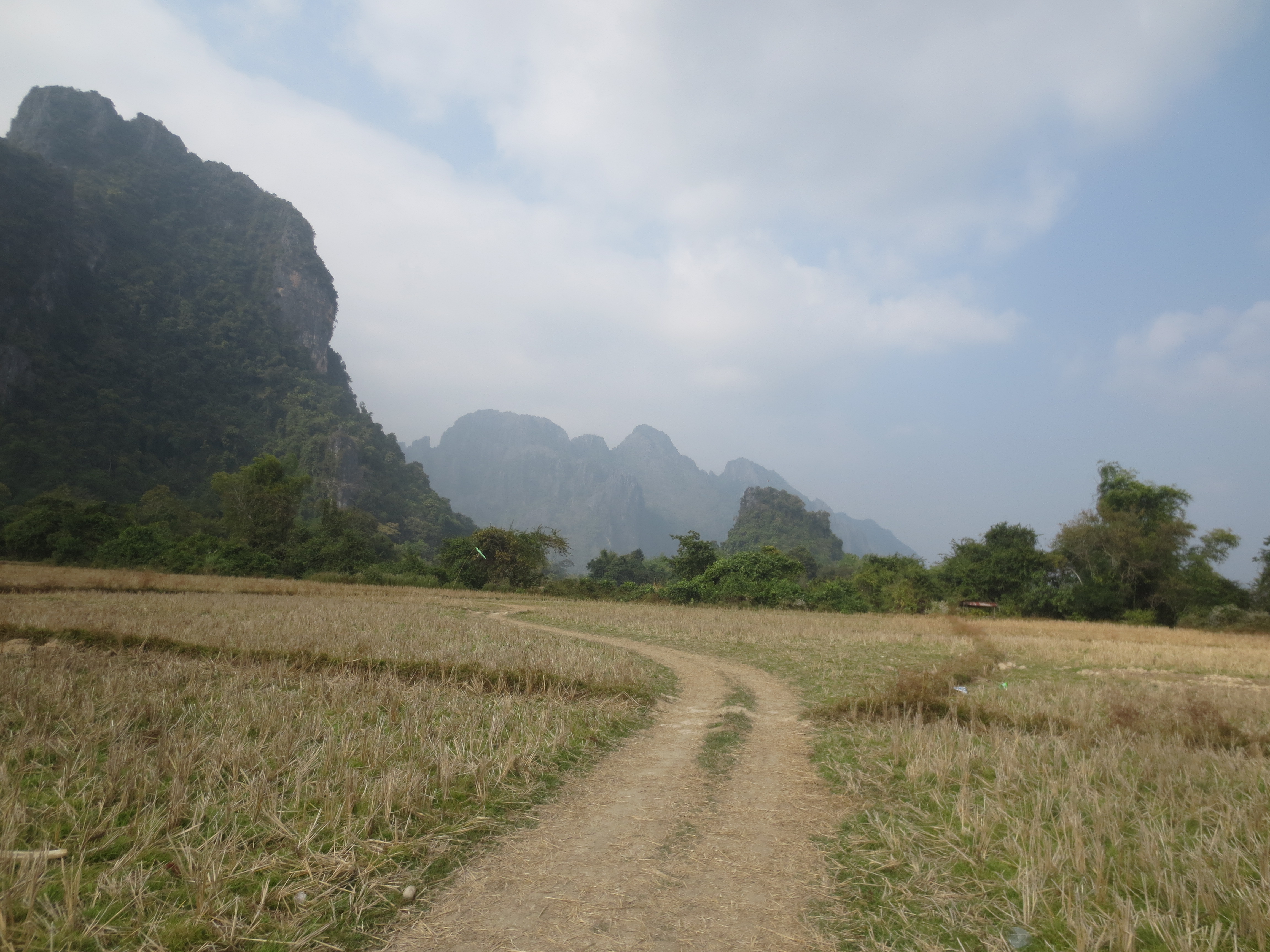 Une fois sorti de Vang Vieng, tout est devenu silencieux. Ce fut l’une des matinée les plus reposantes que j’ai eu depuis longtemps; pas de chiens, coqs ou locaux qui crient à tue-tête… et pas de voiture ou tuk tuk qui roulent à pleine vitesse.