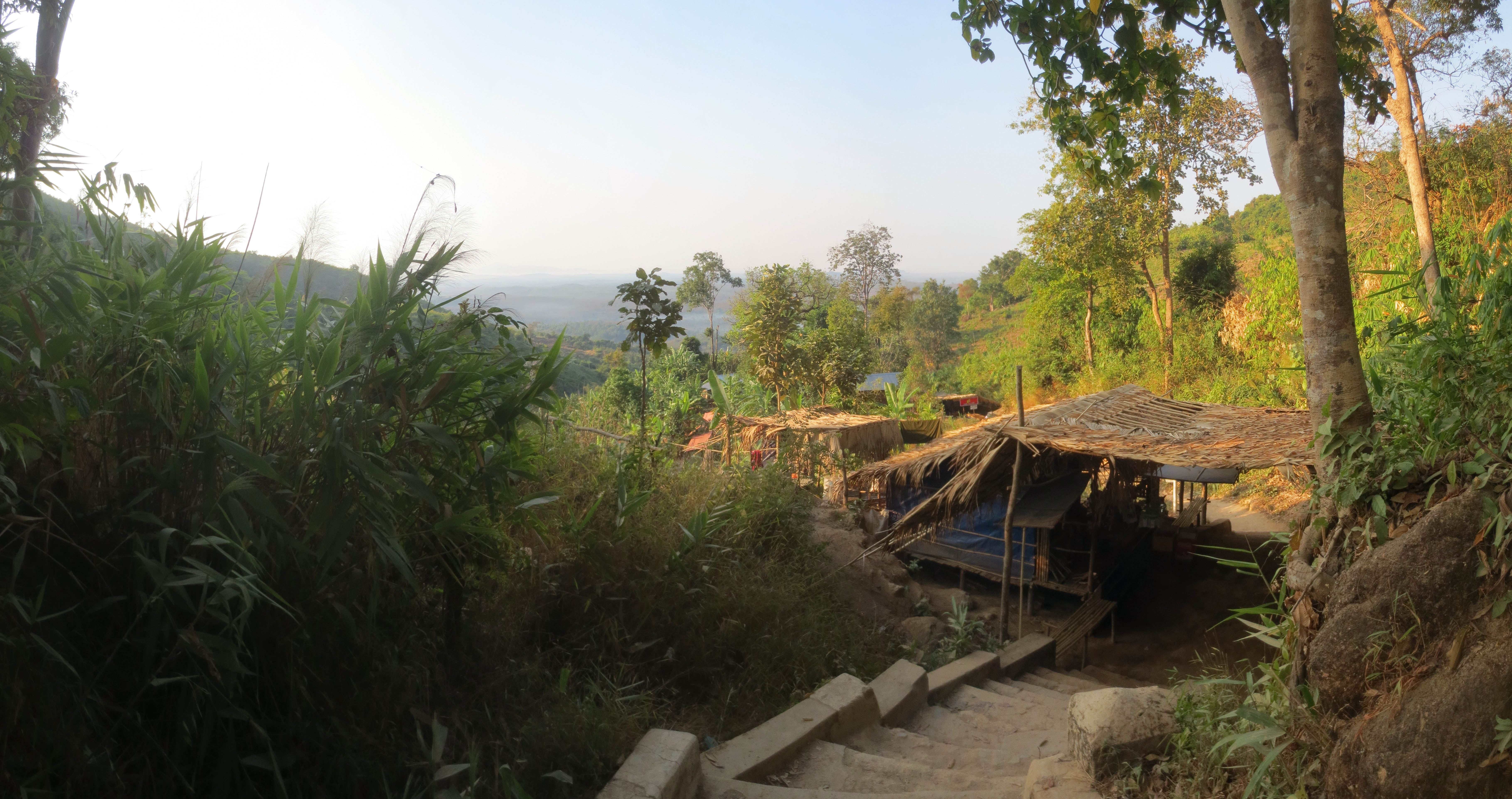 C’est au son des coqs qui célébraient la venu du soleil que nous avons entamé le pèlerinage qui allait nous mener à cette grosse roche. En effet, pour atteindre la Golden Rock, il fait se taper un sentier de 7 miles (11km) montant tranquillement jusqu’au sommet de la chaine de montagne environnante.