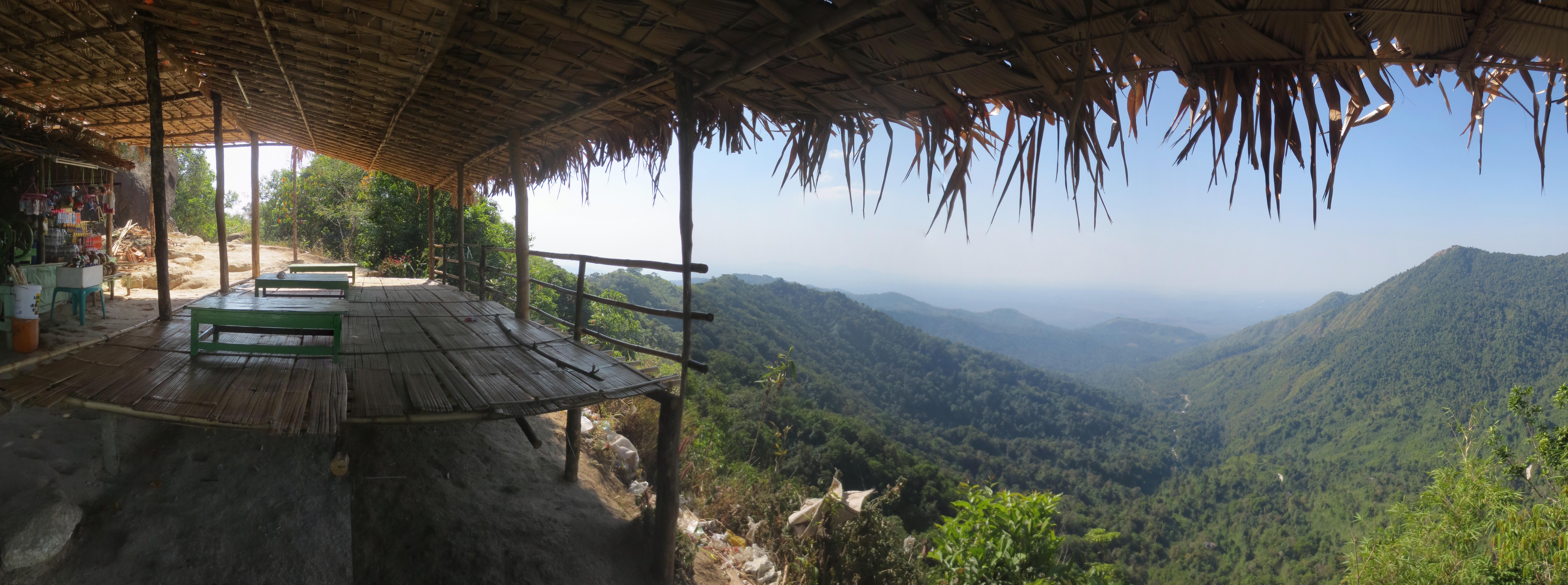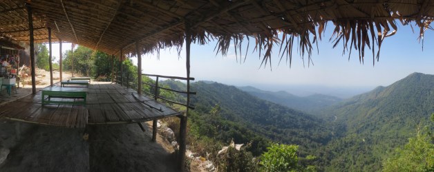 Peu après la mi-parcours, le plus gros de l’ascension était derrière nous. Nous étions désormais à emprunter un sentier serpentant au sommet de la chaine de montagnes. Nous avions alors une vue magnifique de la région. De part et d’autres, on ne voyant que de la forêts et des montagnes à perte de vue. Chaque montagne environnante avait un temple à son sommet.