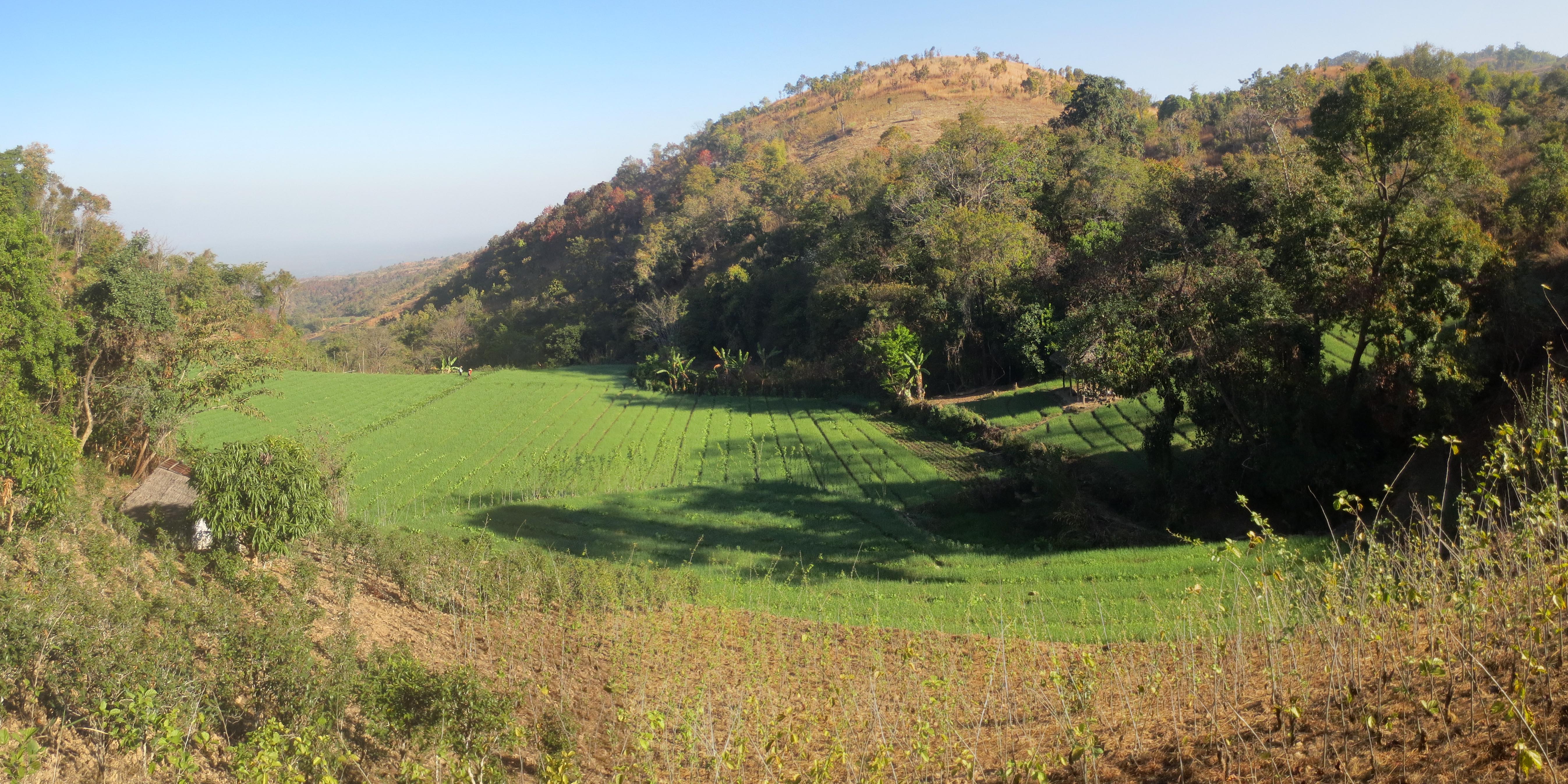Pour l’heure, nous étions bien loin de ce rêve; une poigné de locaux cultivaient difficilement la terre semi-aride afin d’en tirer le plus de chose possible… c’est-à-dire presque rien… à peine de quoi subvenir à leur besoin. Alors que les champs en bas de la vallée peuvent jouir d’une source d’eau quasi illimité provenant de Inle et de ses nombreuses rivières et canaux d’irrigation, les montagnes tout autour sont assez arides.