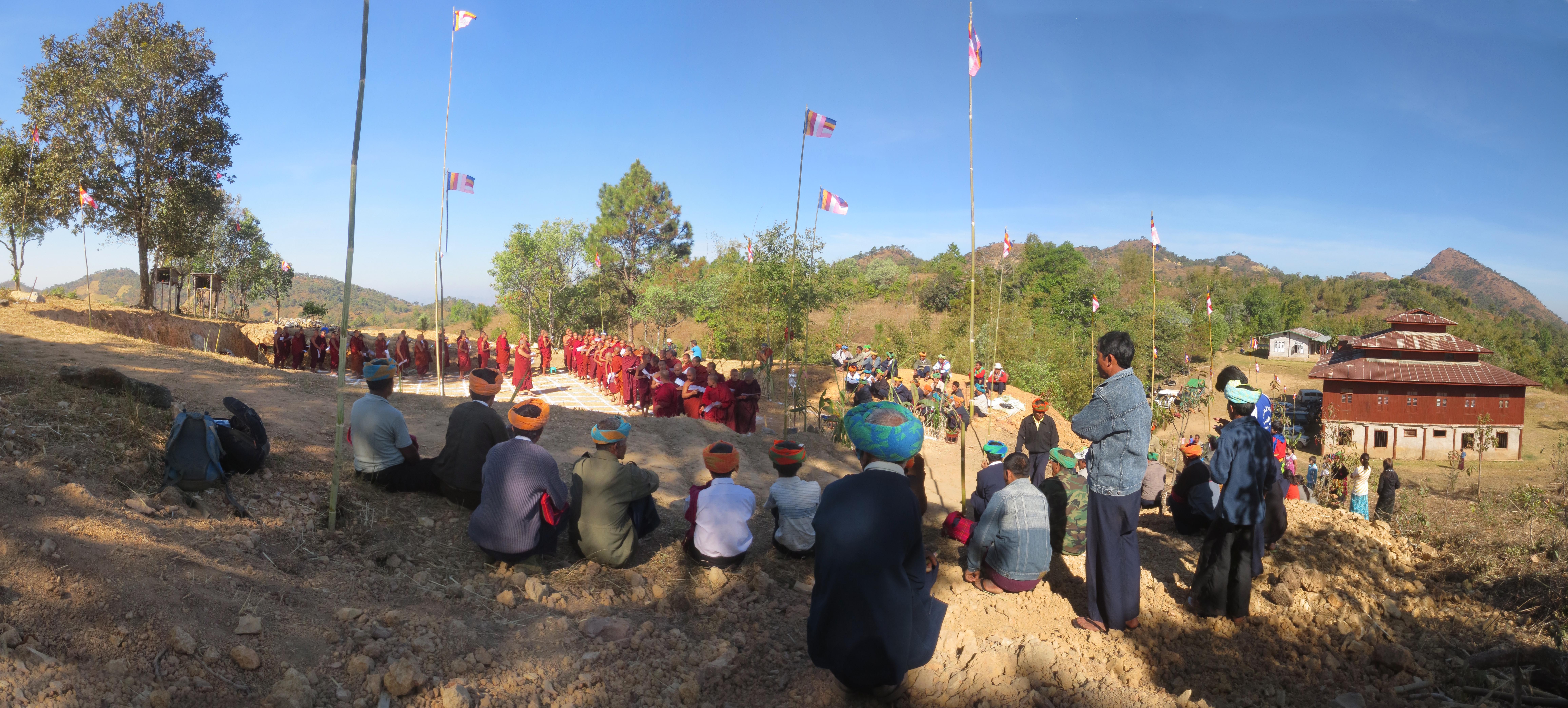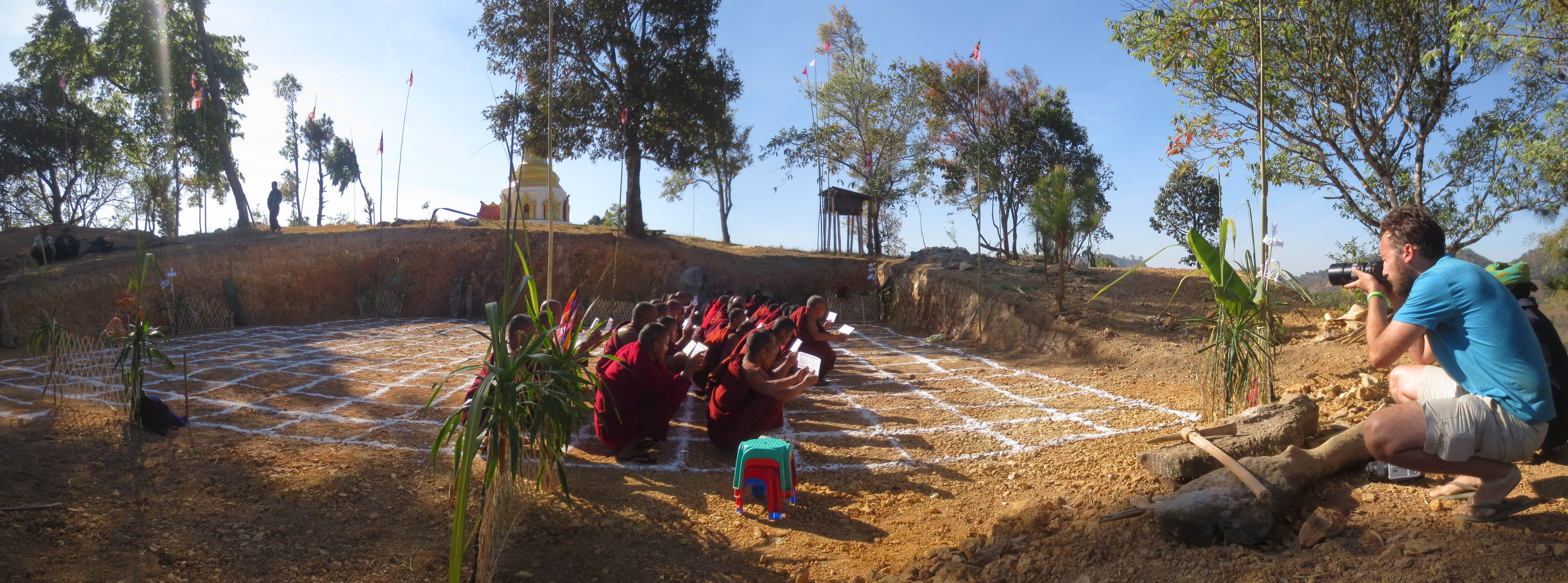 Pour résumer cela le plus simplement possible, il y avait une centaine de moines qui récitaient des mantras (prières) en position accroupi… à l’endroit exact où le futur bâtiment allait être construit… alors que tout autour d’eux s’entassaient la population qui les fixaient en silence.