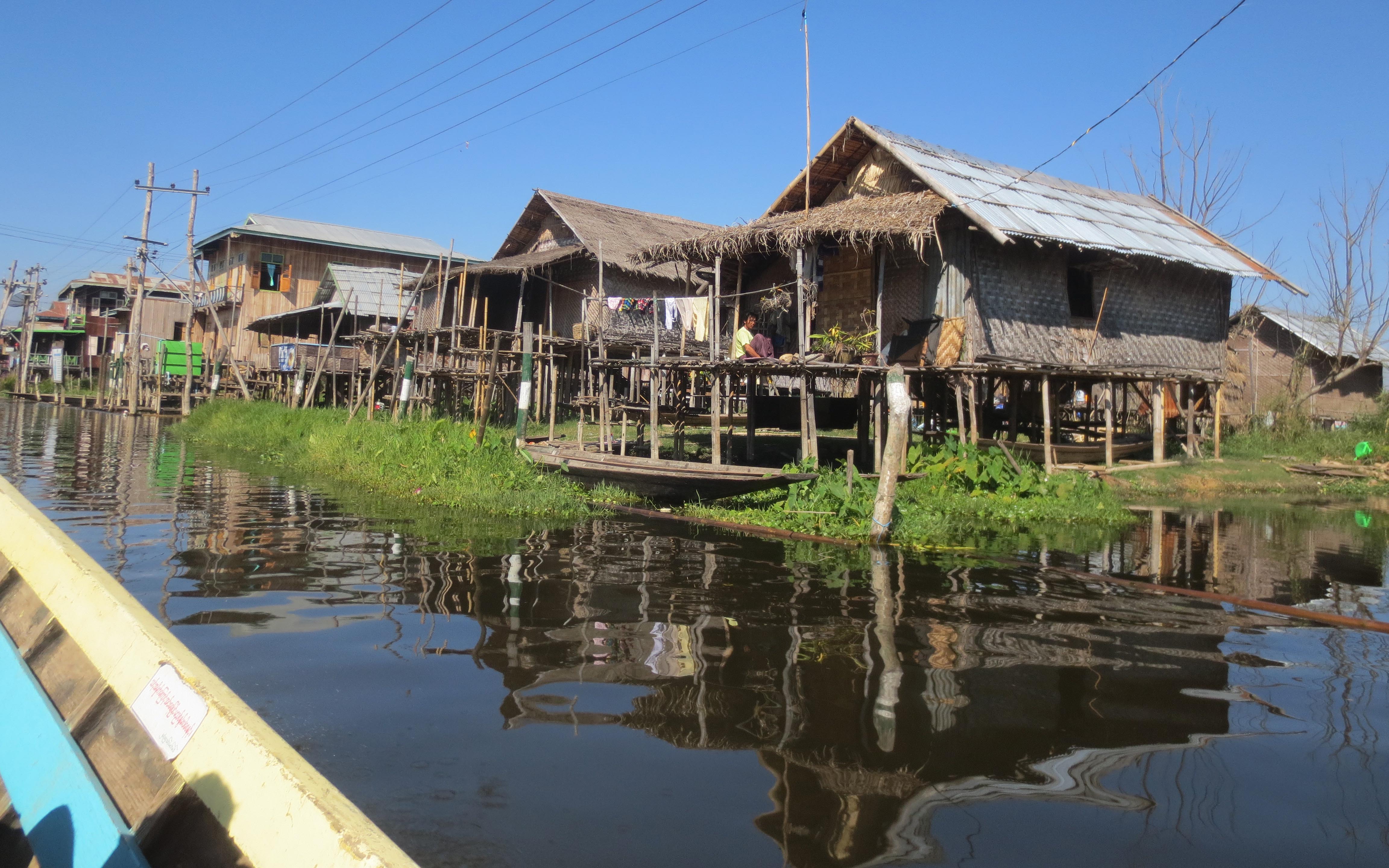 Les villages autour de Inle ressemblent à s’y méprendre à des banlieue une comme on les connait… à la différence majeure que tout est sur l’eau. C’est comme si on remplaçait tout ce qui est béton/pavé/pelouse/etc. par l’eau. On croirait se trouver dans un quartier qui a récemment été inondé… mais c’est en fait un village tout à fait normal.