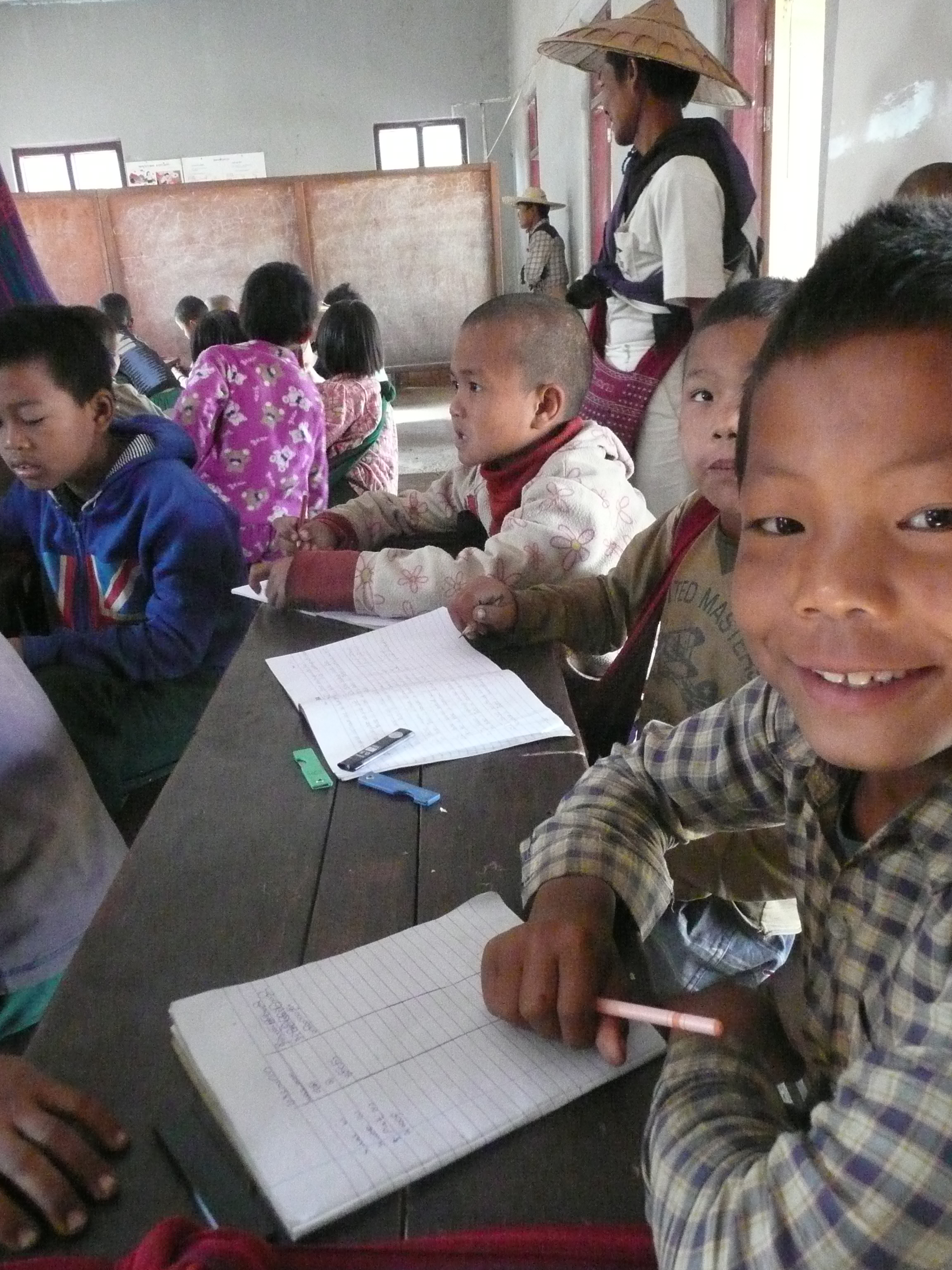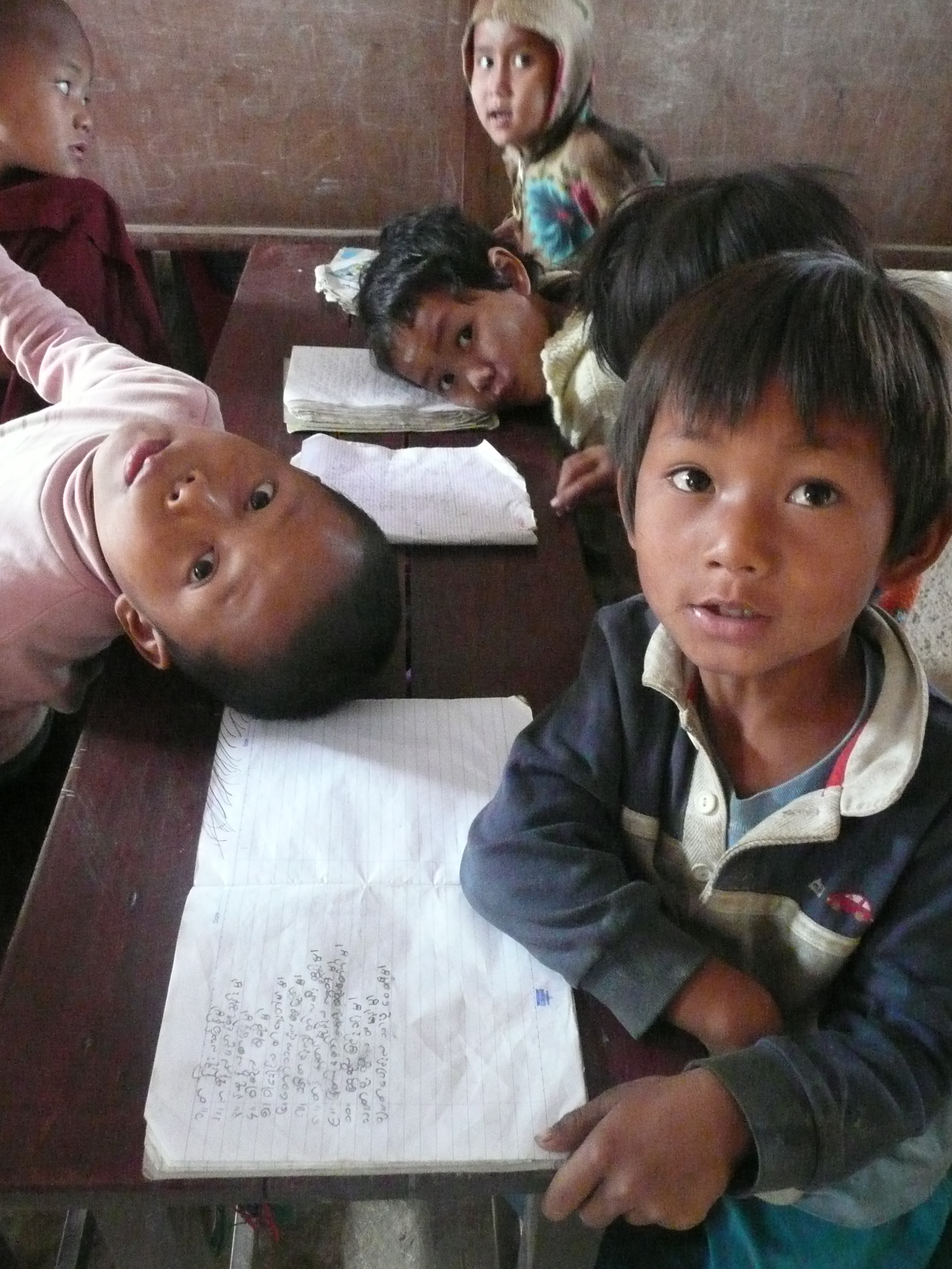 Premier arrêt, une petite école au milieu de nul part. Alors que mes compagnons s’empressaient d’entrer à l’intérieur, j’éprouvais un certain malaise. Les jeunes étaient en pleine leçons et mes compagnons se promenaient dans les classes en prenant des photos. Imaginez un instant quelqu’un que quelqu’un qui ne parle pas votre langue arrive dans votre classe de primaire au lac-st-jean avec sa caméra et faisait le tour, prenait des photos et repartait… sans même avoir demandé la permission. Peu importe, c’était un véritable capharnaüm même avant que nous arrivons, les enfants criaient à tue tête, la salle était hyper éco et se séparait en 3 classes seulement séparés par de petites cloisons mobiles. Pauvres professeurs…