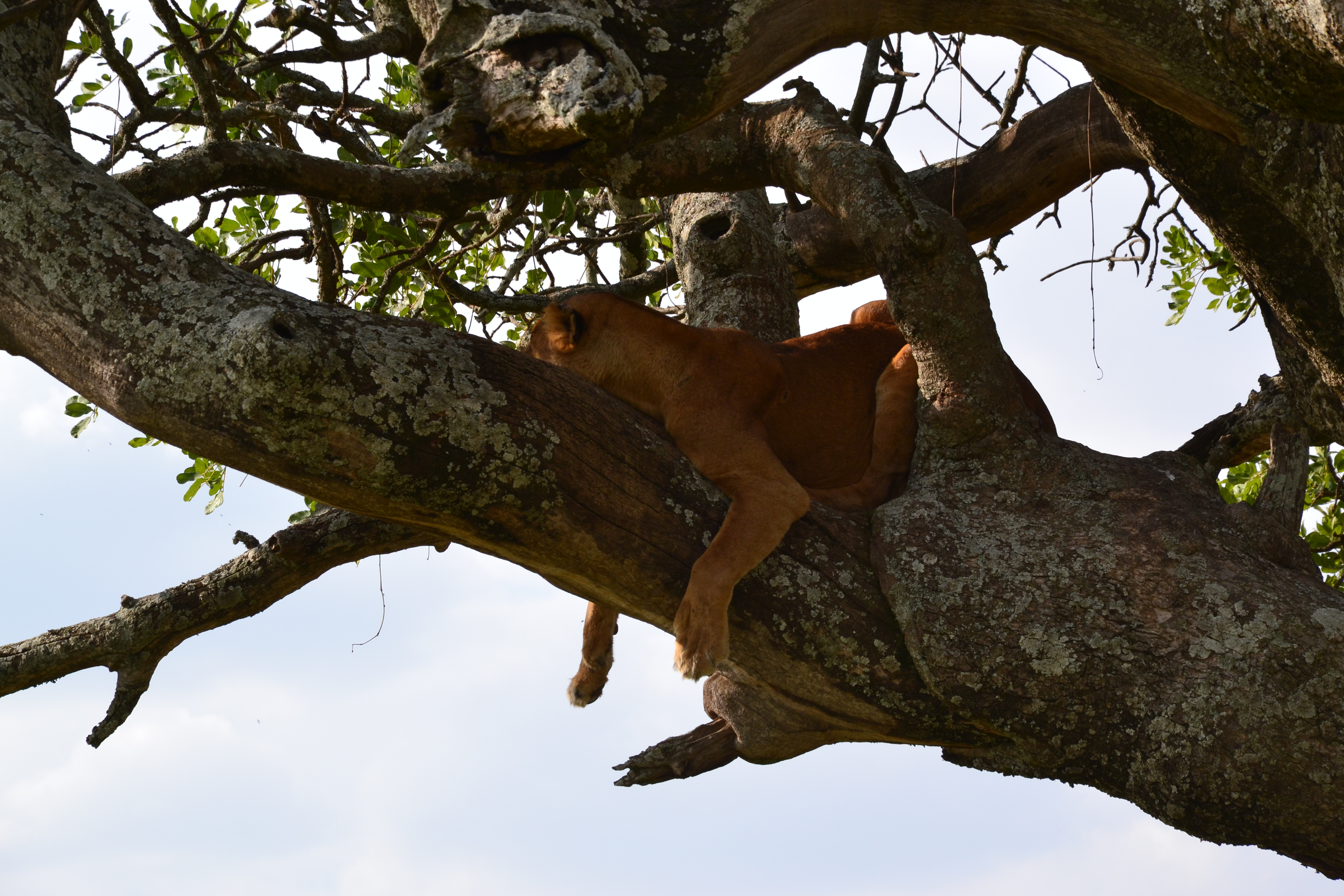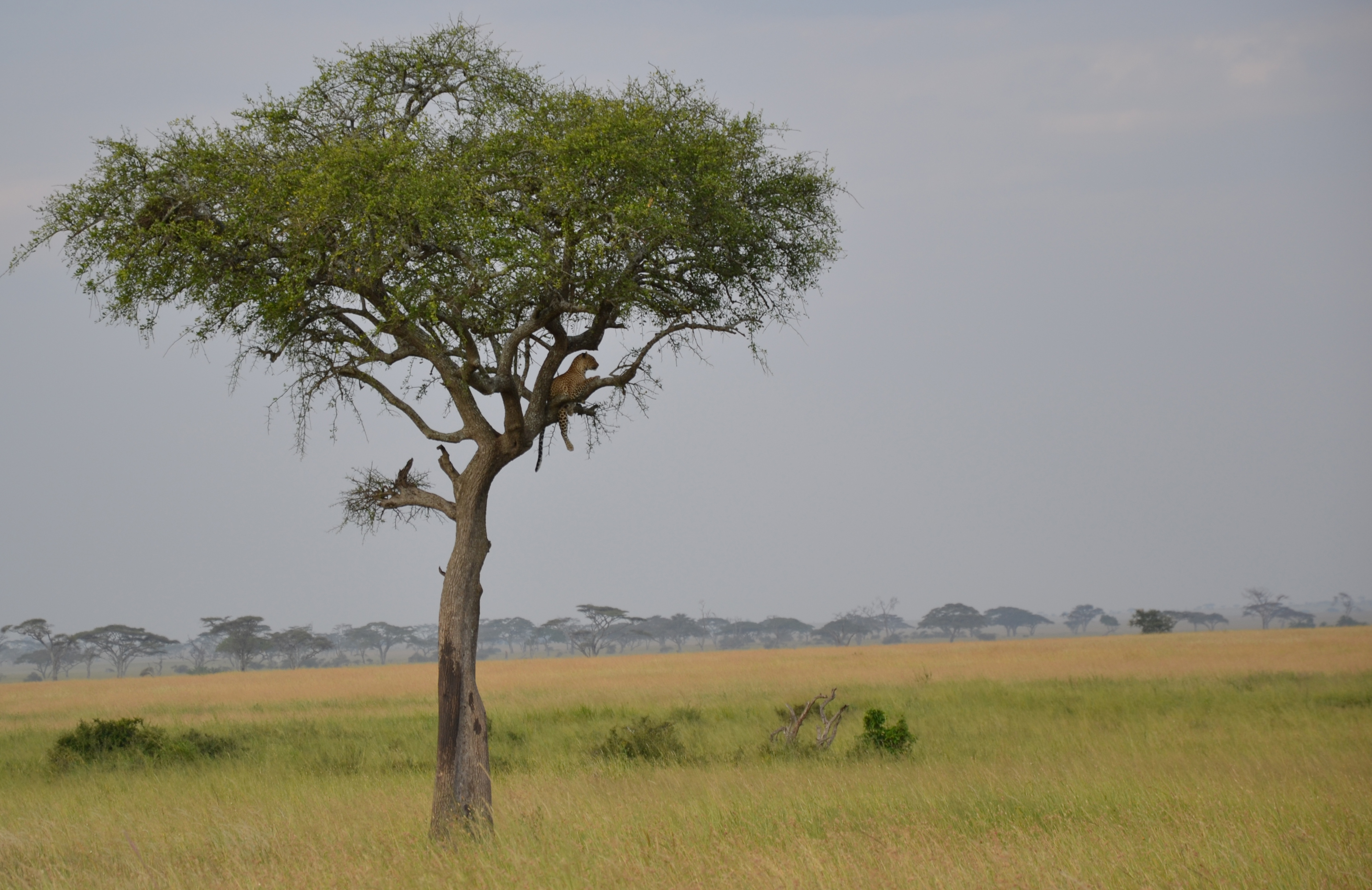 Un léopard faisant la siesta dans un arbre. Animal solitaire et très rare dans le parc, on en dénombre moins d’une vingtaine, c’était un véritable coup de chance de tomber dur lui.