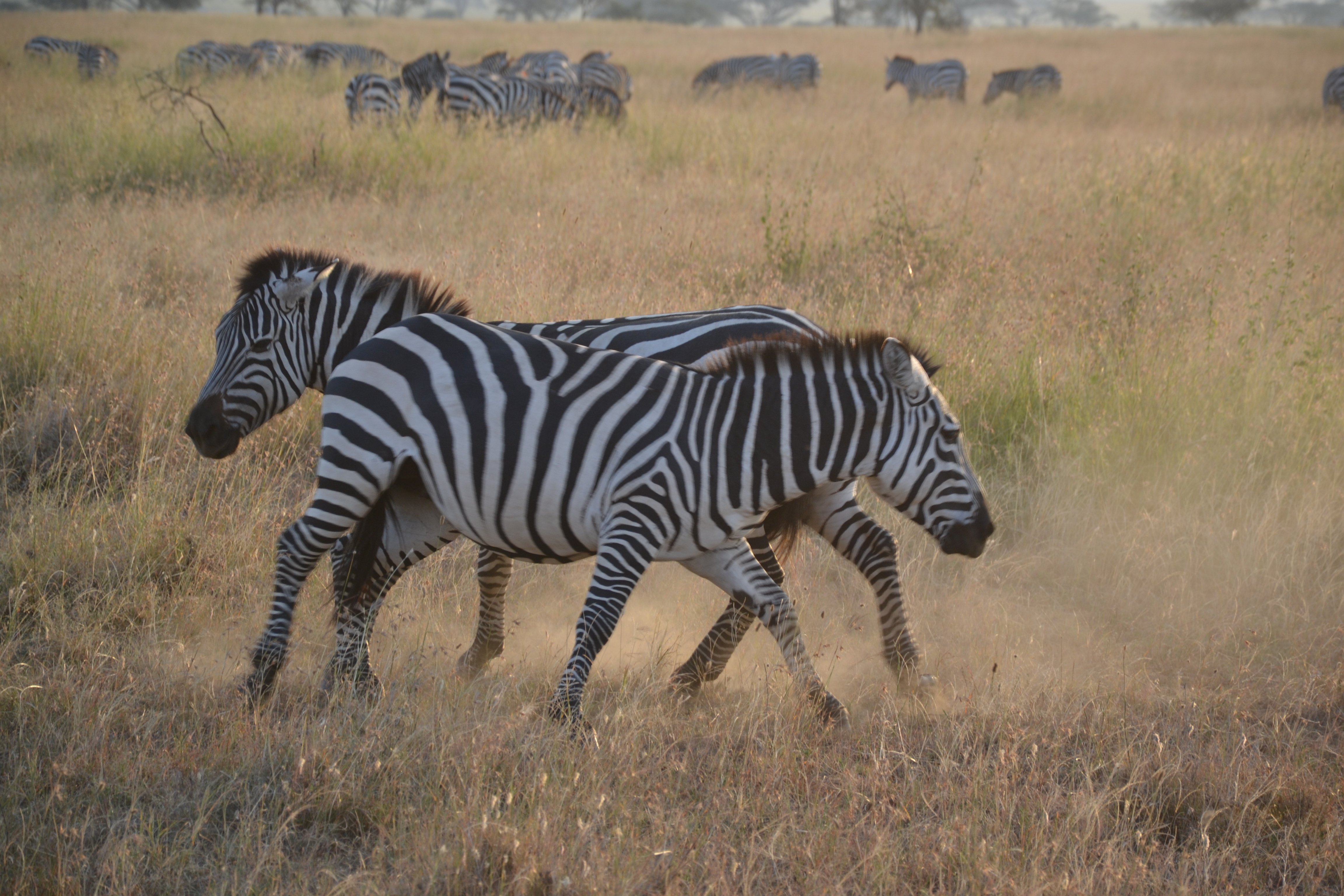 Vers la fin de la journée, nous sommes tombé sur pas 1, pas 10, pas 100, mais bien des milliers et des milliers de pyjamas noir et blanc. Des zèbres PARTOUT. Fait intéressant, les zèbres mâles sont de couleurs noir et blanc, tandis que les femelles sont brune et blanche.