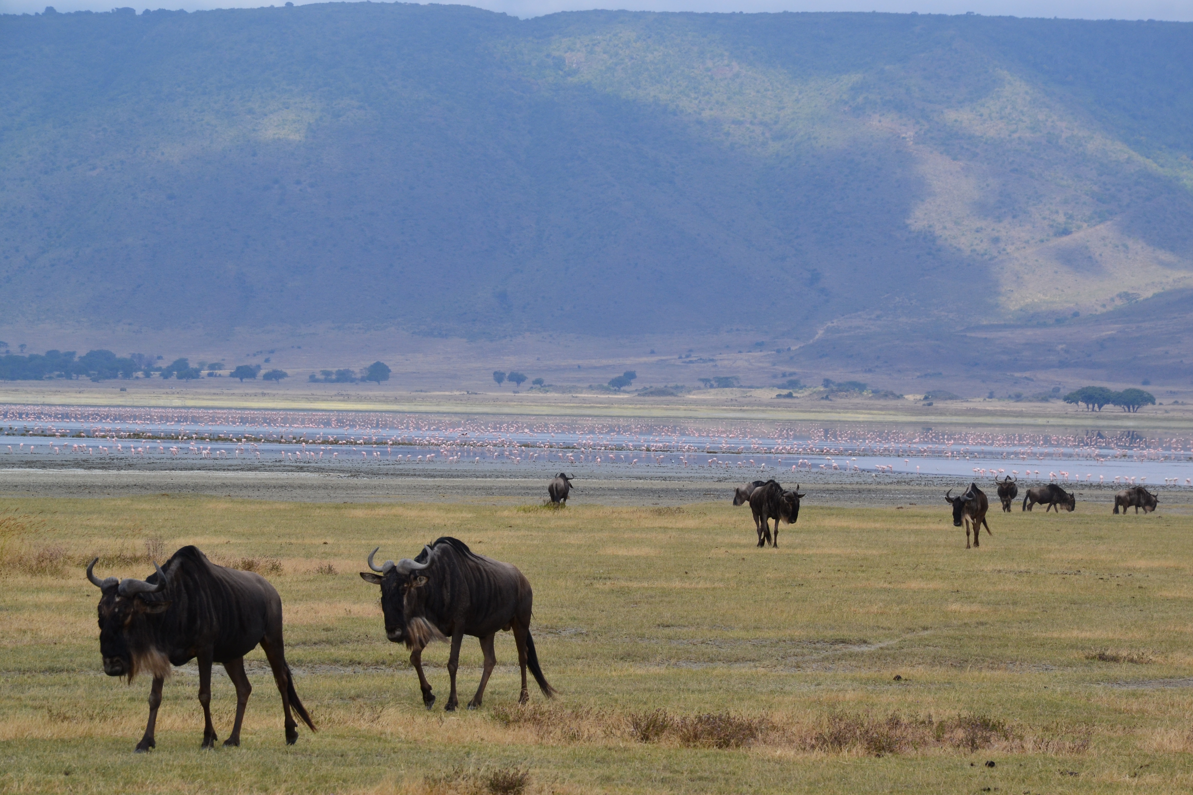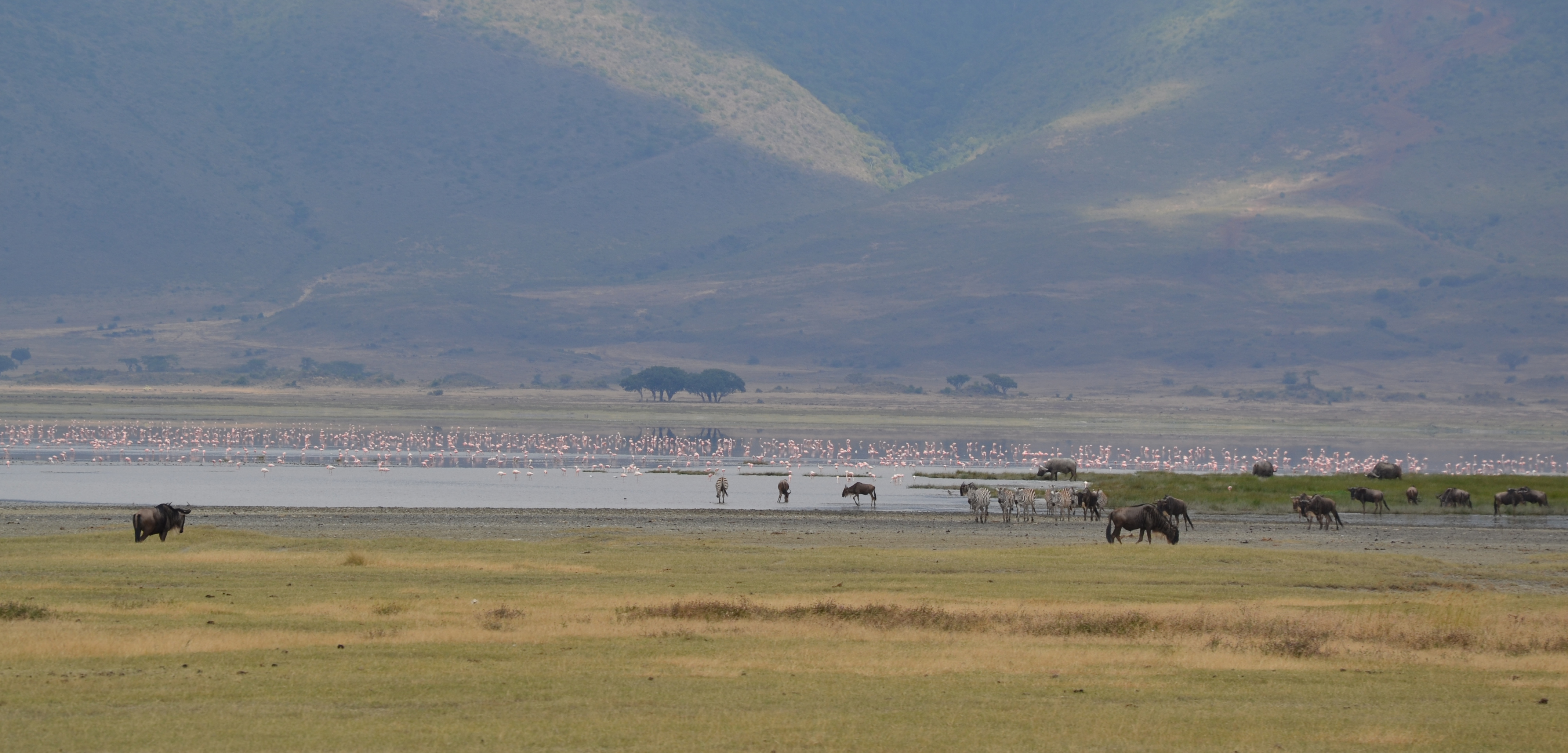 Il y a de cela très très longtemps (2millions d’années), ce qui est aujourd’hui le Ngorogoro Crater était en fait un immense volcan de 6000+m de haut. Il s’est effondré lors de sa dernière éruption pour ne laisser qu’un gigantesque trou de 19km de diamètre… trou aujourd’hui classé comme un Aire de Conservation et repère d’une multitude d’animaux…