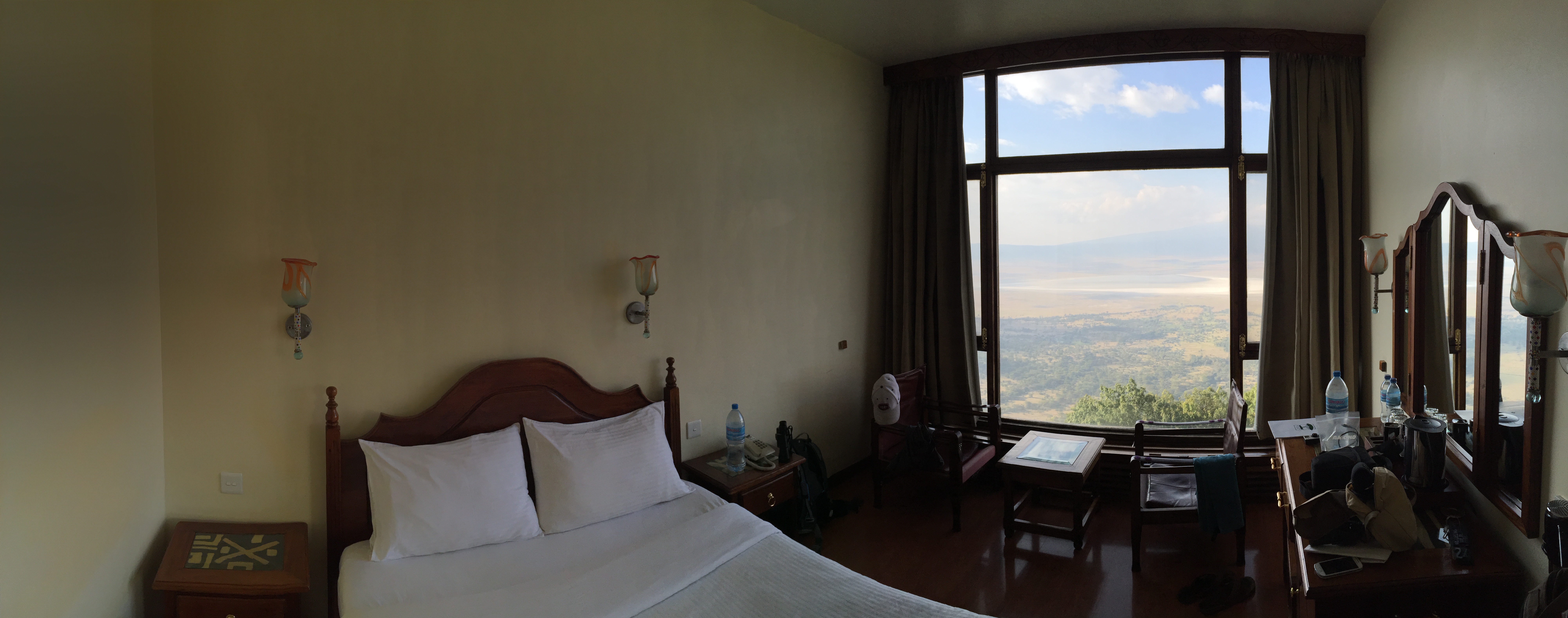 Que dire de ma chambre… situé juste en dessous de la terrasse, le mur extérieur était une fenêtre avec une vue tout aussi imprenable sur le cratère. C’est ce qu’on appelle « a room with a view ».
