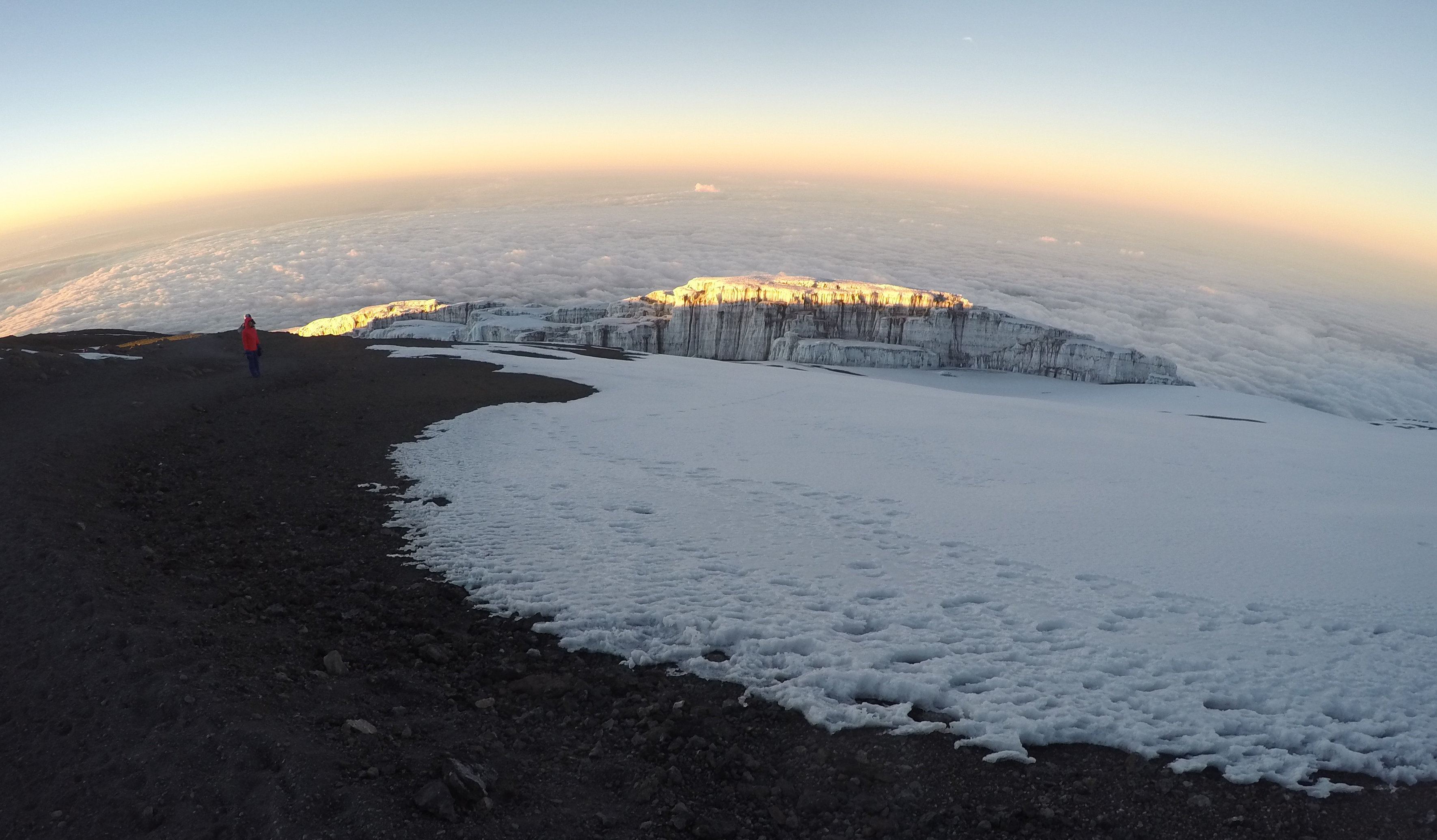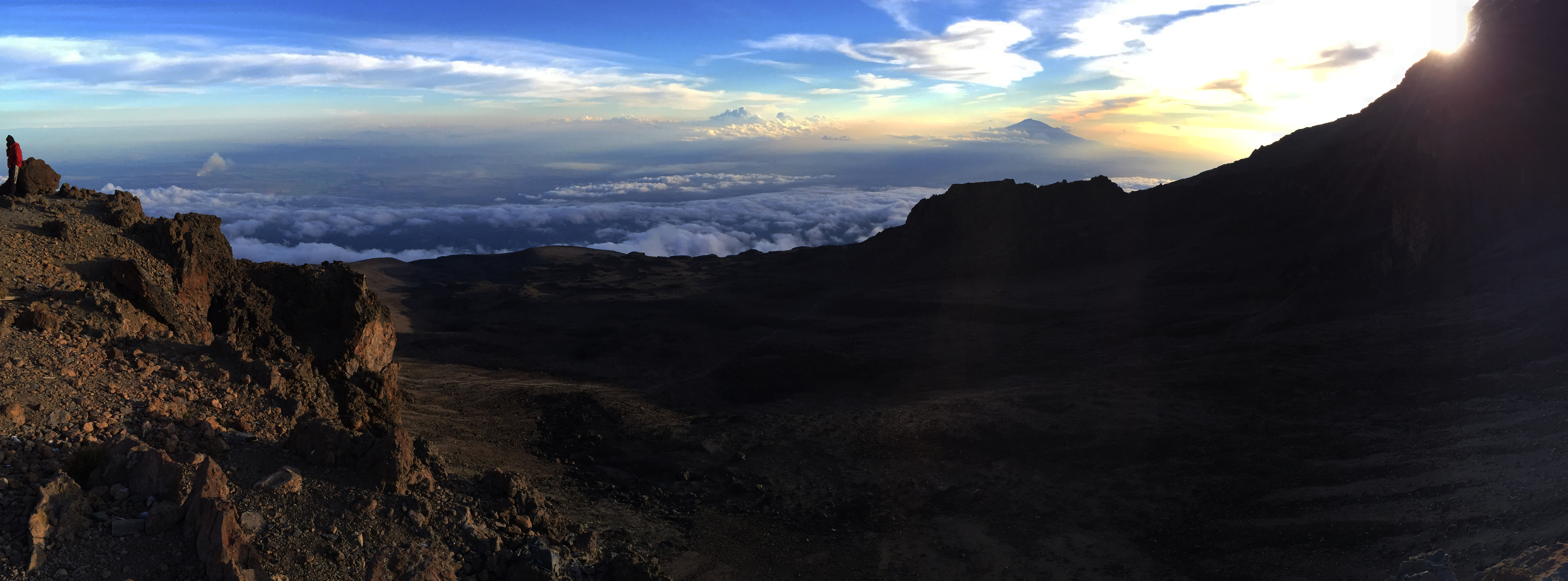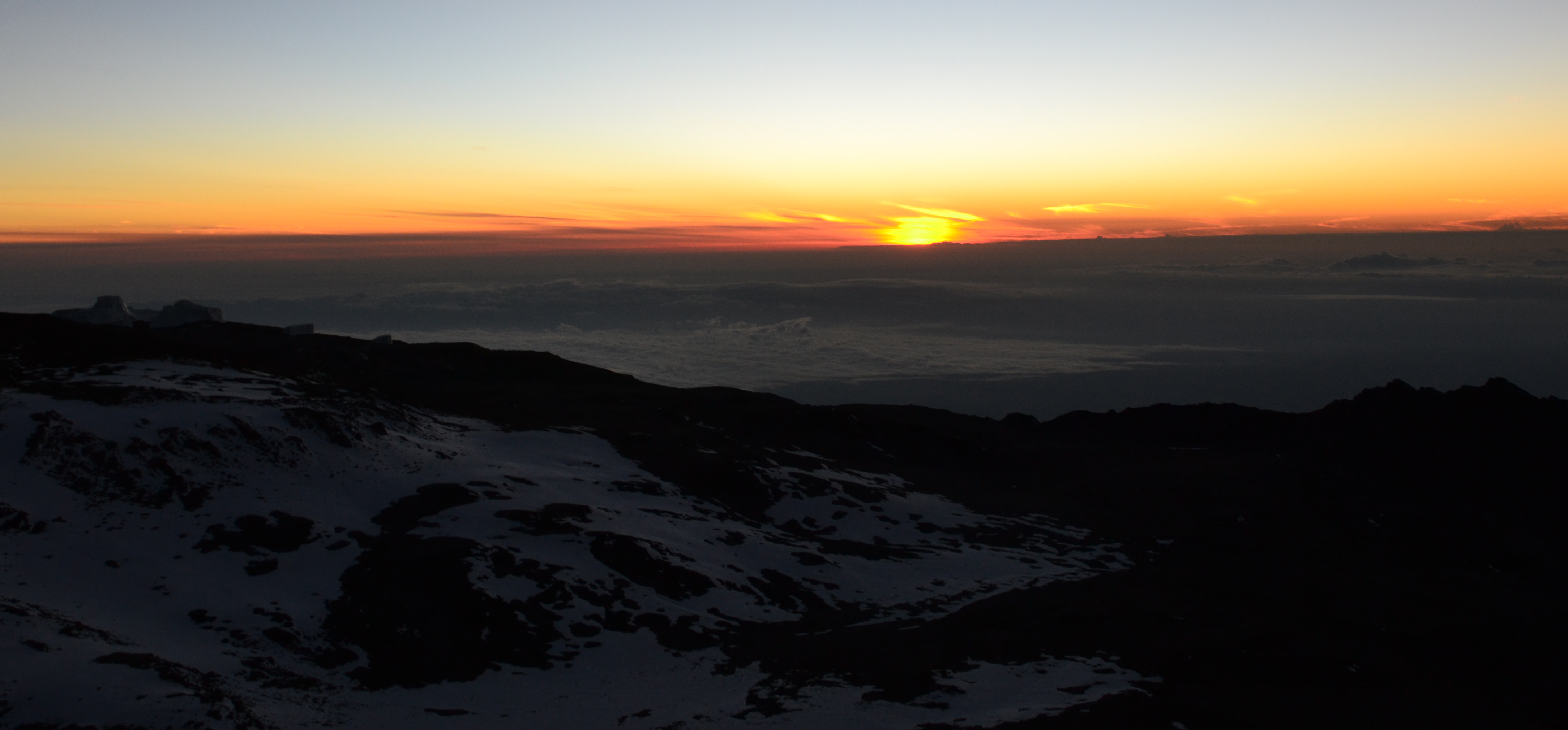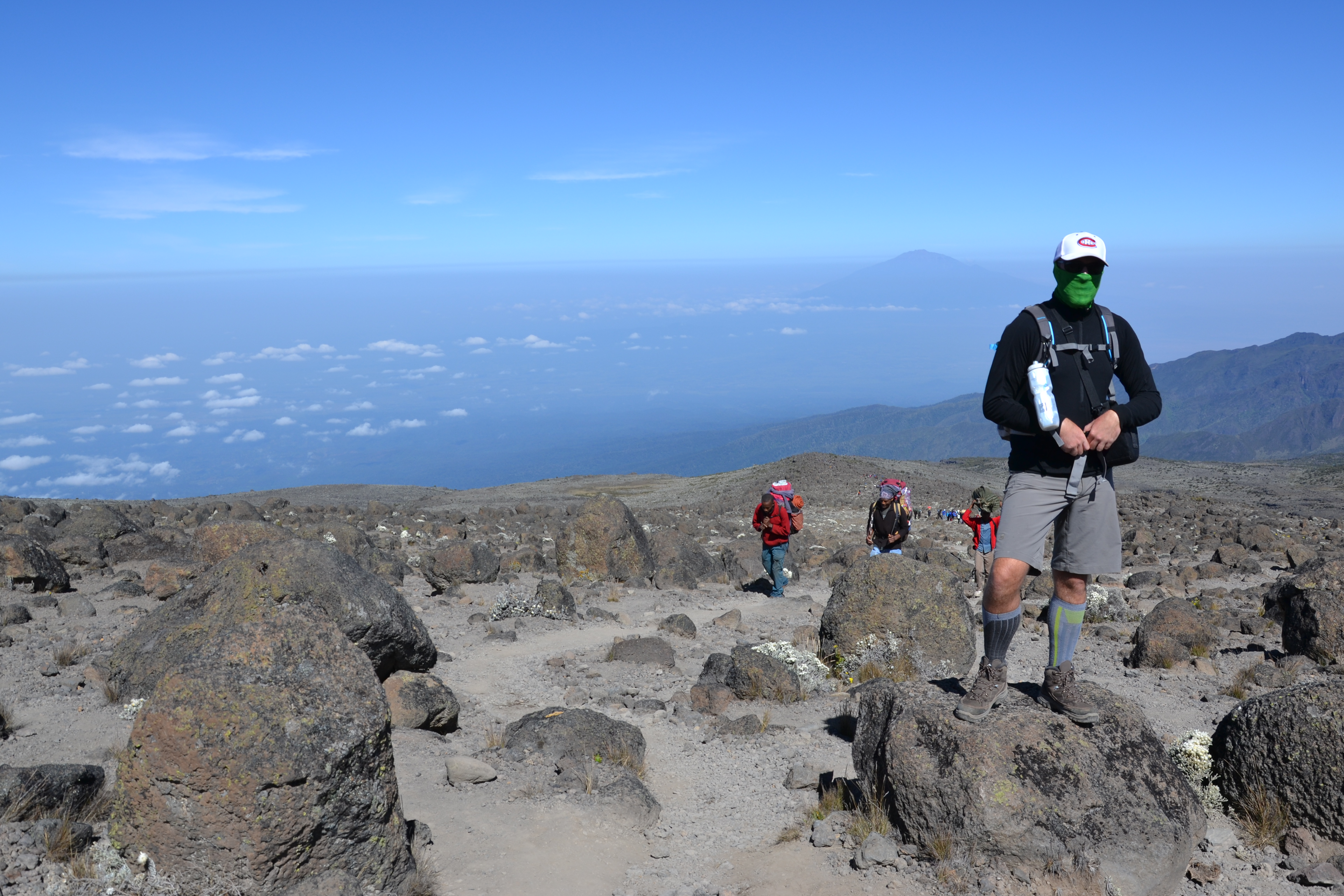 À ce moment là, il n’y avait plus rien de plus haut que nous en Afrique sauf le sommet au-dessus de nous et le Mont Kenya (5199m – Kenya). Le mont Meru (4565m – voisin du Kili), qui complète le podium des plus hautes montagnes en Afrique, se situait déjà en dessous de nos pieds.