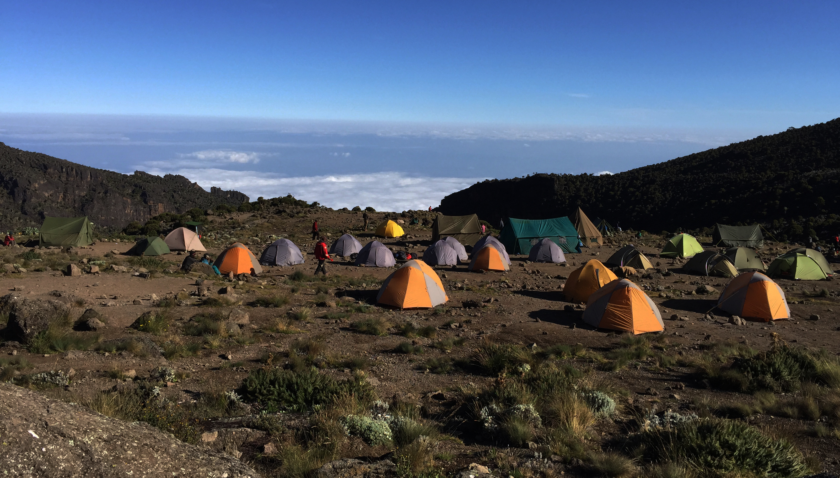 4h d’ascension plus tard et le Shira Camp (3700m) était devant nos yeux, tout comme le Shira Peak, l’un des 3 sommets du Kilimanjaro.