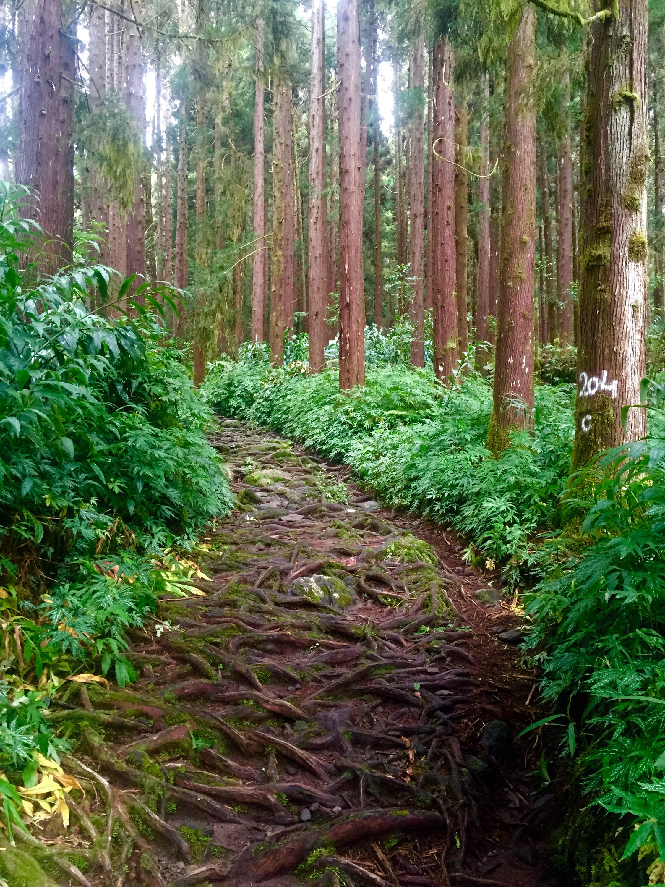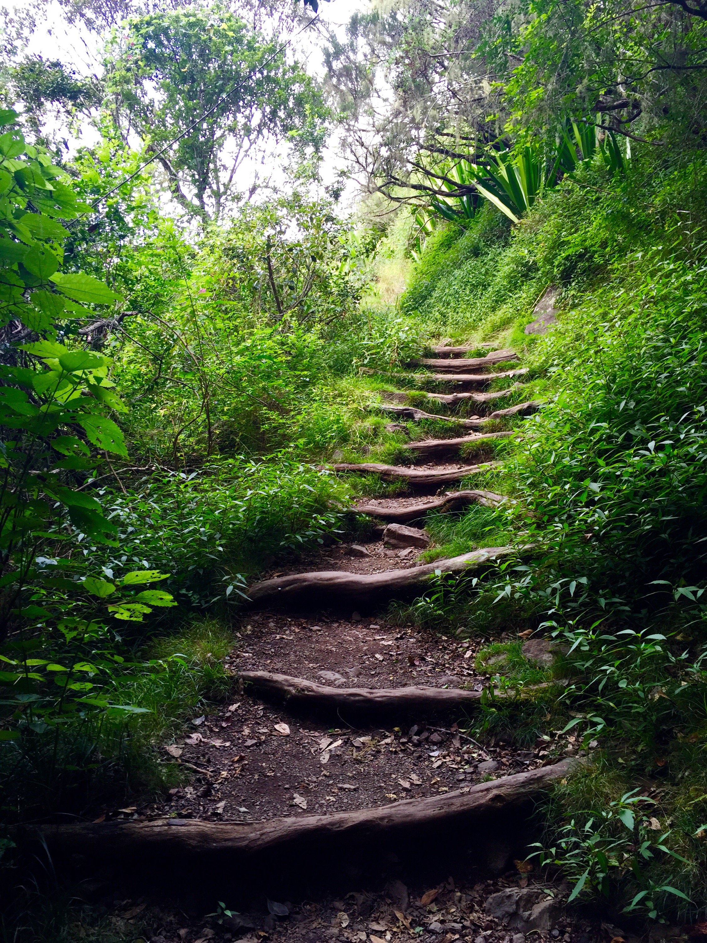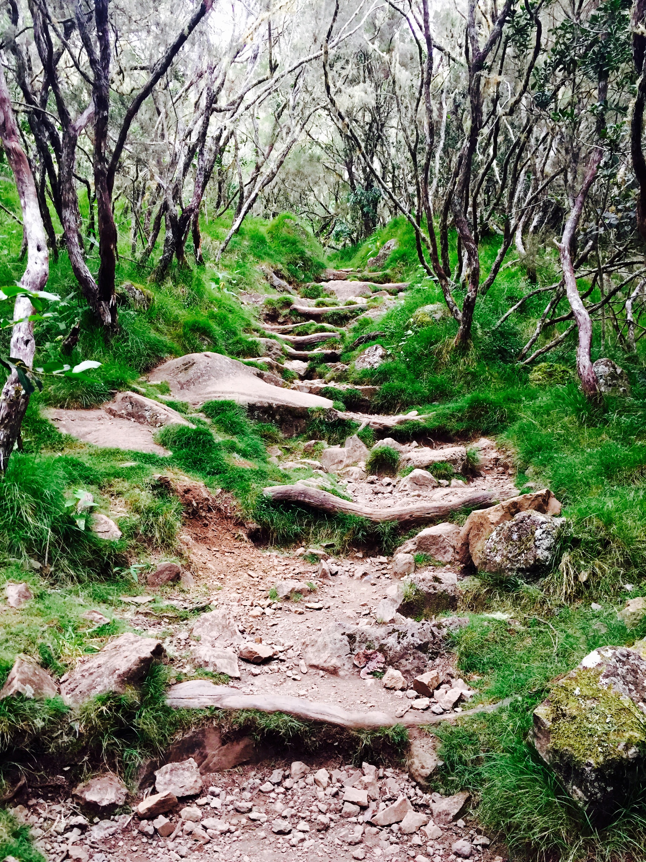 C’était sans compter que le trajet était une ascension de +1600m sans relâche dès le départ… question de faire remonter mon déjeuner… sur un sentier de roches et de grosses racines glissantes… dans des escaliers au mieux casse-gueulle… avec des marches faites pour des géants.