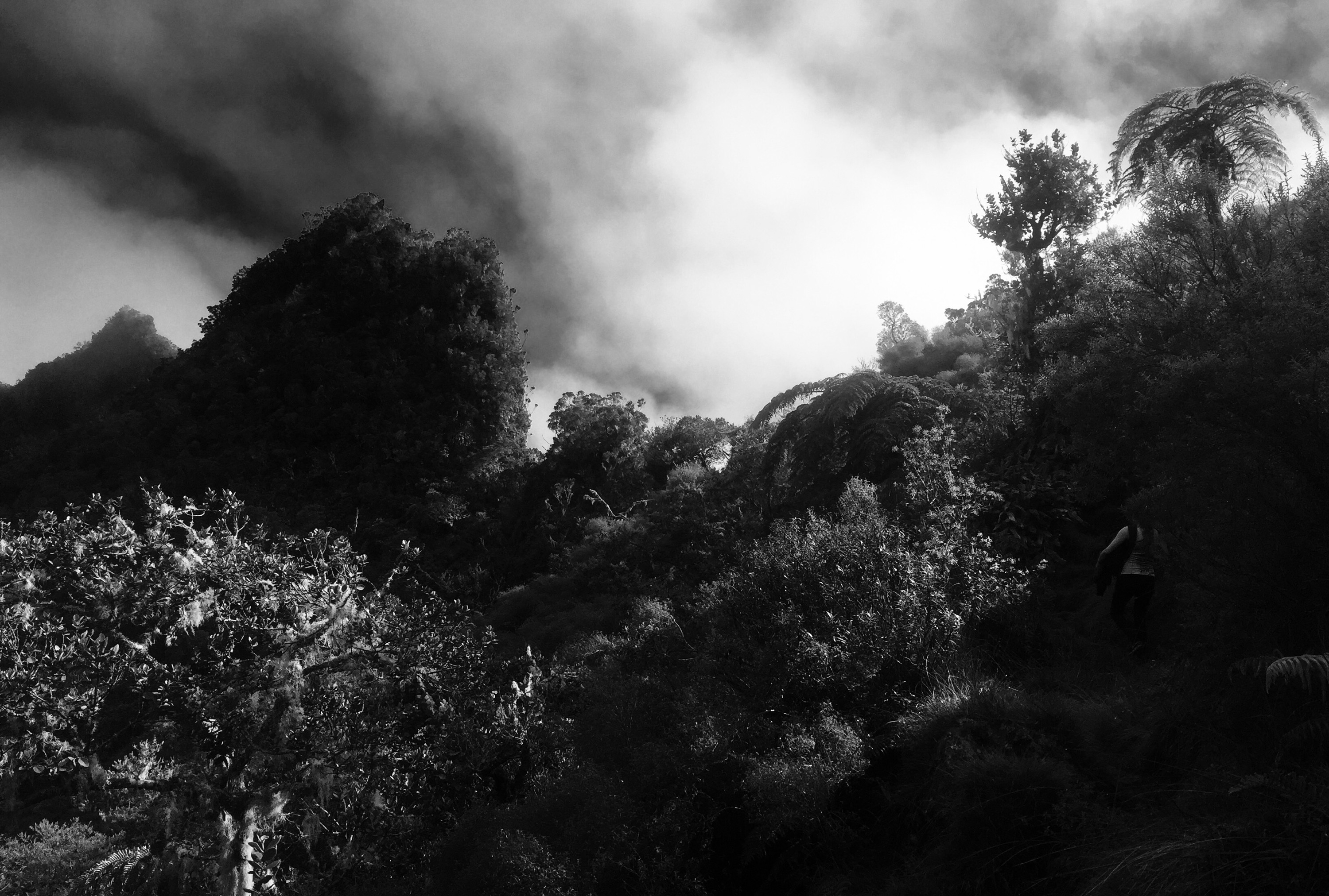 Avec 4km à faire, une immense et peu invitante paroi végétale se dressait devant moi au travers de la brume. Mon GPS affichait 1850m d’altitude… et ma destination du jour se trouvait à 2480m… je devrais vaincre ce mur… ce qui fut chose faite au prix de beaucoup d’huile de genoux.