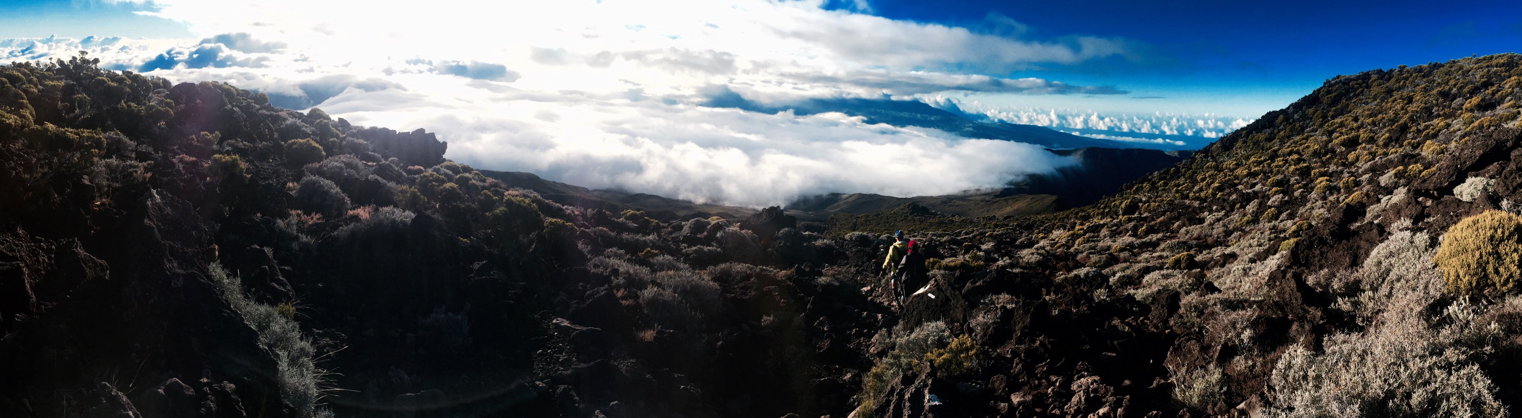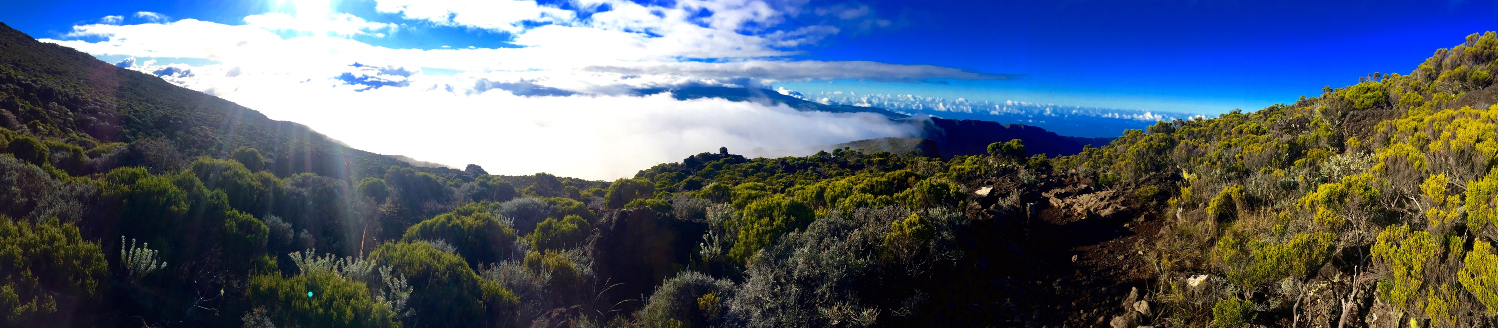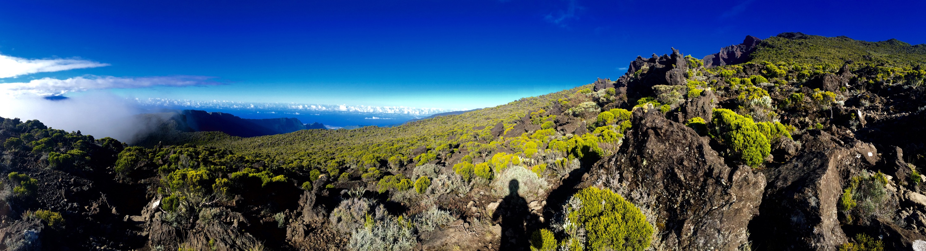 À 15.00 tapant, soit après 5h de marche, et après avoir réalisé que mon cardio était déficient, j’atteignais finalement le sommet du Col. Je quittais le Cirque de Cilaos pour basculer dans le Cirque de Mafate.