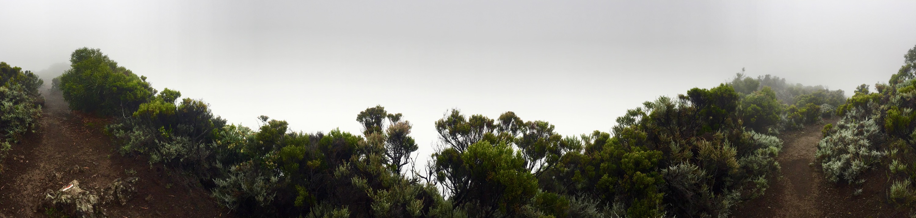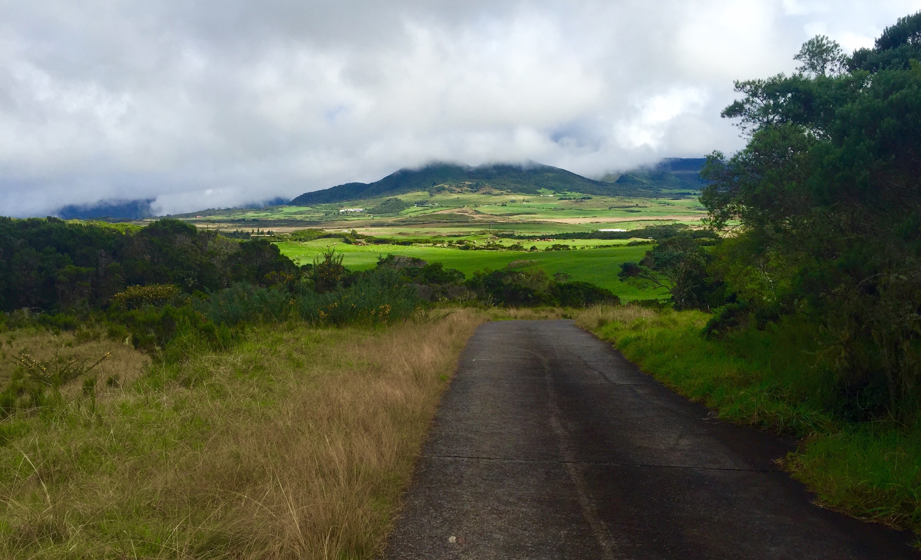 Nouveau jour, même rengaine; un pas devant l’autre. Direction le Gite du Volcan… par un matin brumeux, mais pas pluvieux…